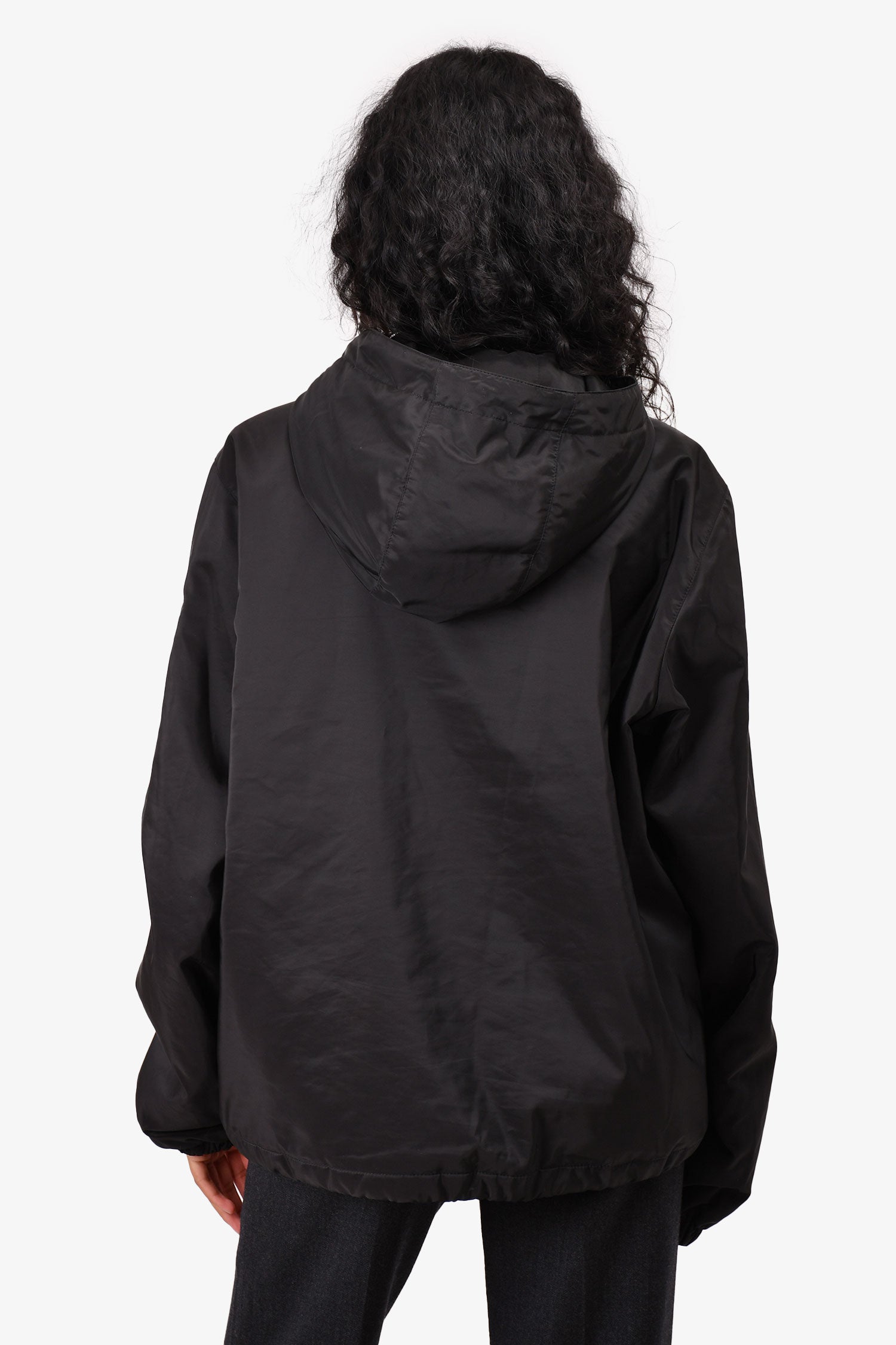 Prada 2022 Black Triangle Logo Hooded Zip Up Jacket Size M