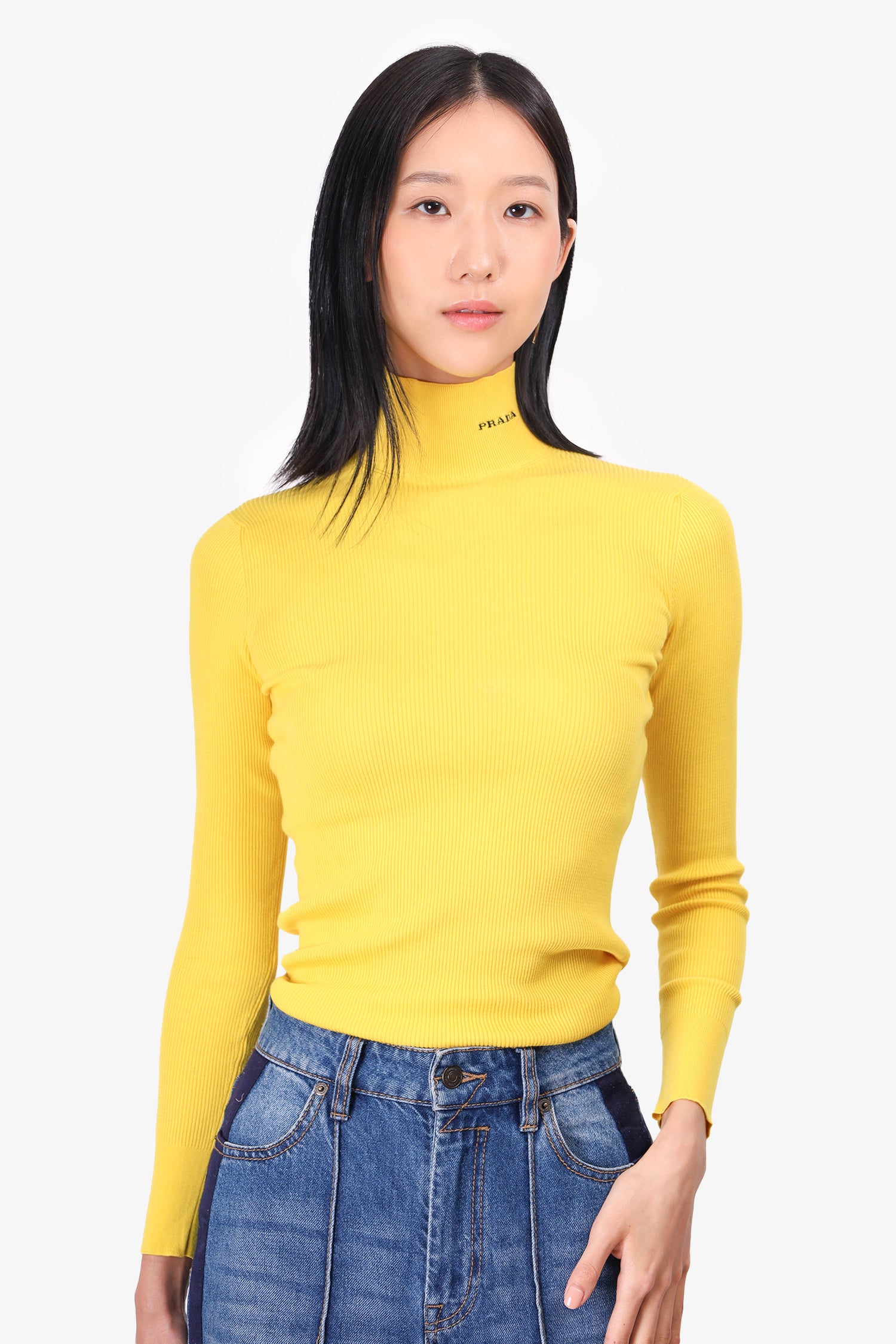 Refresh availabilityPrada 2022 Yellow Cotton Ribbed Turtleneck. Pull-on. Long-sleeves. Tonal stitching.