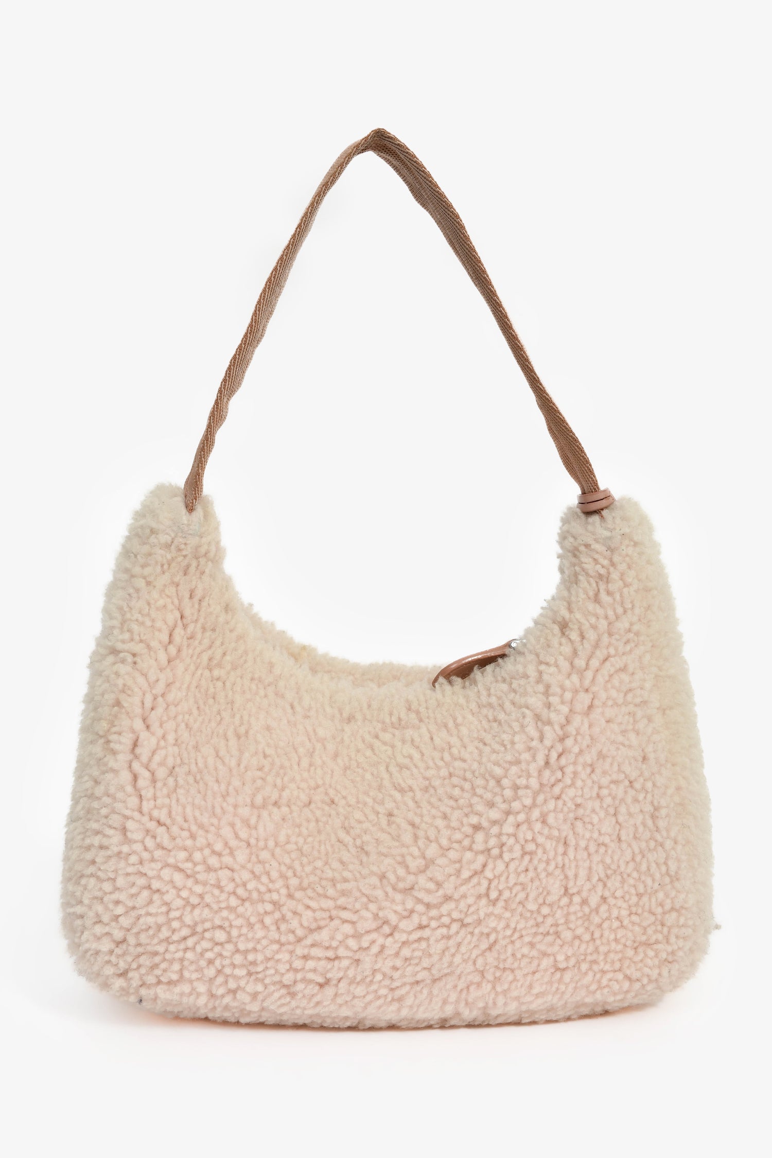 Refresh availabilityPrada Beige Re-Nylon Re-Edition 2005 Crossbody Bag with Chain & Pouch. Zip top. Chain-link handle strap, and a webbed crossbody strap with an attached pouch. Lined interior. Silver-tone hardware. Tonal stitching.