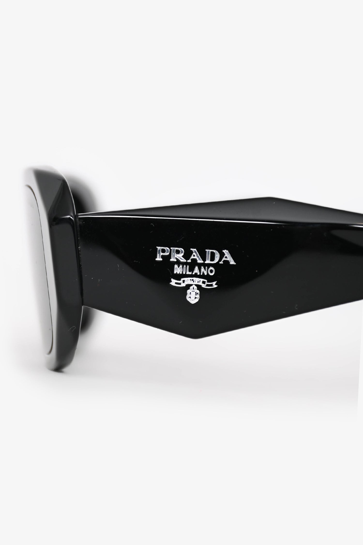 Refresh availabilityPrada Black Acetate Triangle Sunglasses. Built-in nose pads.