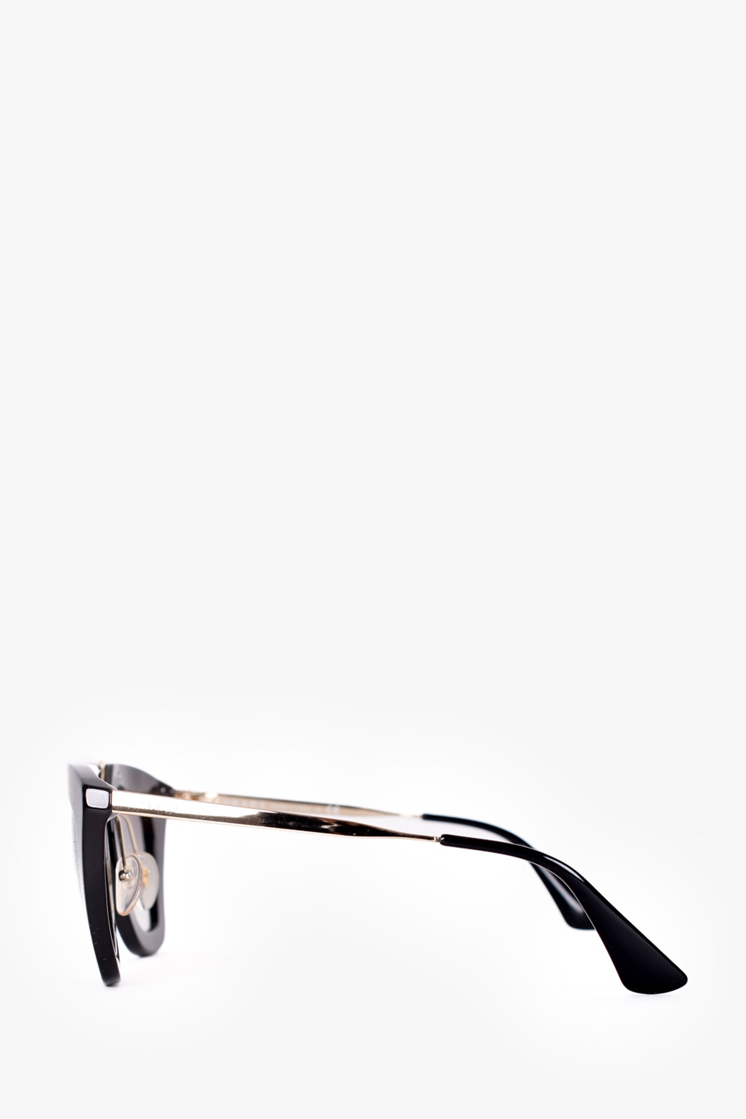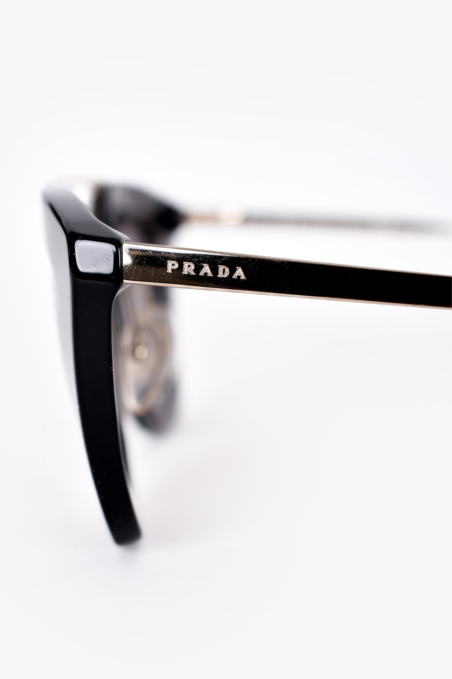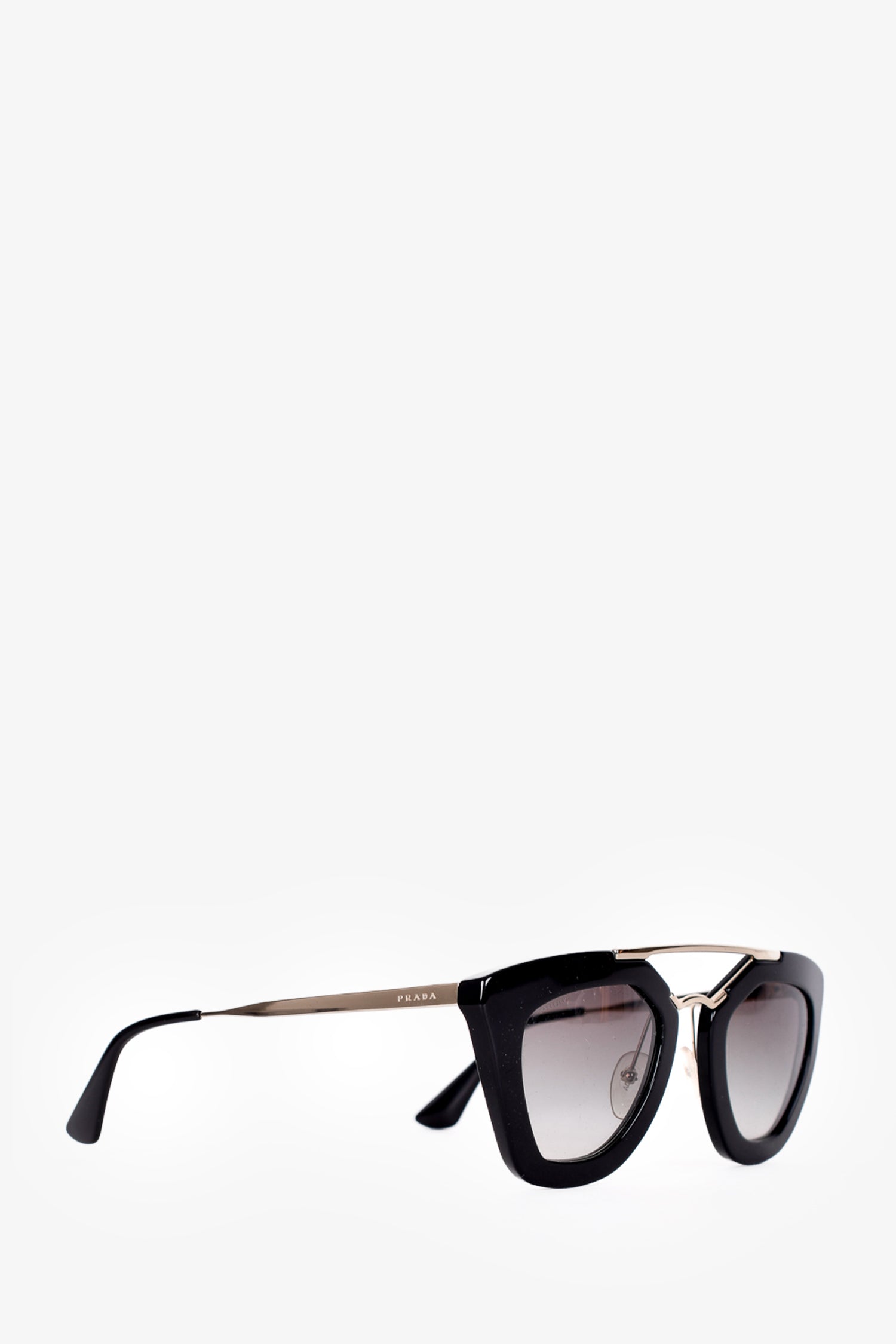 Refresh availabilityPrada Black Acrylic Cat Eye Sunglasses. Gold-toned hardware. Built in nose pads.