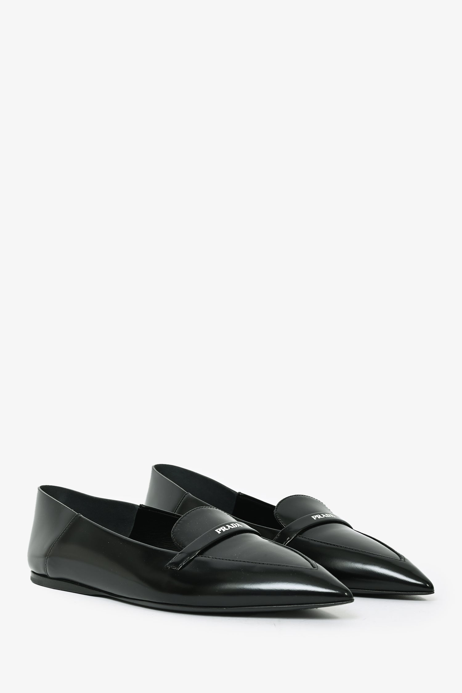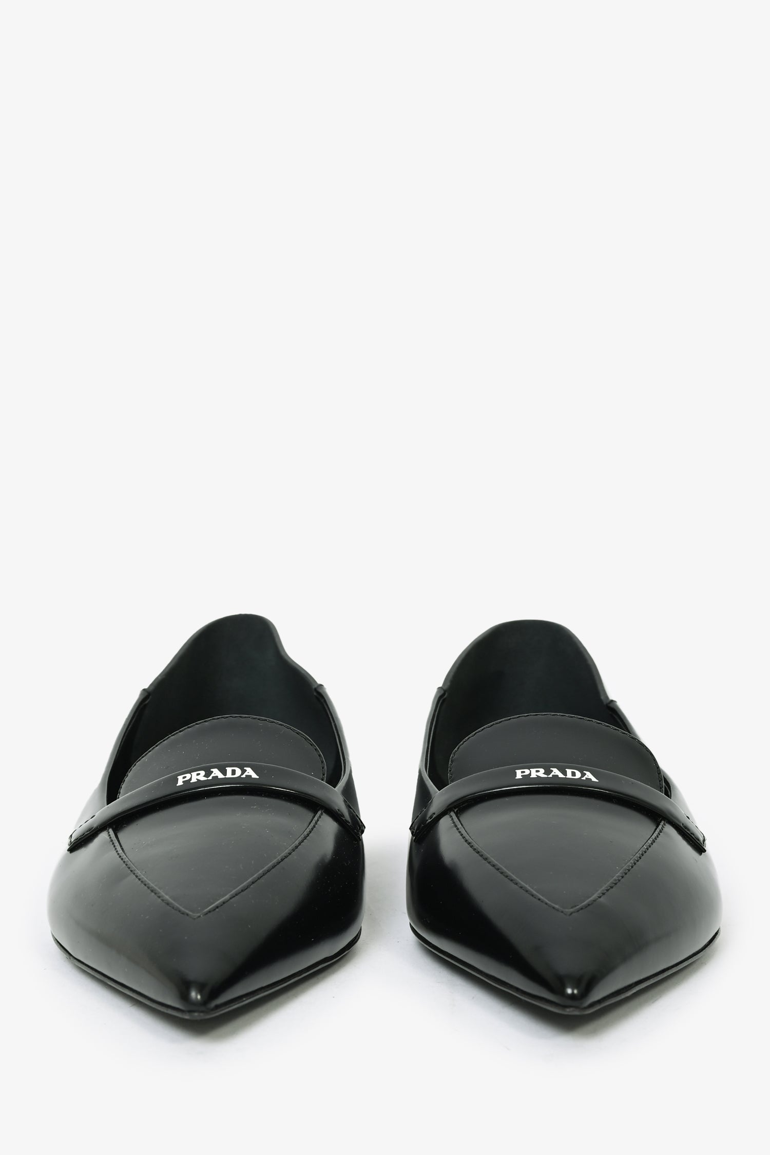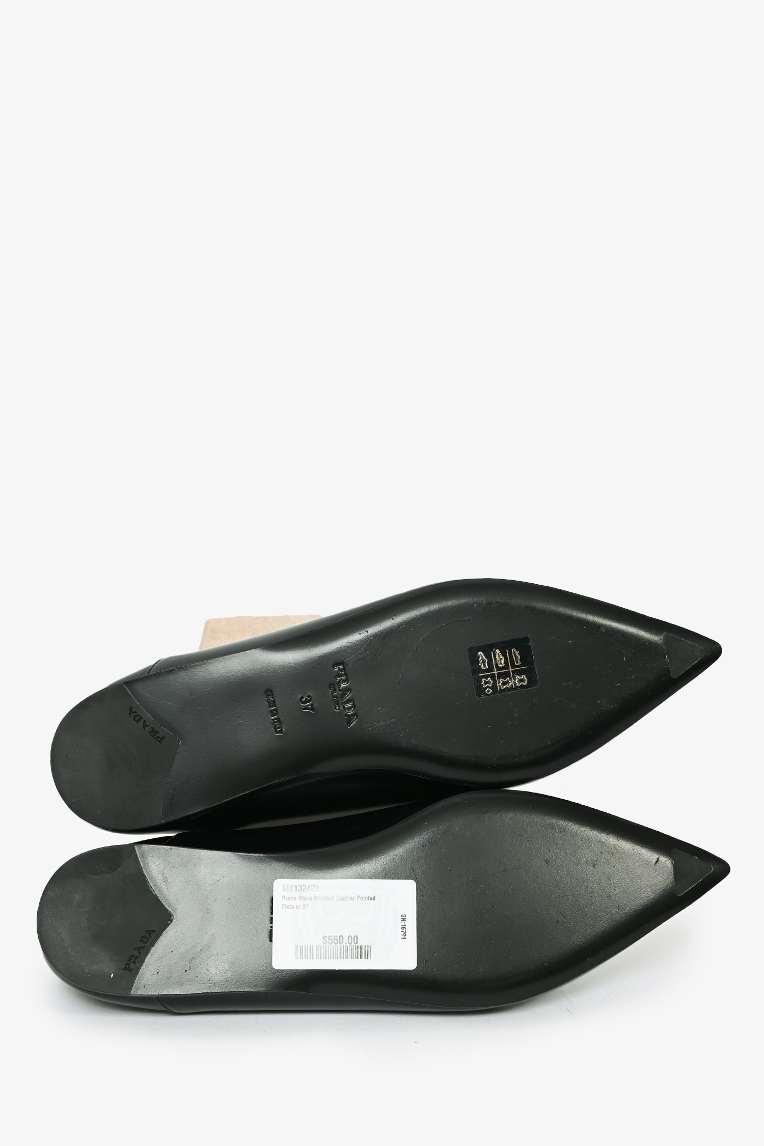 Refresh availabilityPrada Black Brushed Leather Pointed Flats. Slip-on. Tonal stitching.