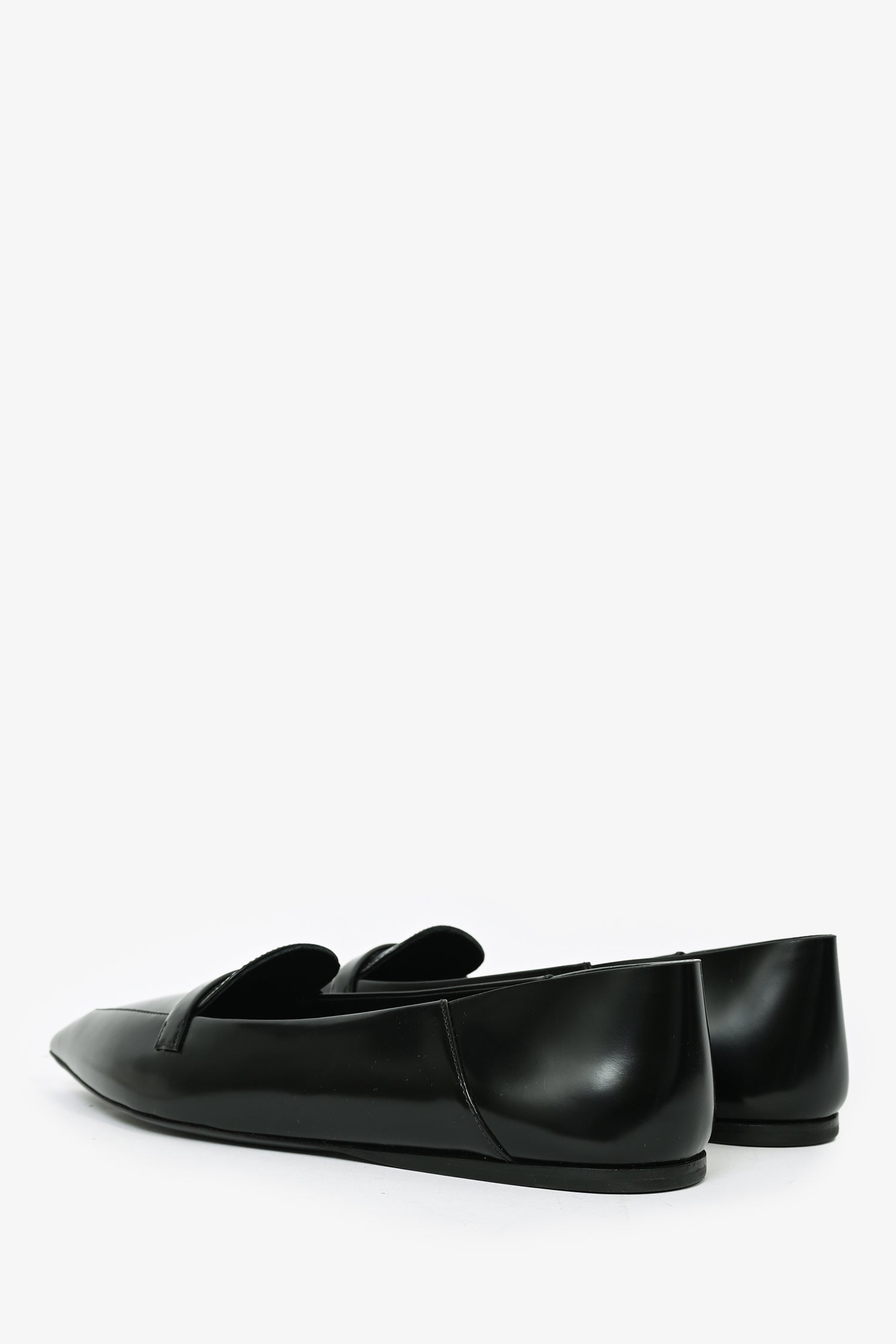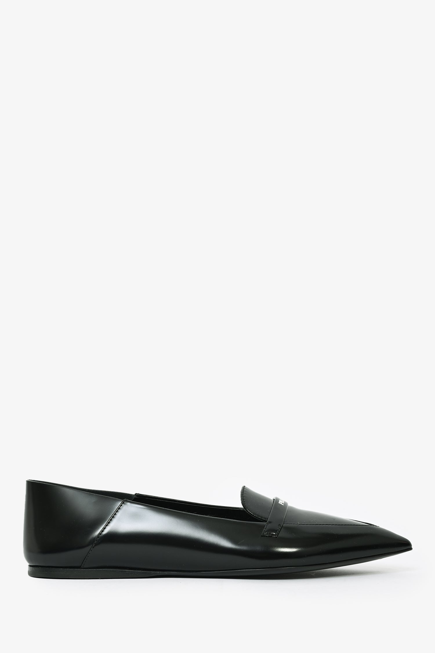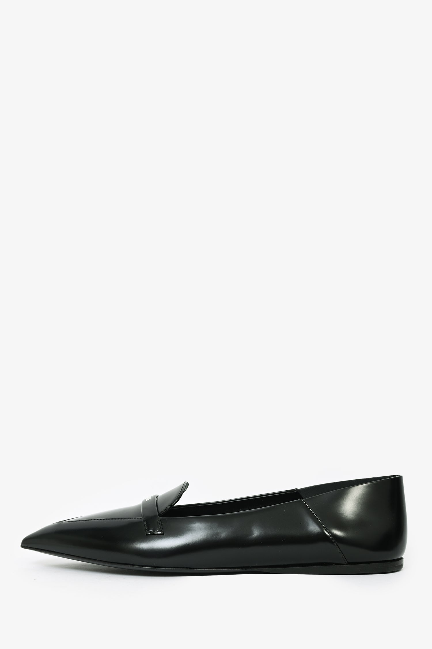 Refresh availabilityPrada Black Brushed Leather Pointed Flats. Slip-on. Tonal stitching.