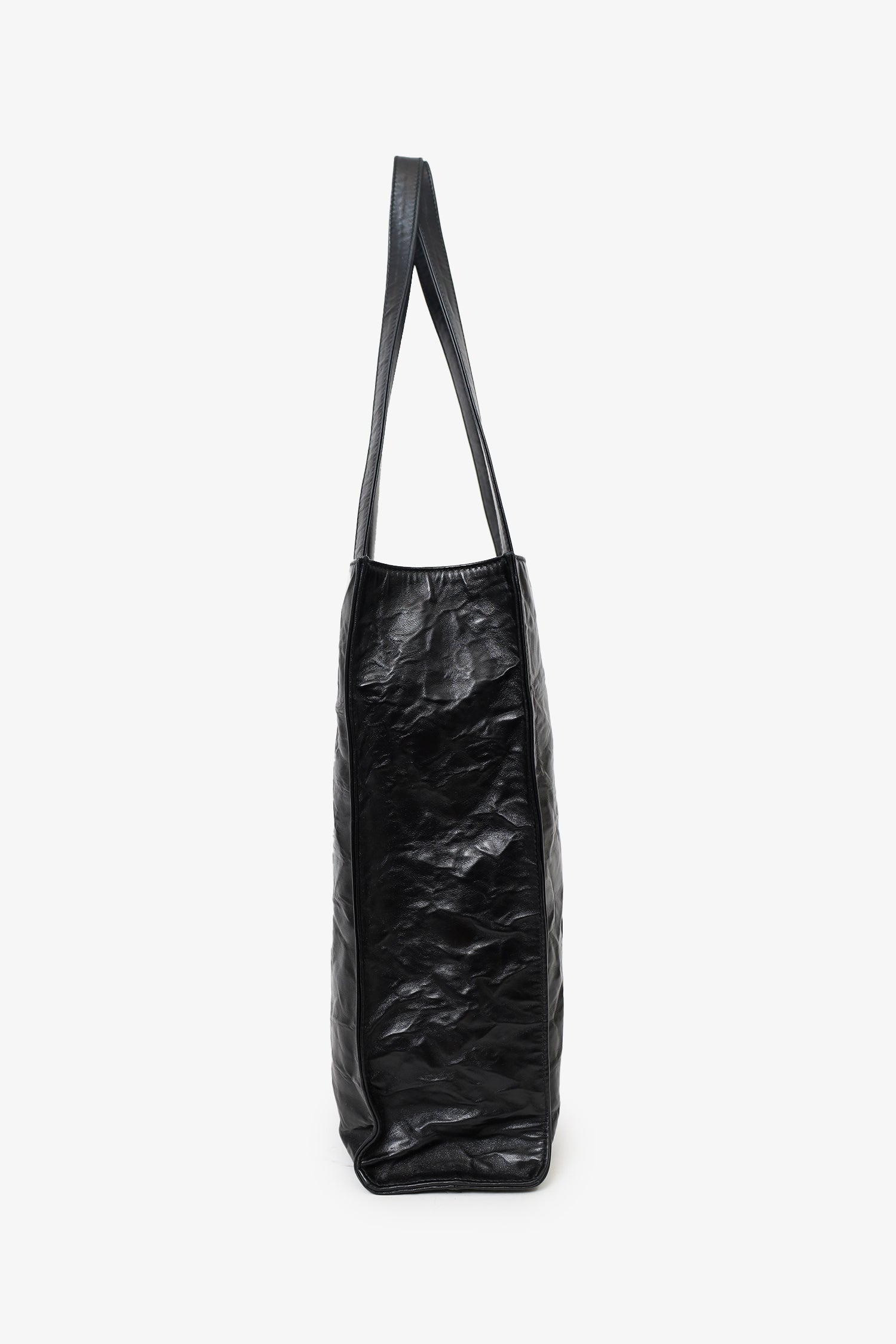 Refresh availabilityPrada Black Crinkle Nappa Leather Small Tote Bag. Top twin straps. Leather-lined interior. Single interior zip pocket. Silver-tone hardware. Tonal stitching.