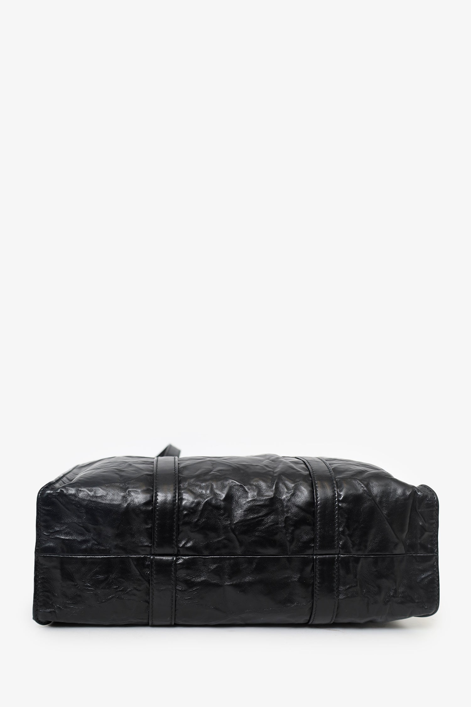 Prada Black Crinkle Nappa Leather Small Tote Bag