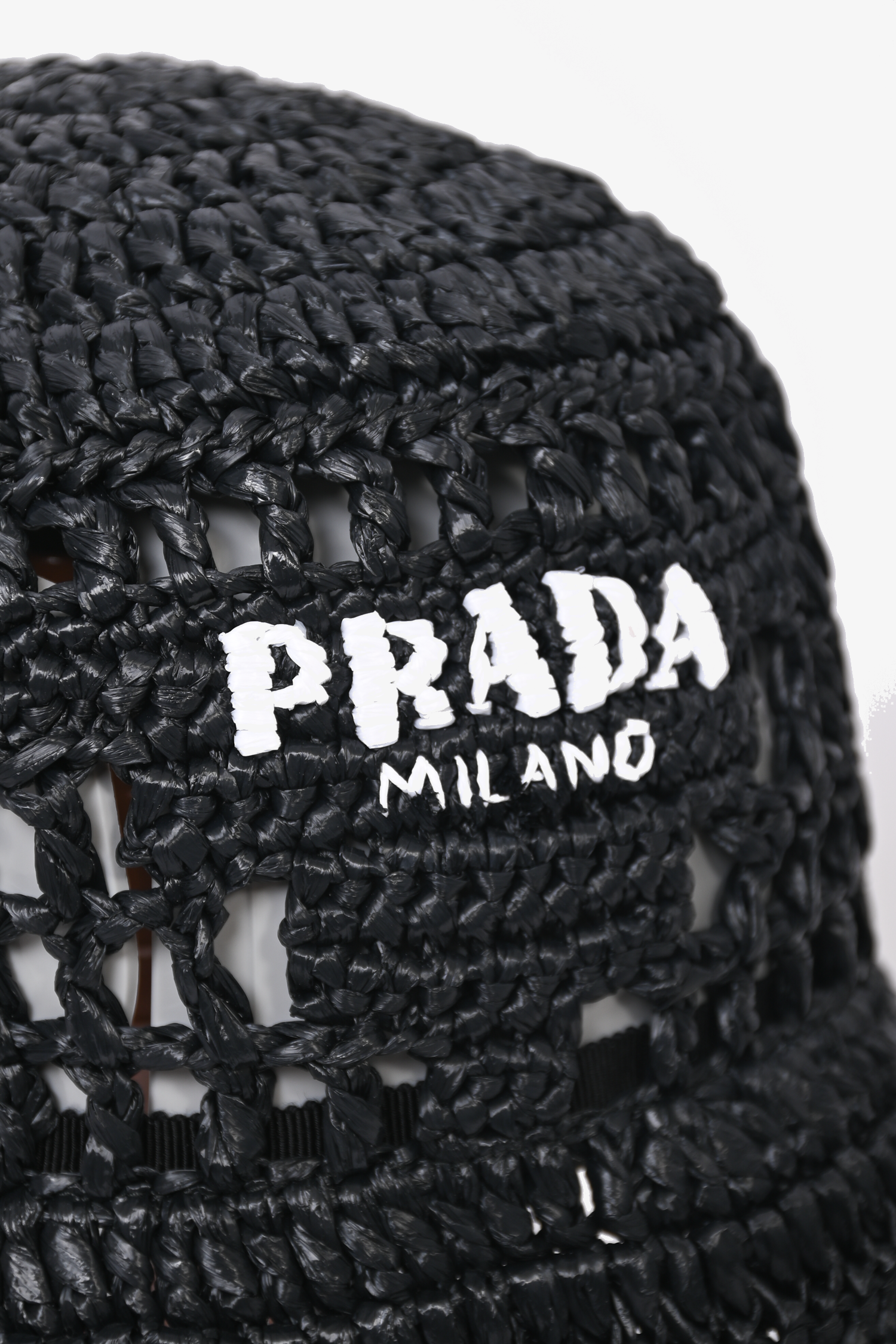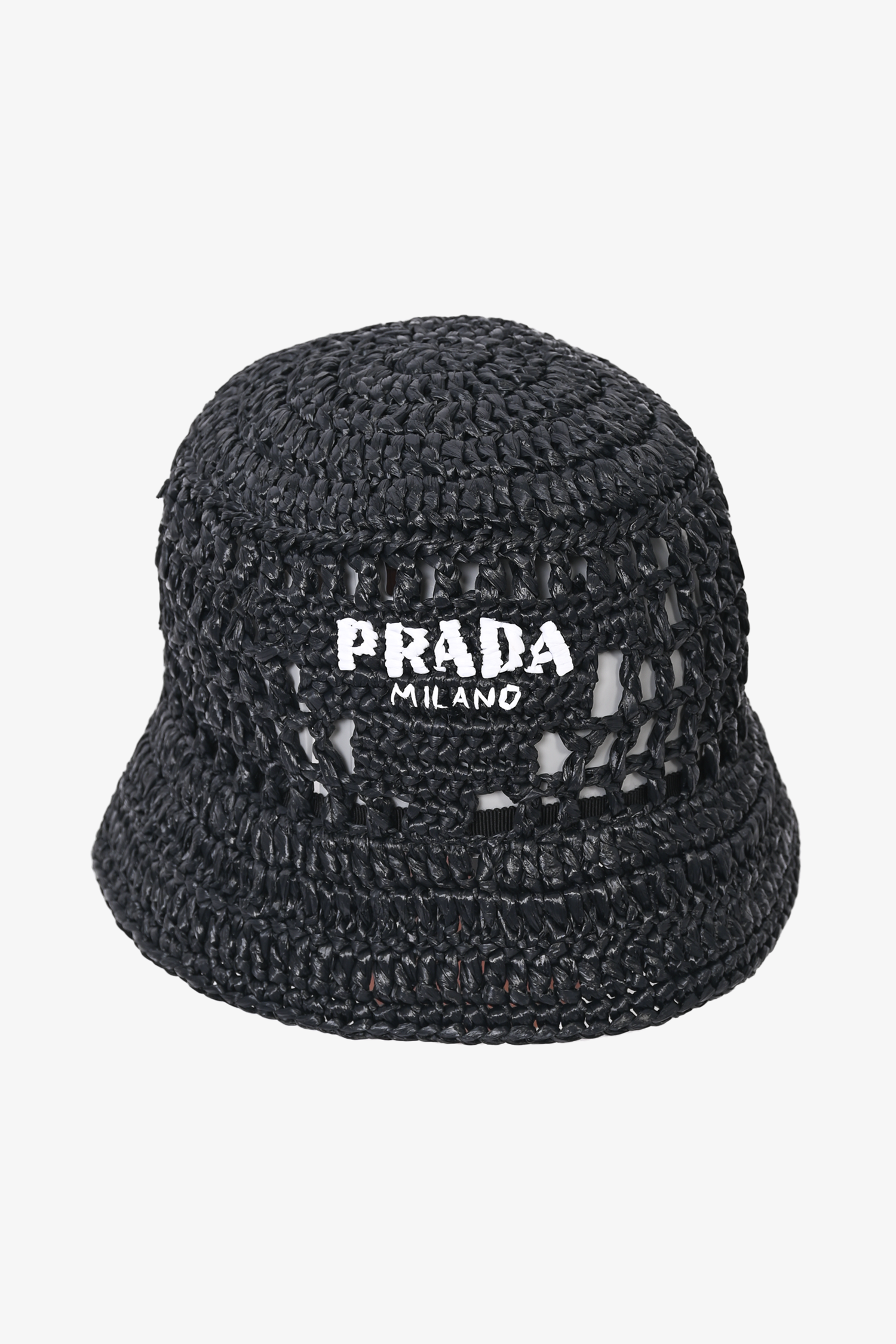 Refresh availabilityPrada Black Crochet Knit Bucket Hat. Tonal stitching.