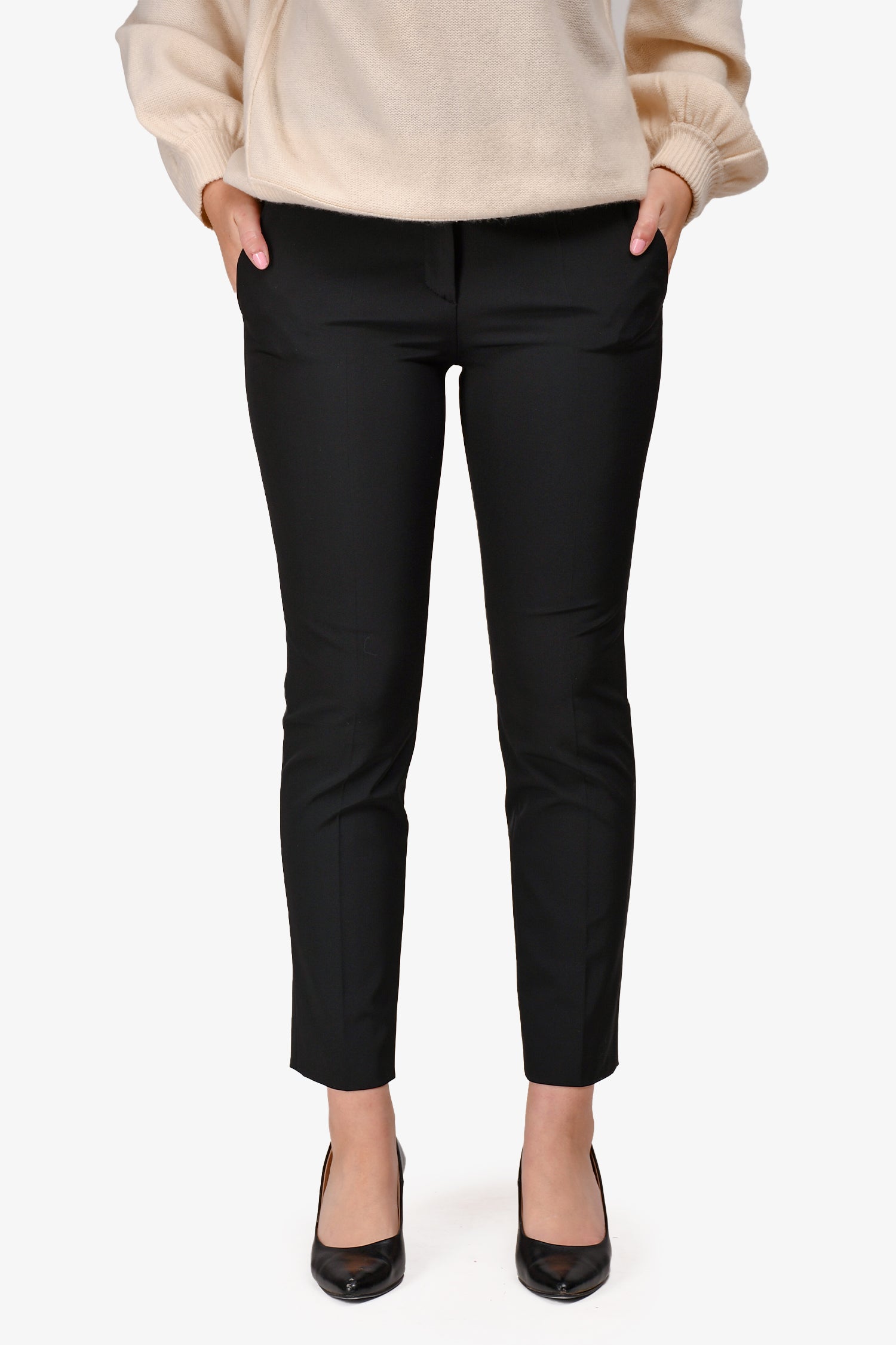 Refresh availabilityPrada Black Fitted Trousers. Fly-hook closure. 4 Pocket design. Mid-rise. Tonal stitching.