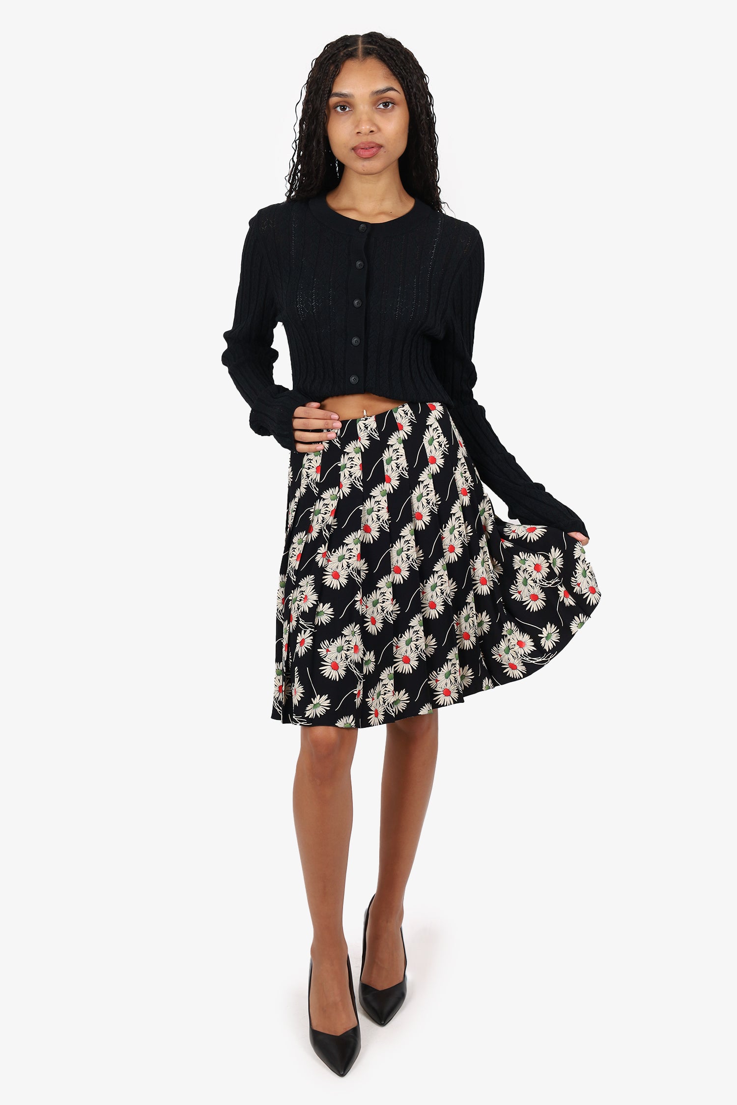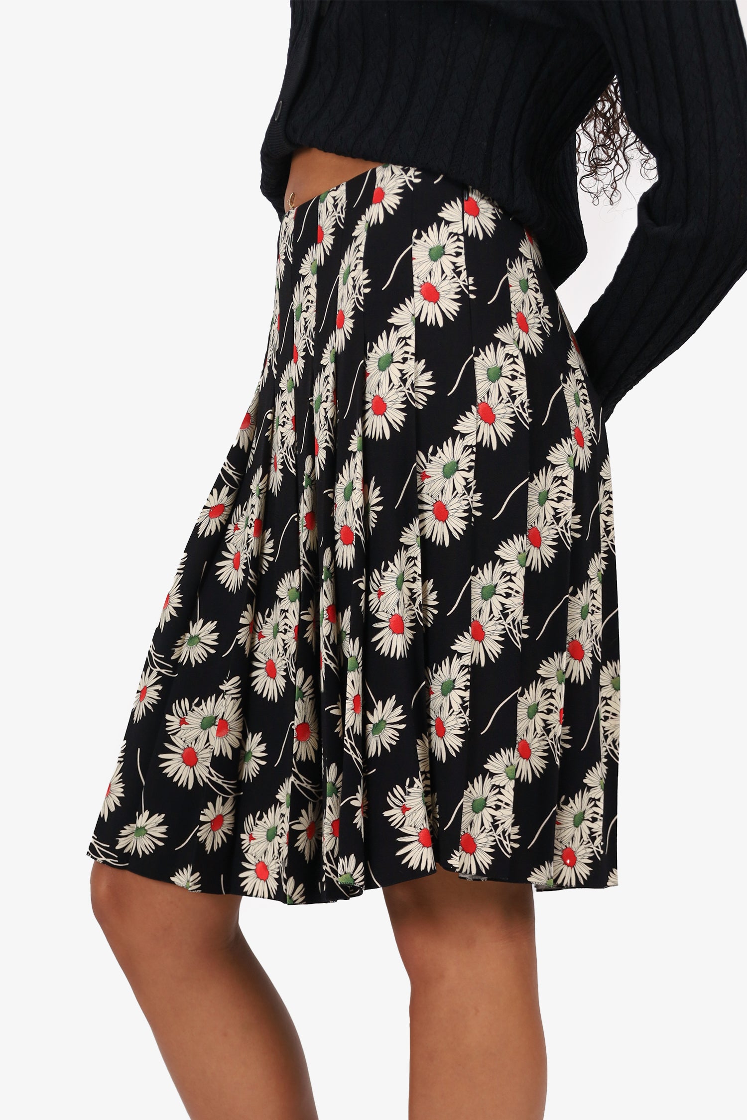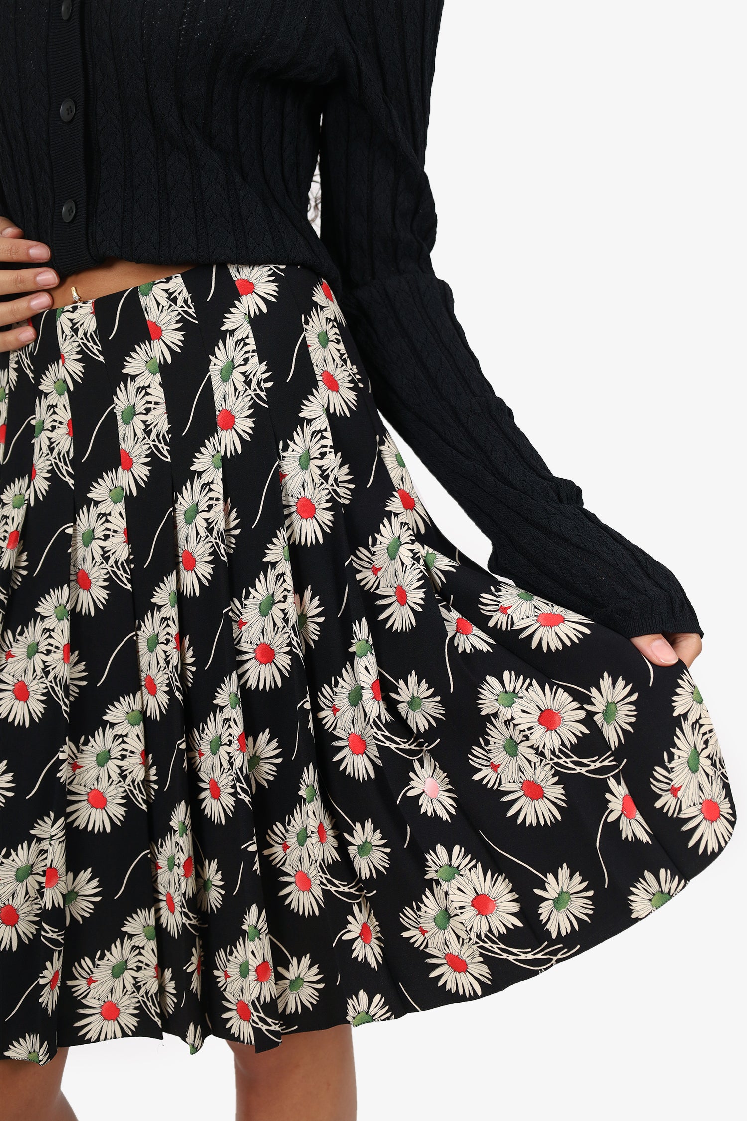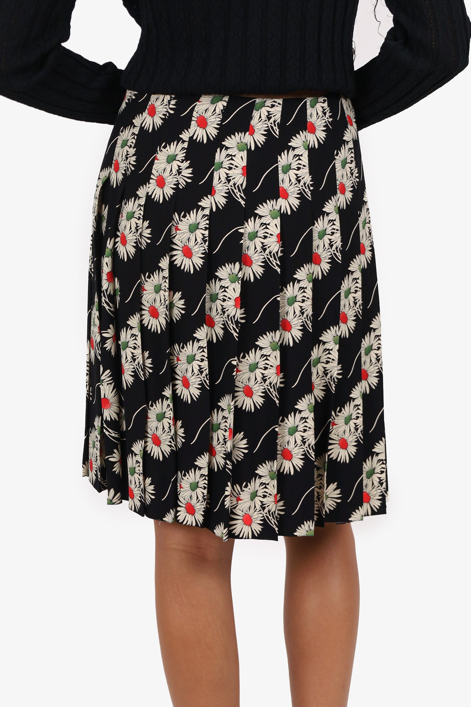 Prada Black Floral Print Pleated Mini Skirt Size 36