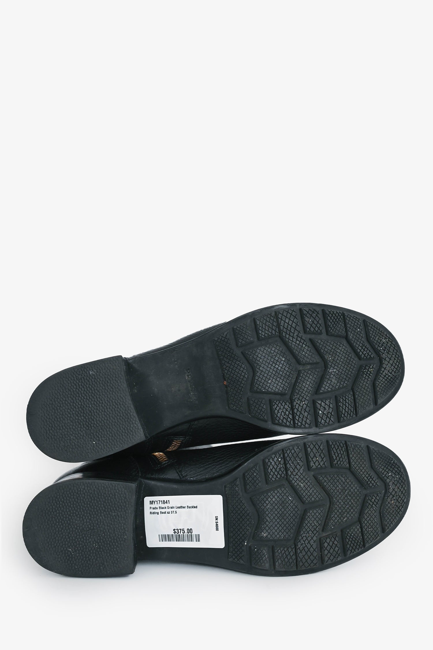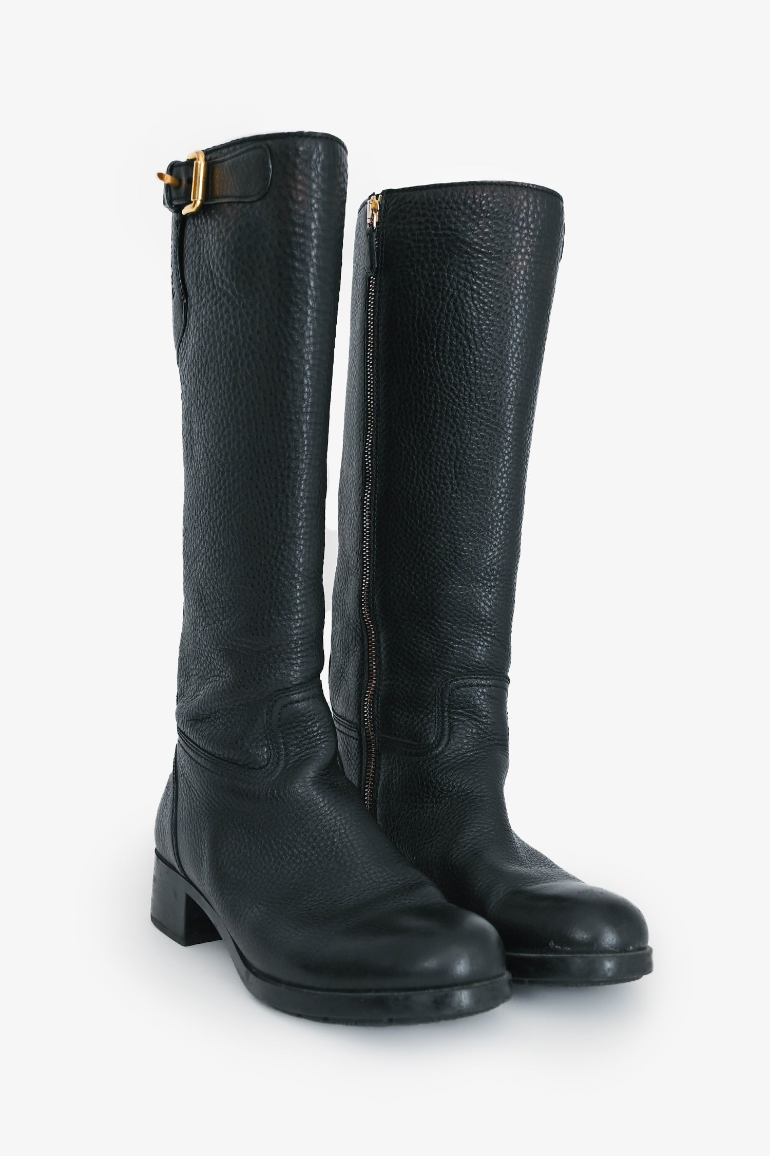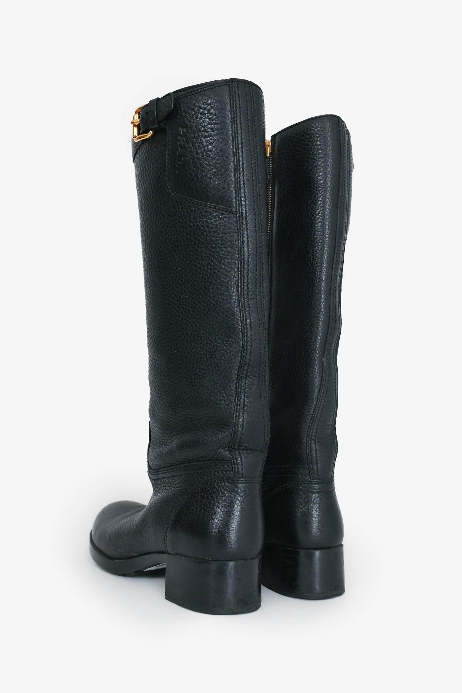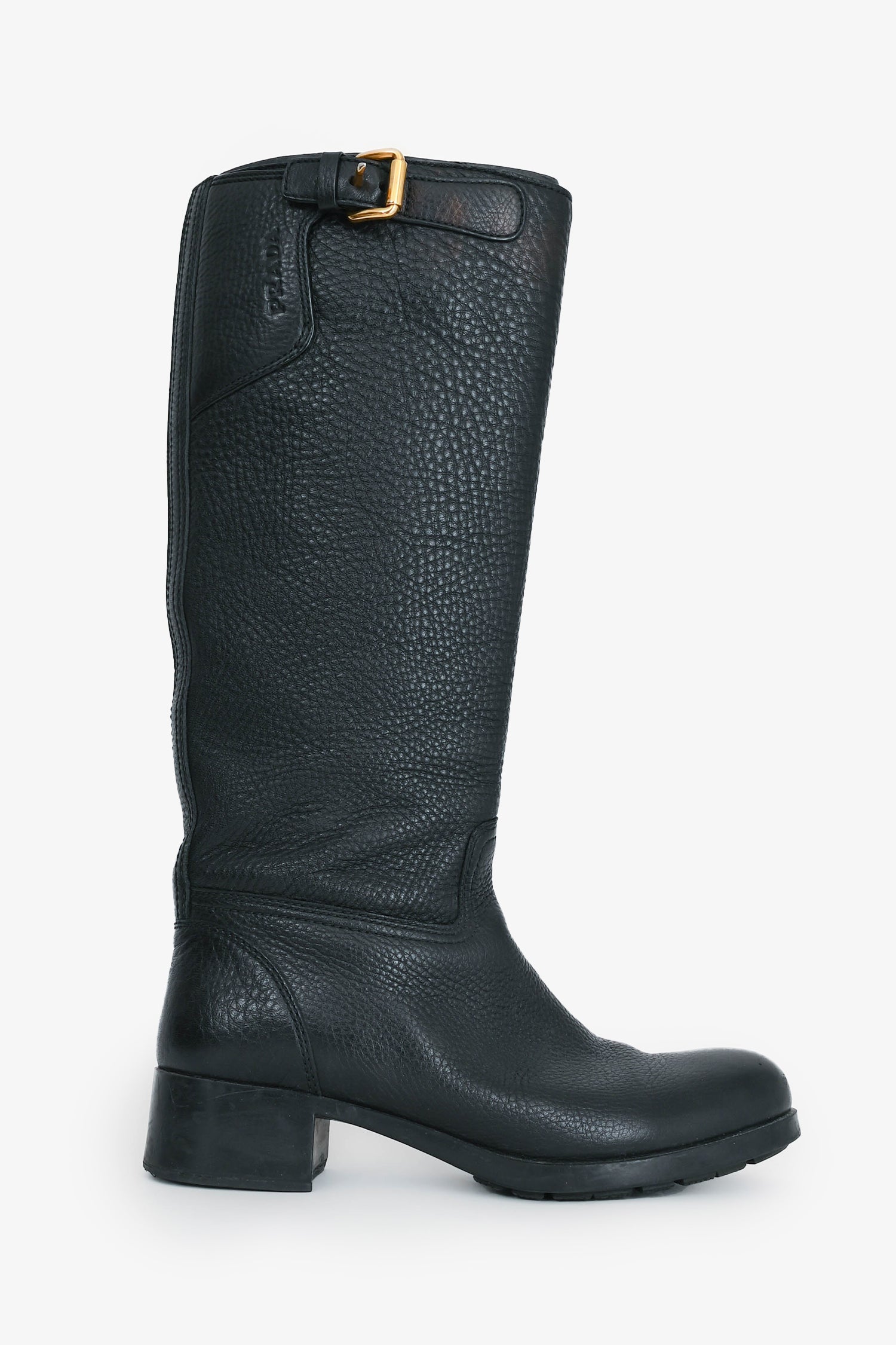 Refresh availabilityPrada Black Grain Leather Buckled Riding Boot. Side zip closure. Round toe.