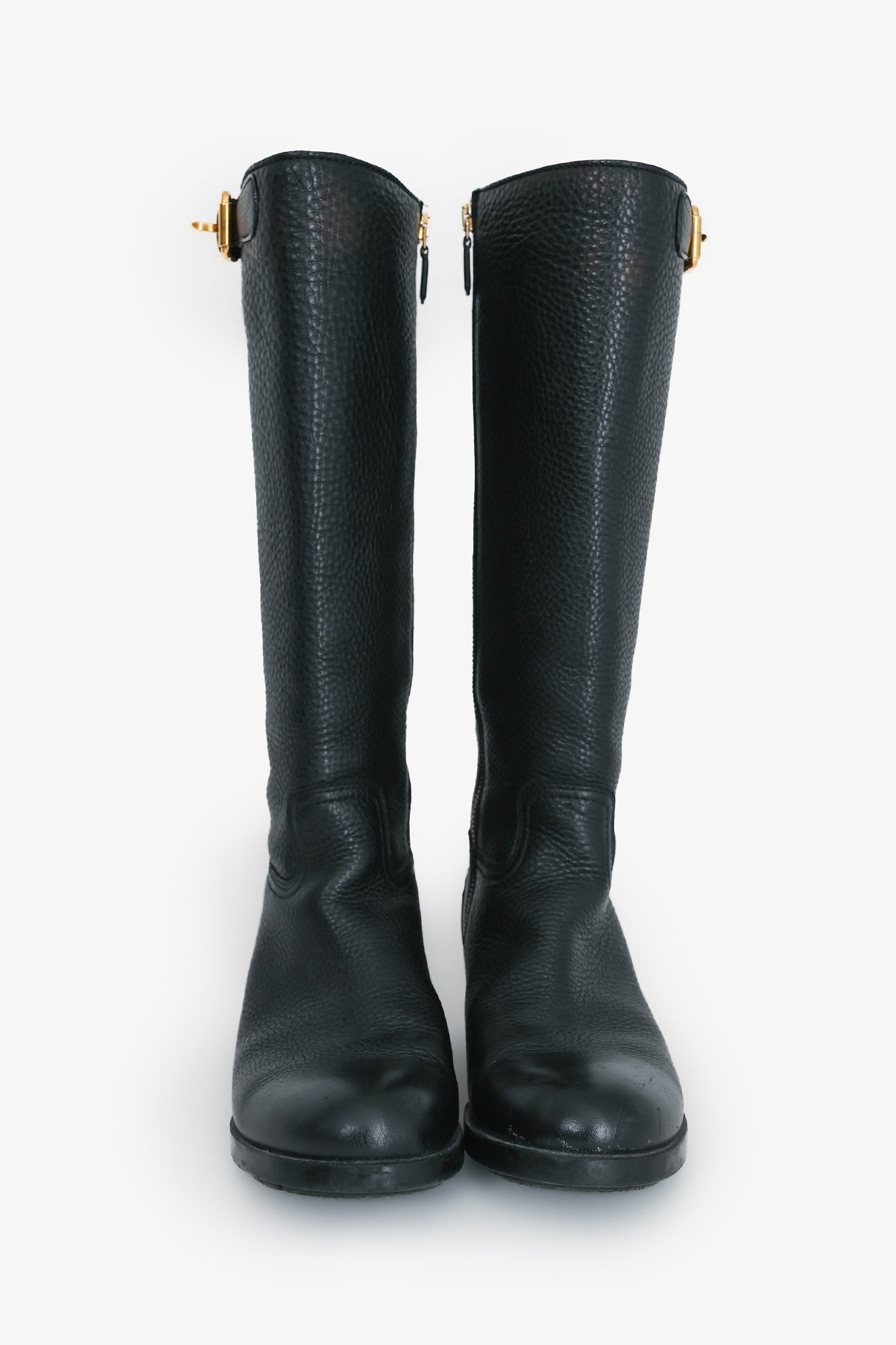 Prada Black Grain Leather Buckled Riding Boot Size 37.5