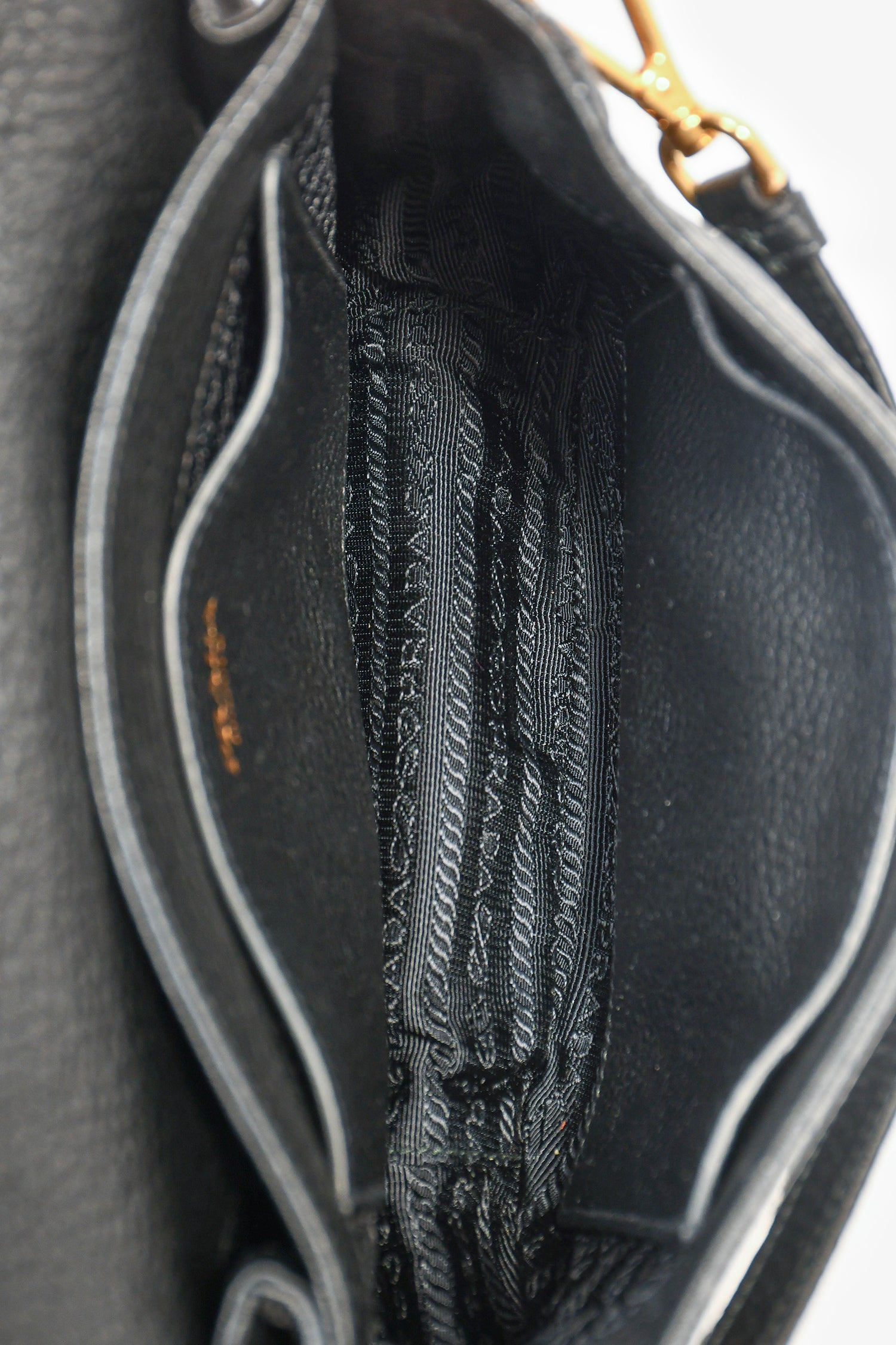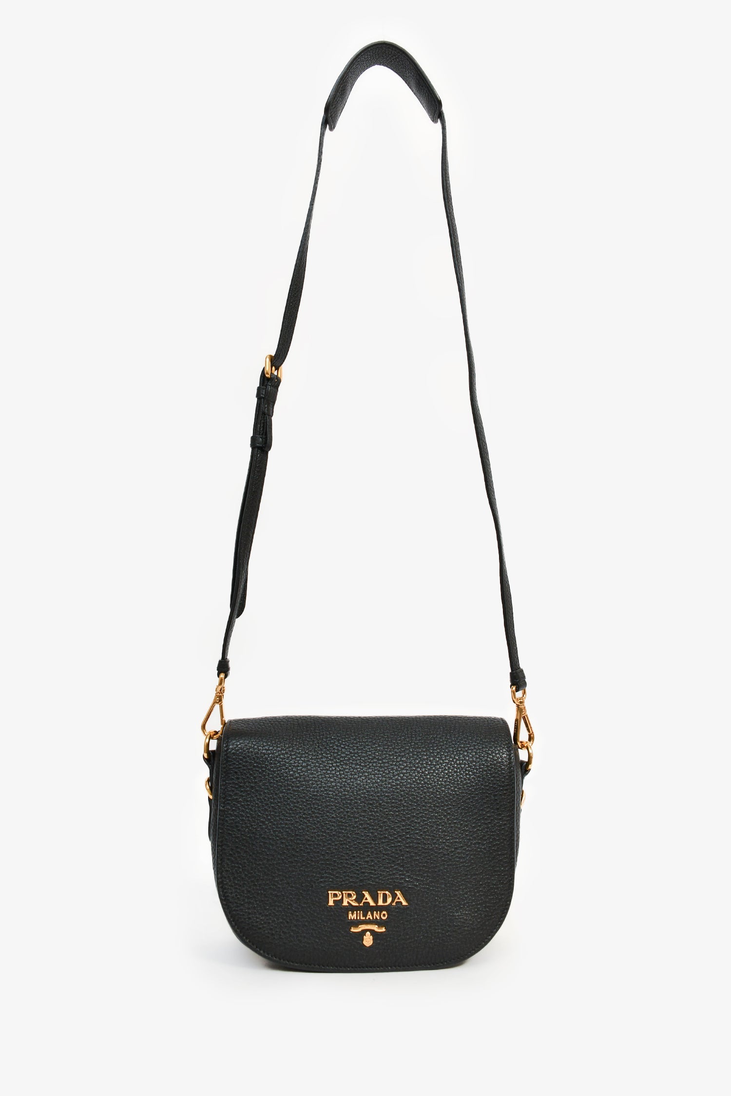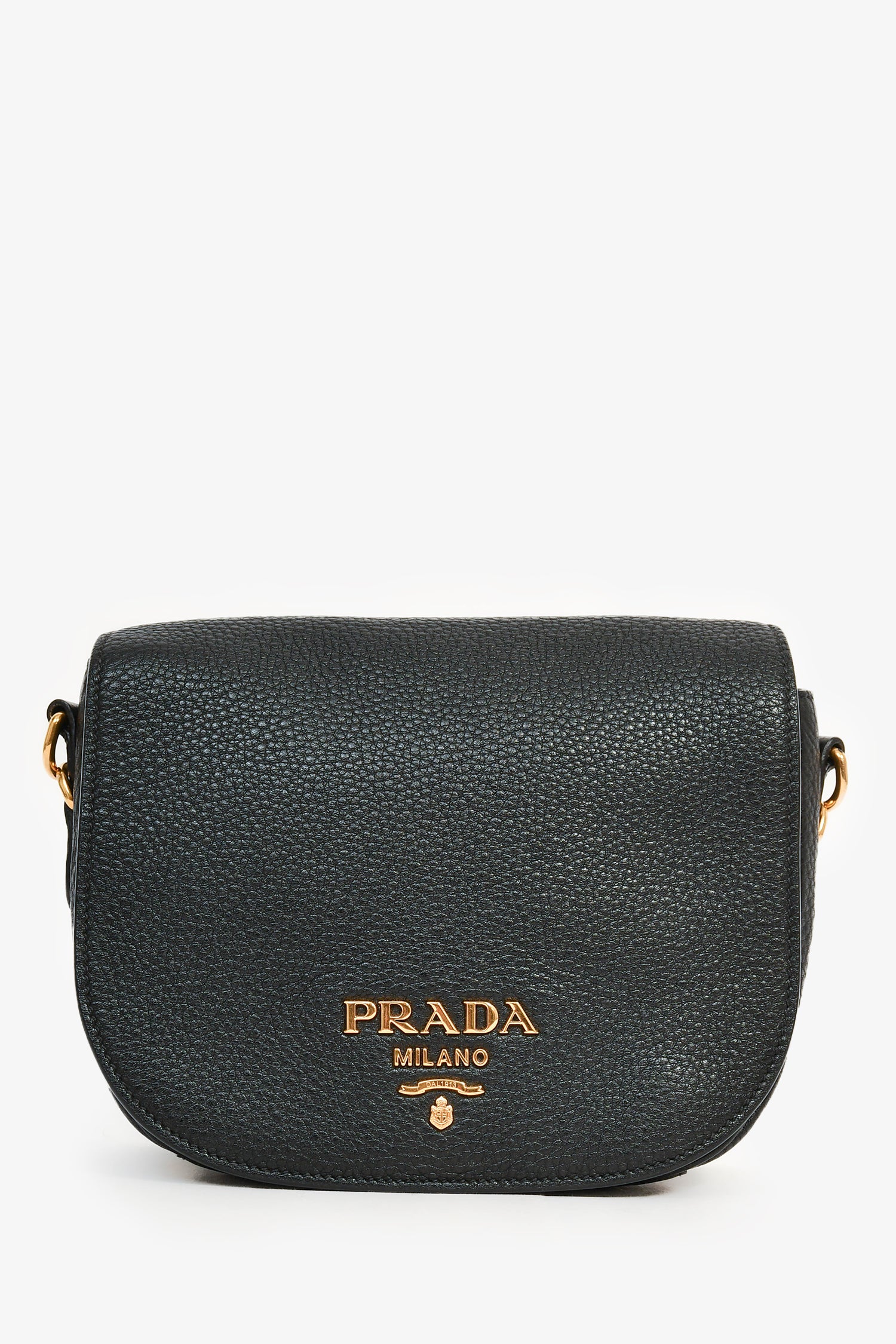 Refresh availabilityPrada Black Grained Leather Orange/Green Canvas Dual Strap Crossbody Bag. Gold-tone hardware. Fold-over flap with a concealed magnetic closure. 2 interior compartments. 2 pockets. Attachable crossbody strap. Webbed strap. Tonal stitching.