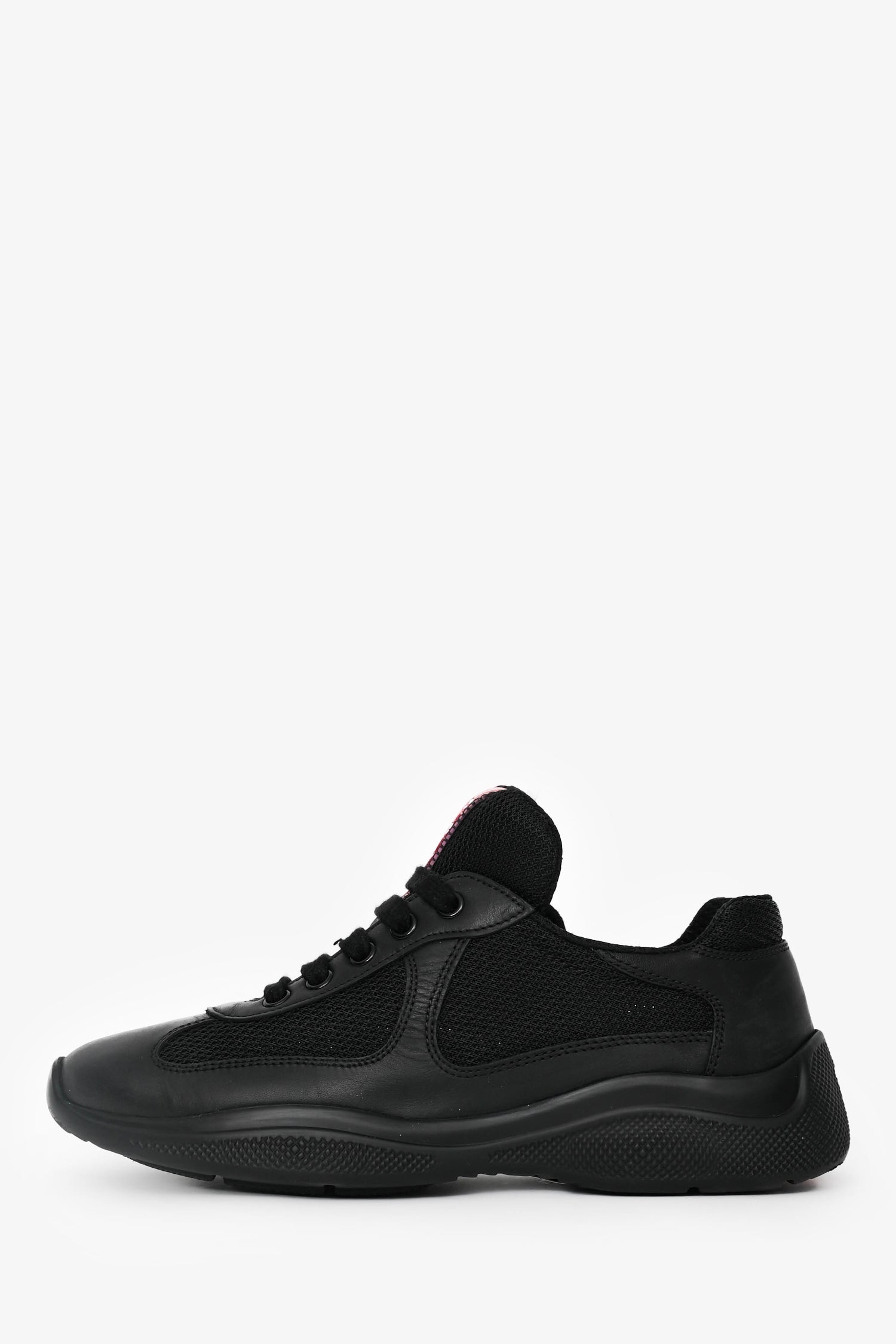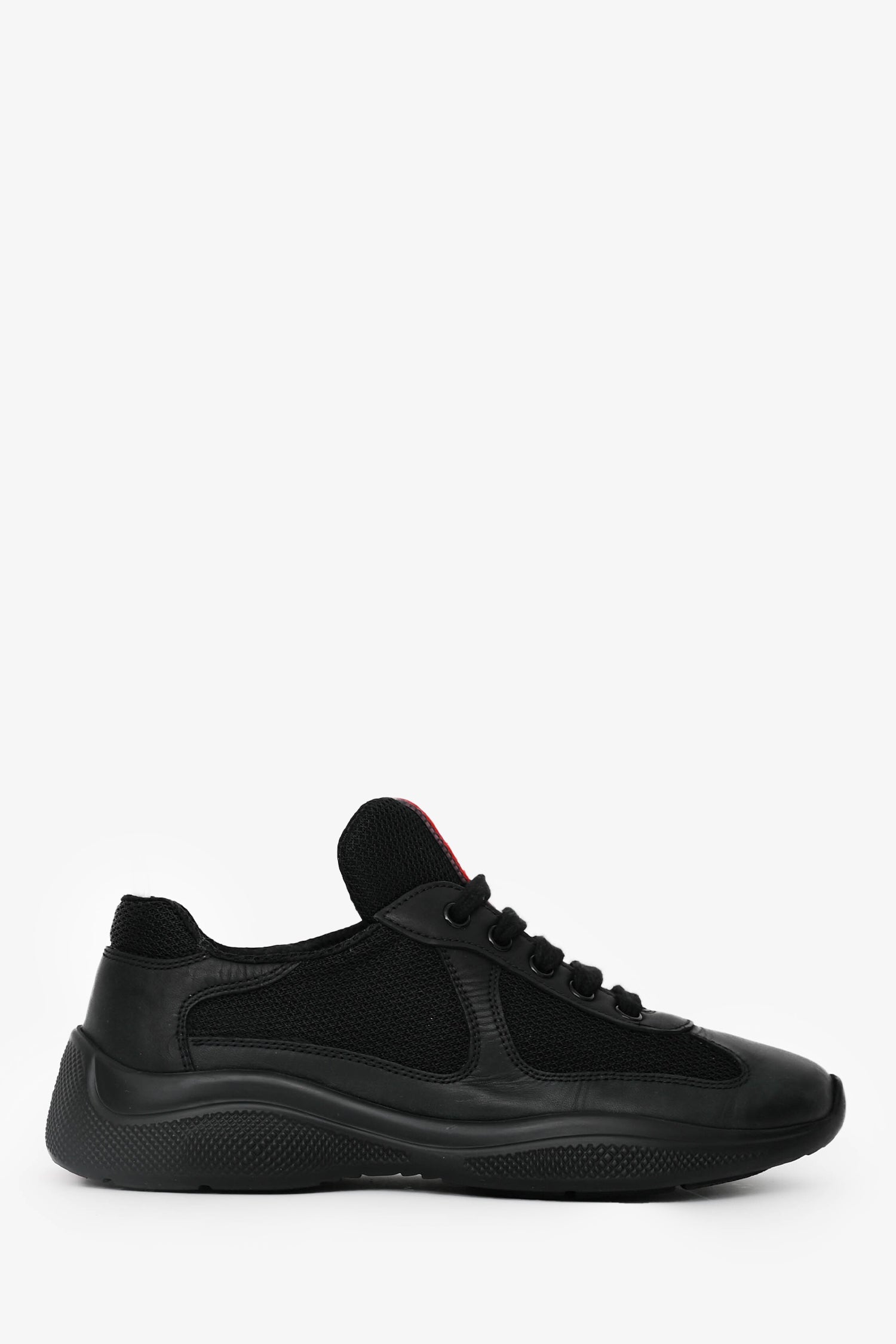 Prada Black Leather America's Cup Bike Low Top Sneakers Size 36.5