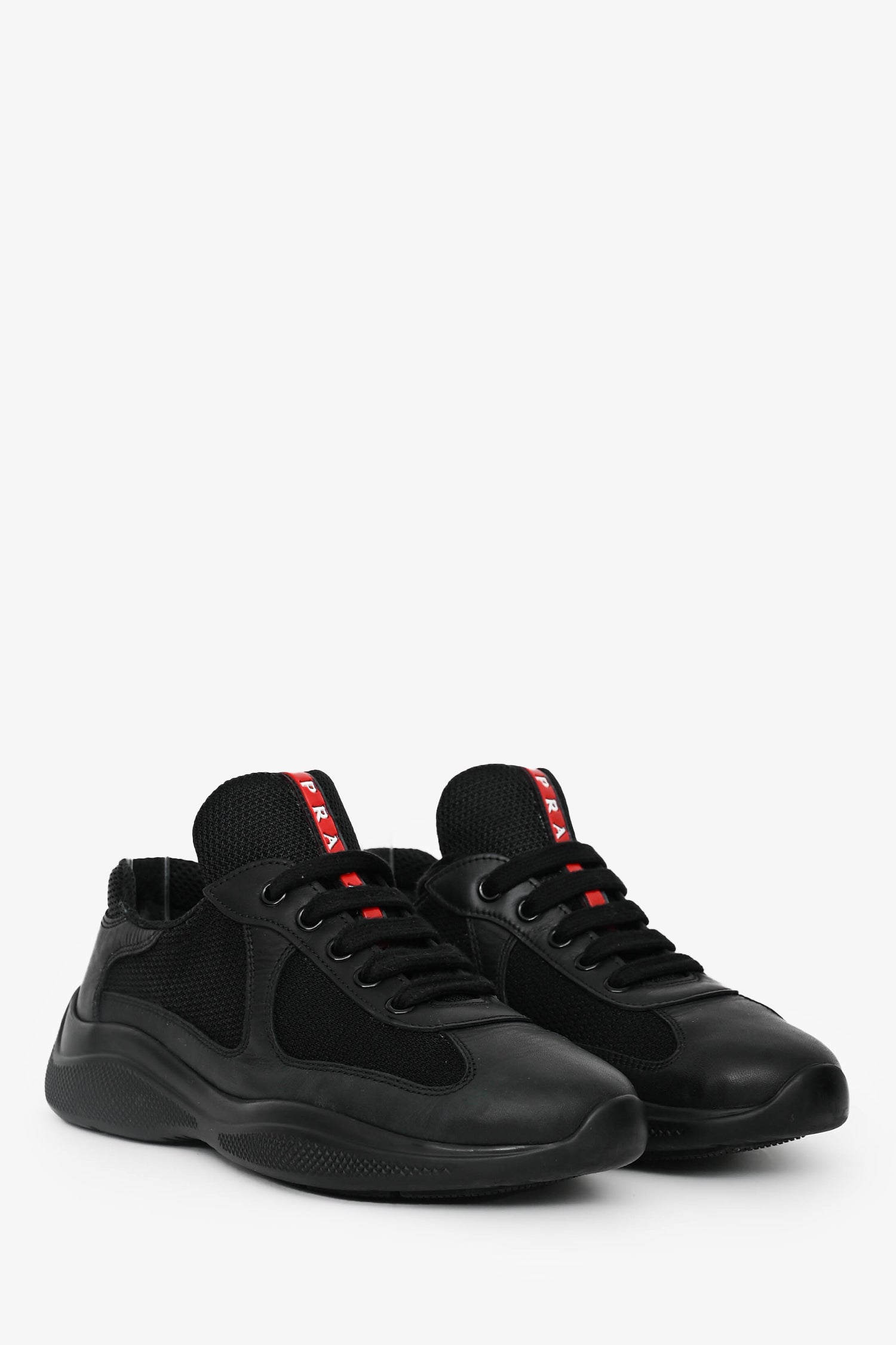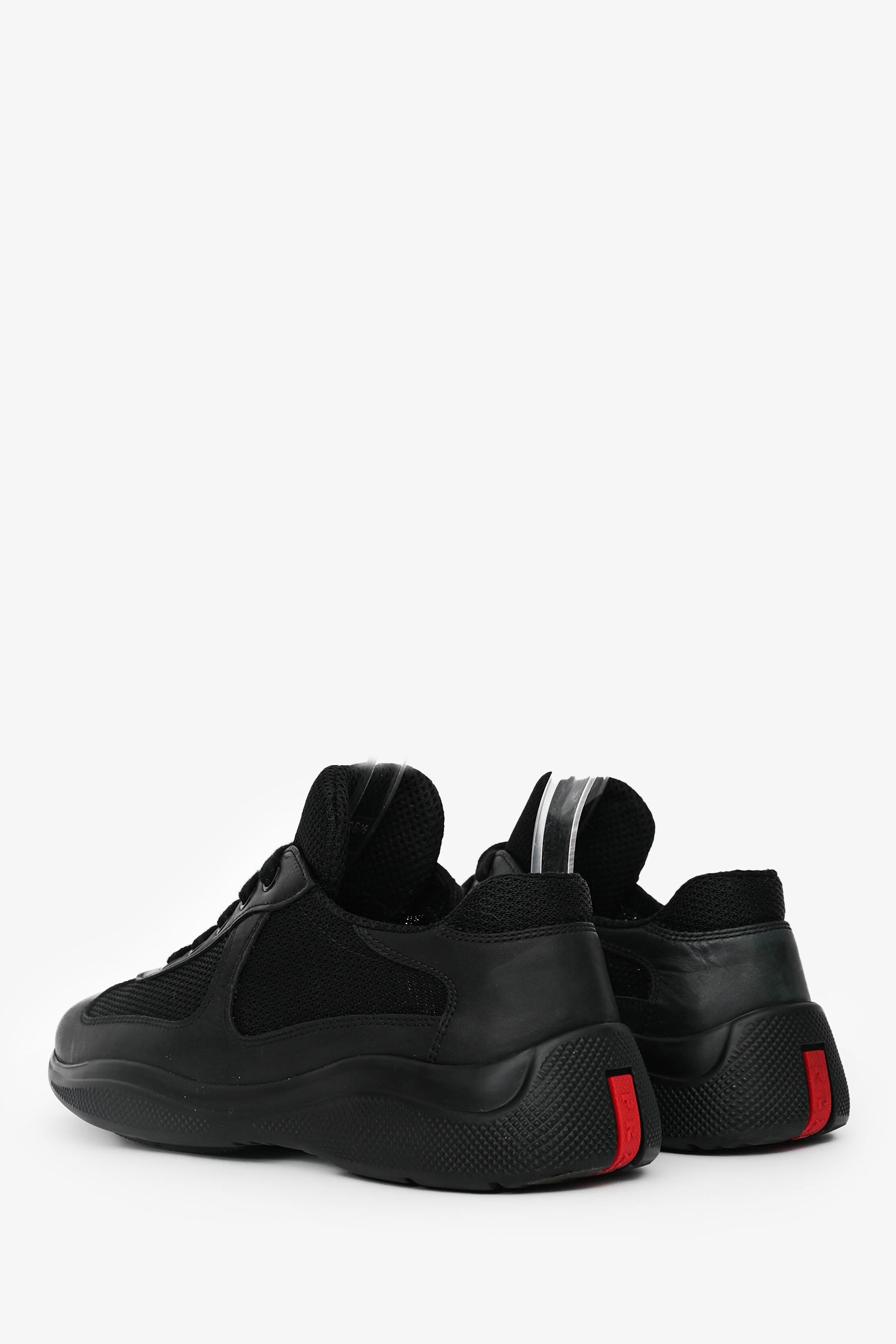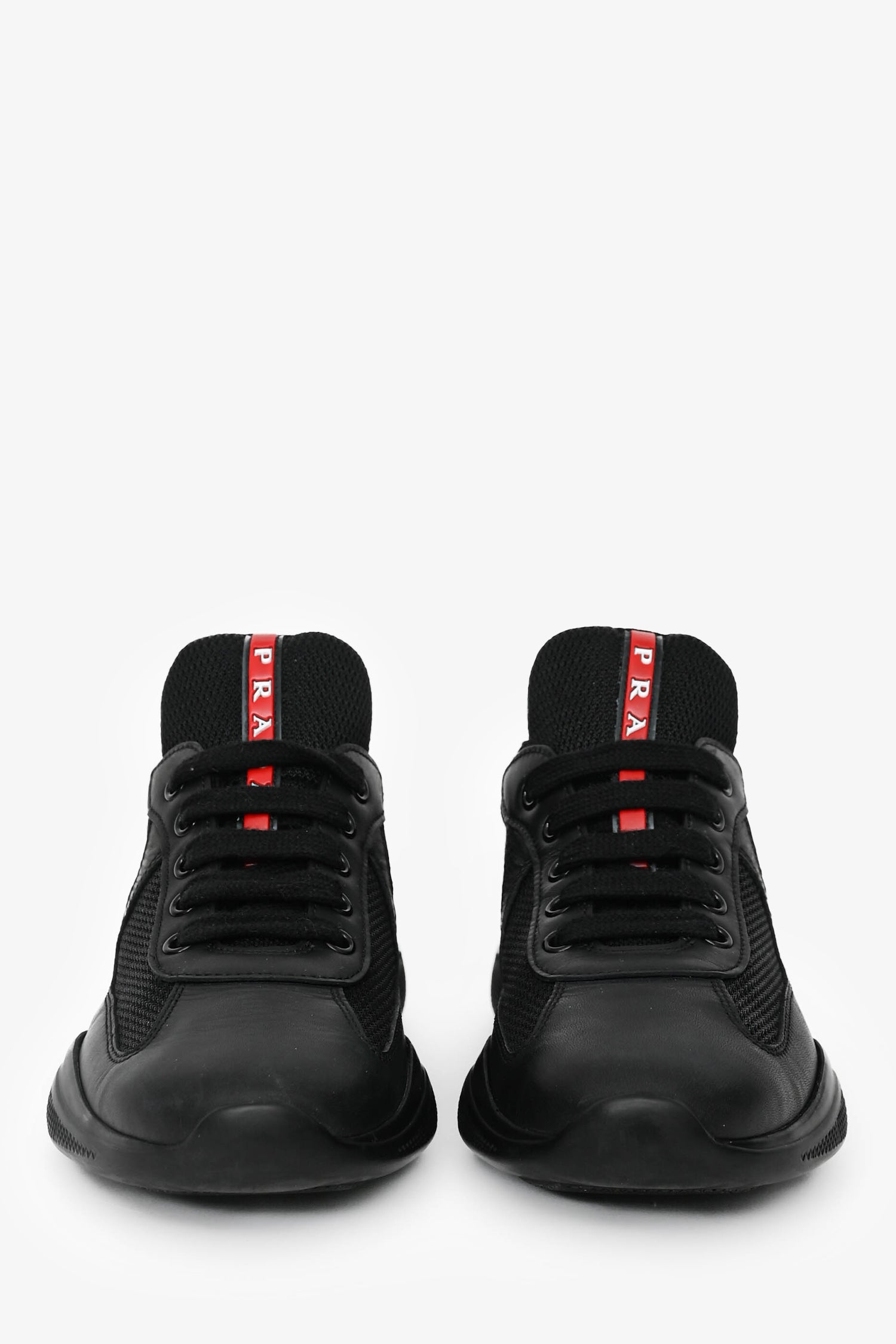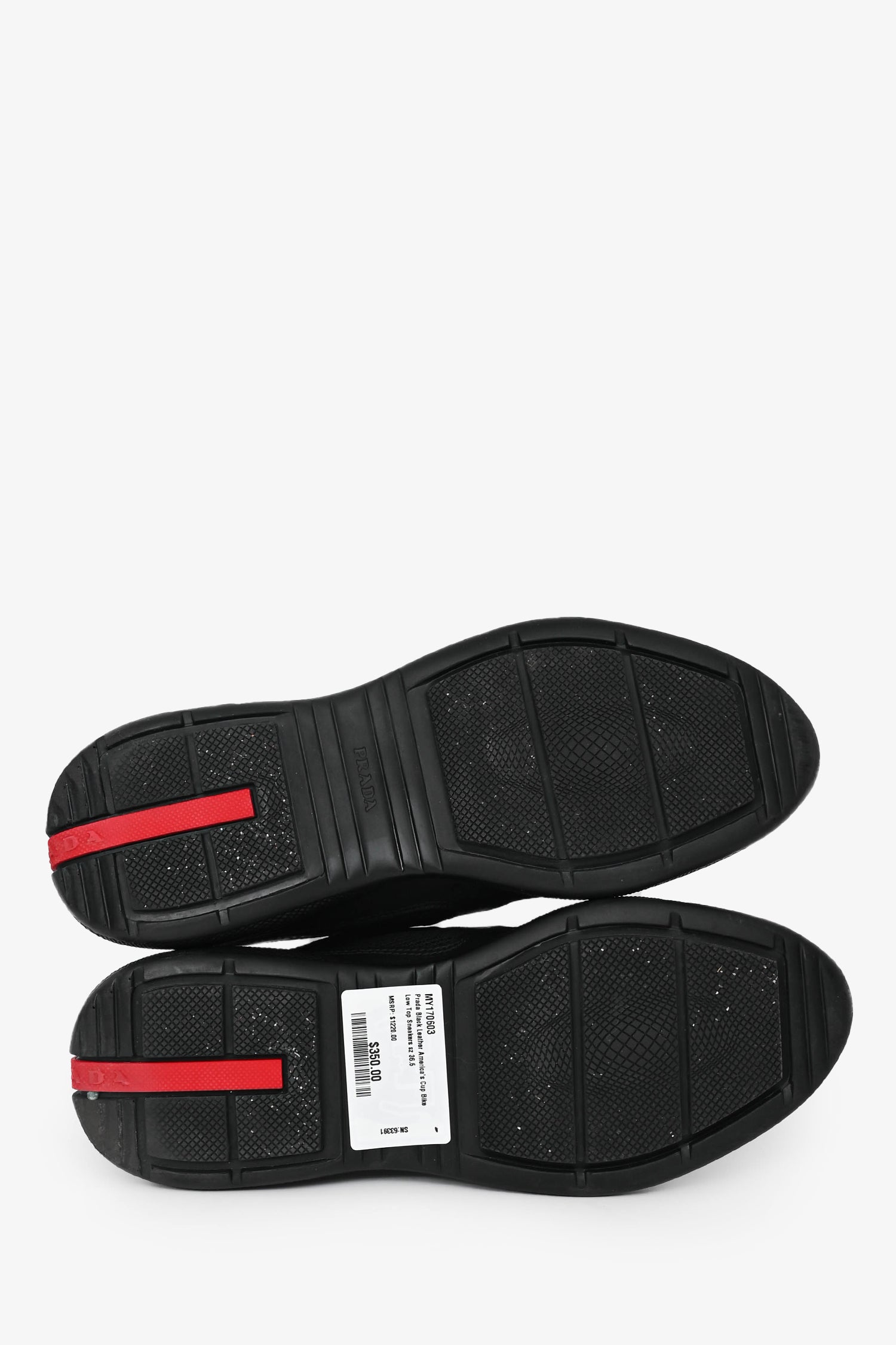 Refresh availabilityPrada Black Leather America's Cup Bike Low Top Sneakers. Lace-up closure. Tonal stitching.
