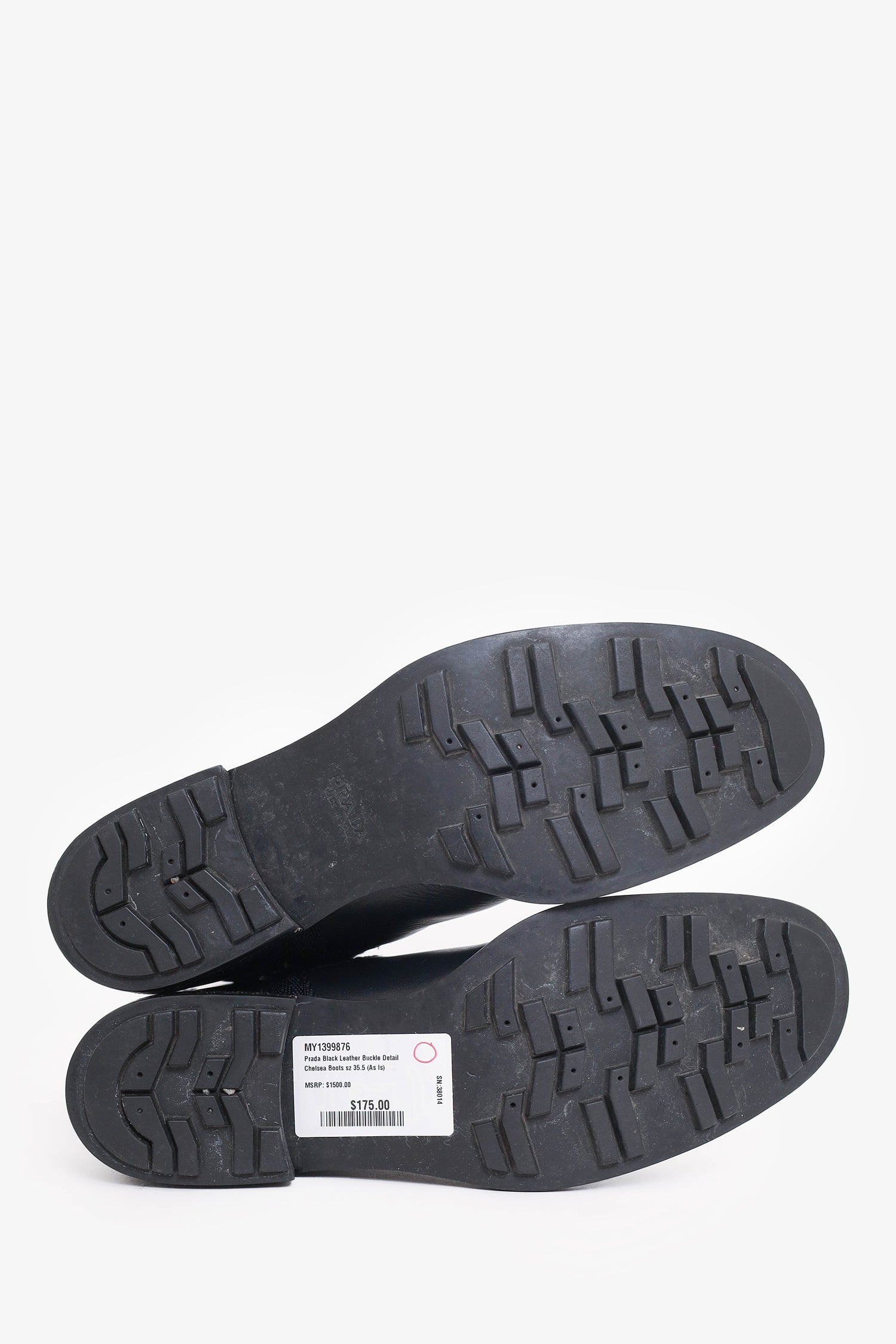 Prada Black Leather Buckle Detail Chelsea Boots Size 35.5
