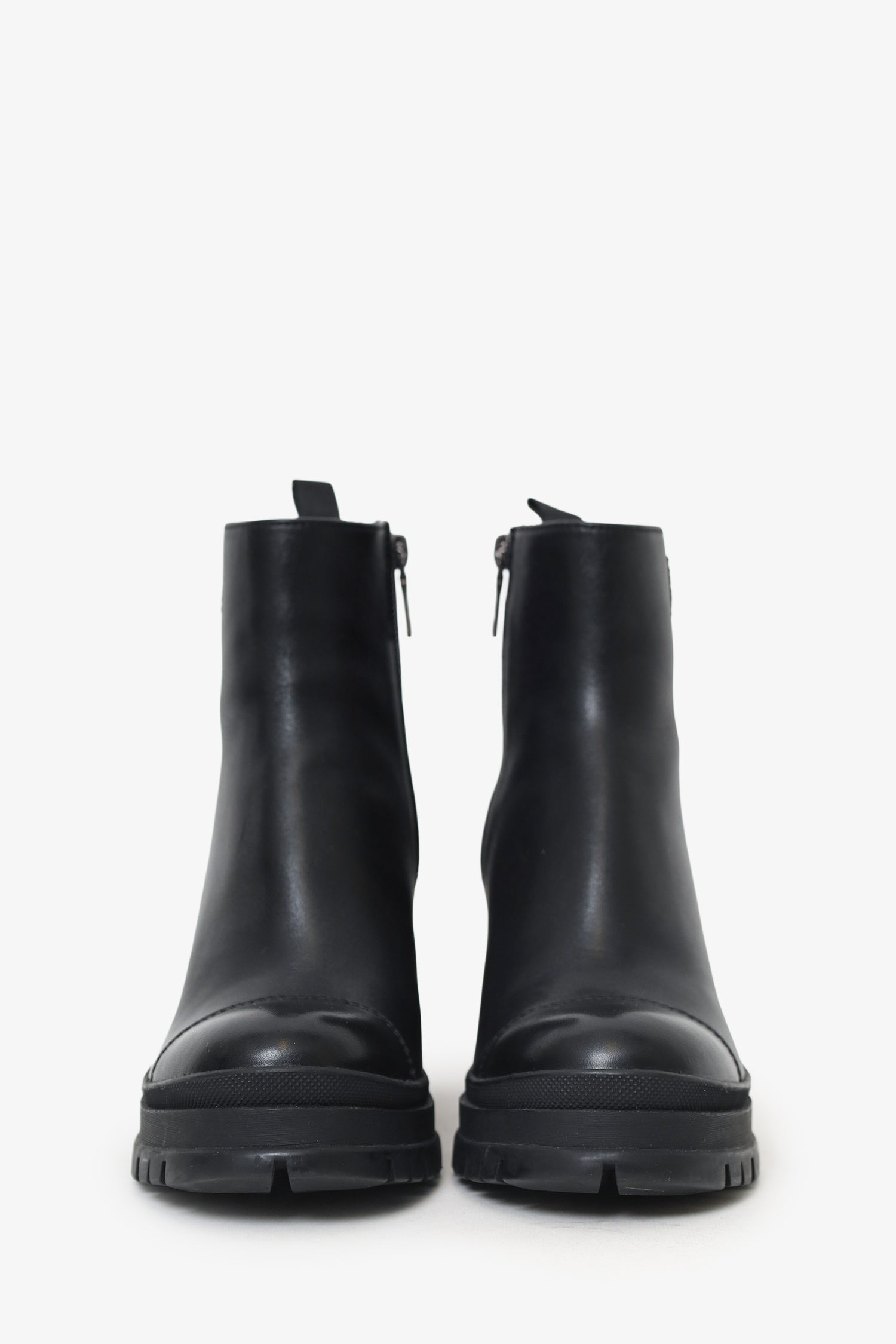 Prada Black Leather Chunky Block Heel Boots Size 36