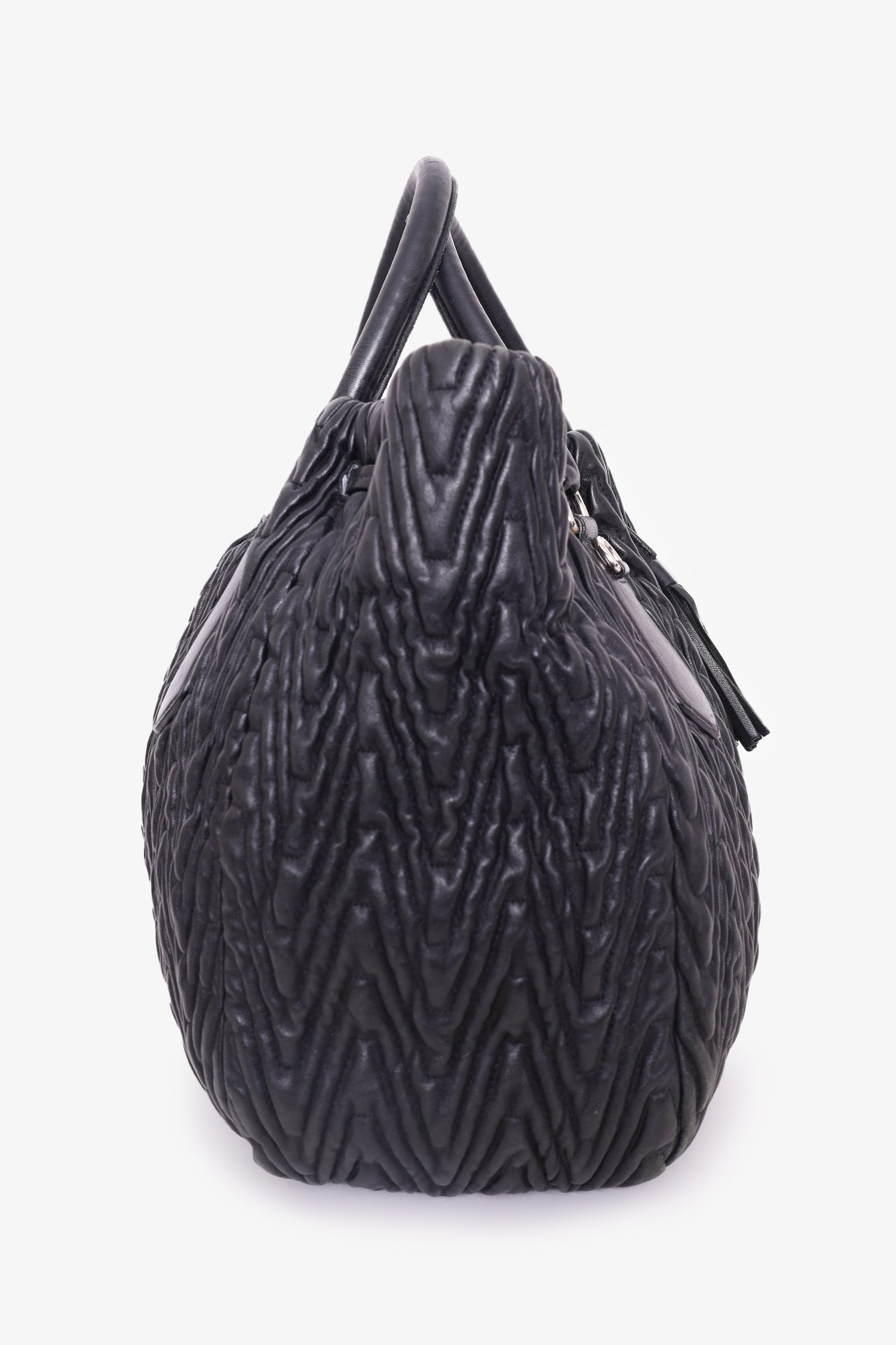 Prada Black Leather Nappa Chevron Antik Tote Bag