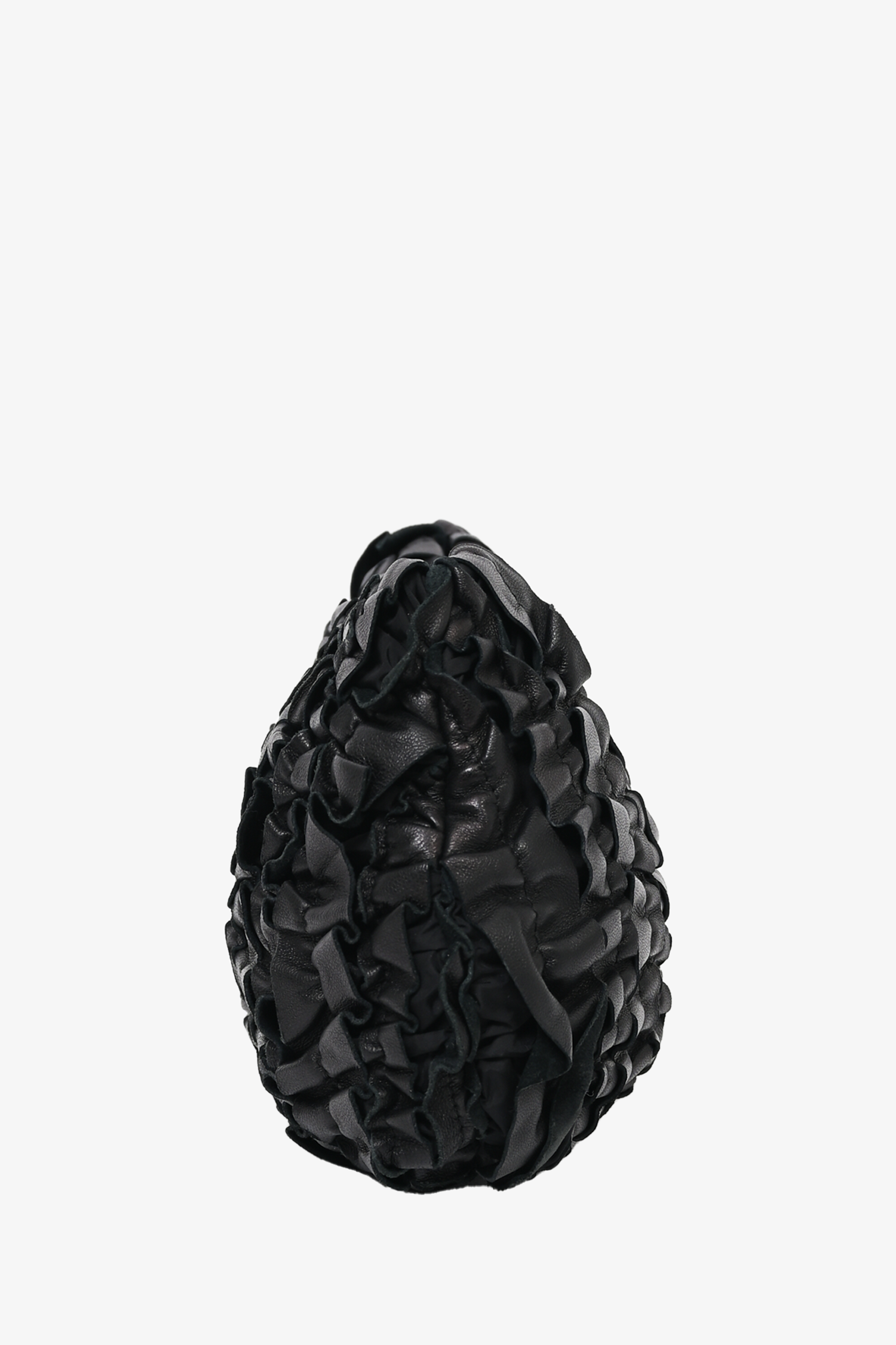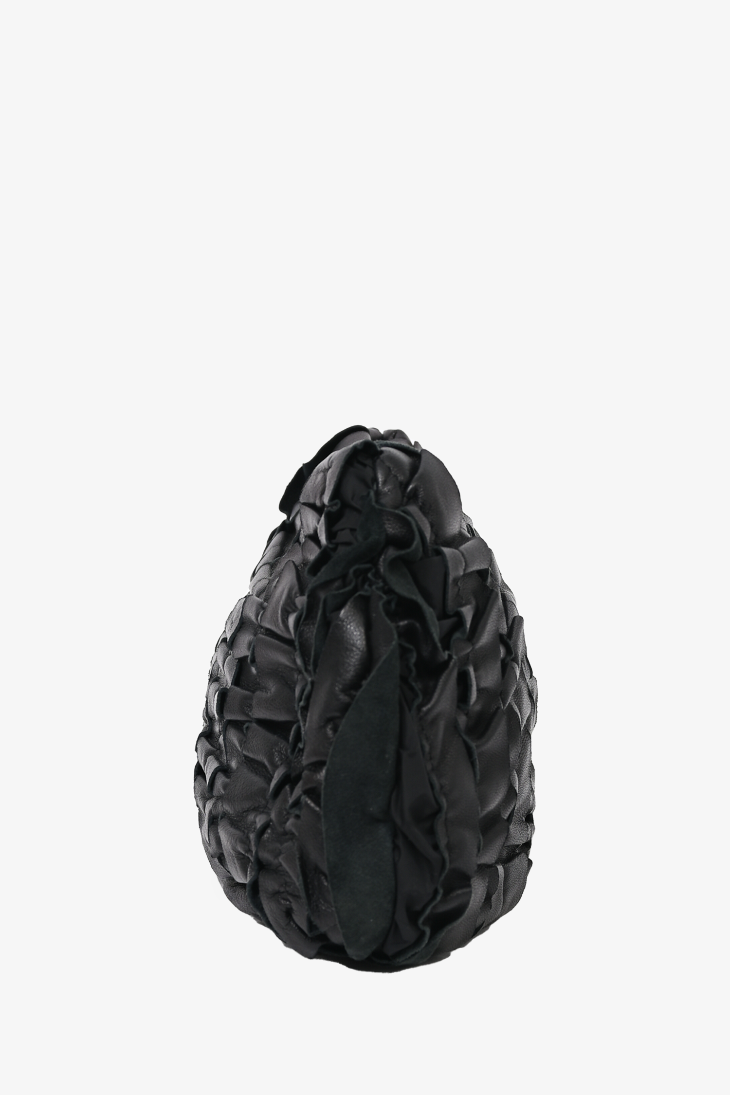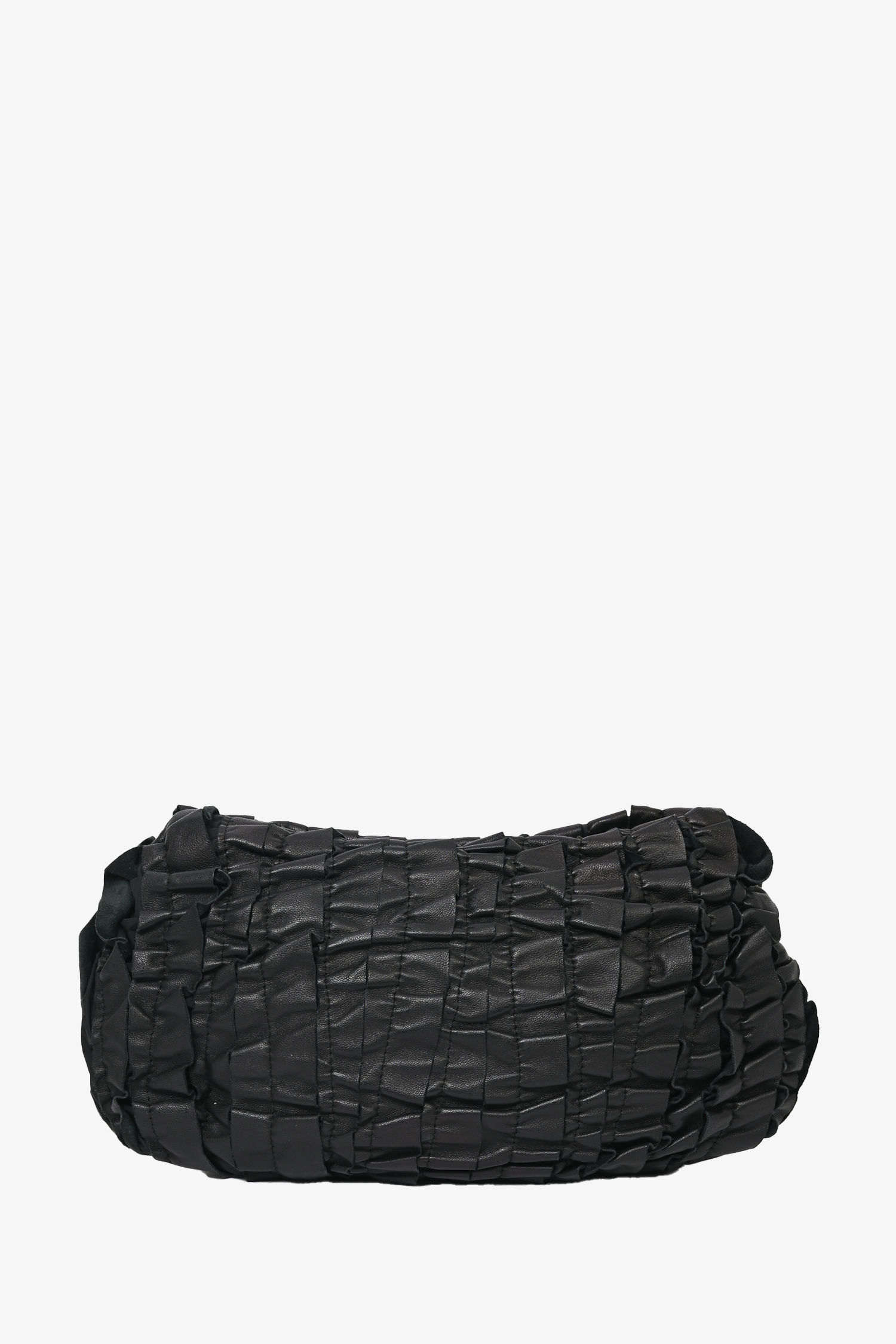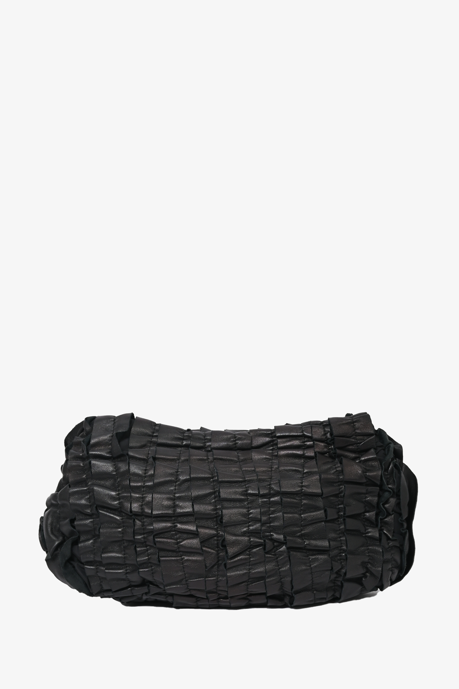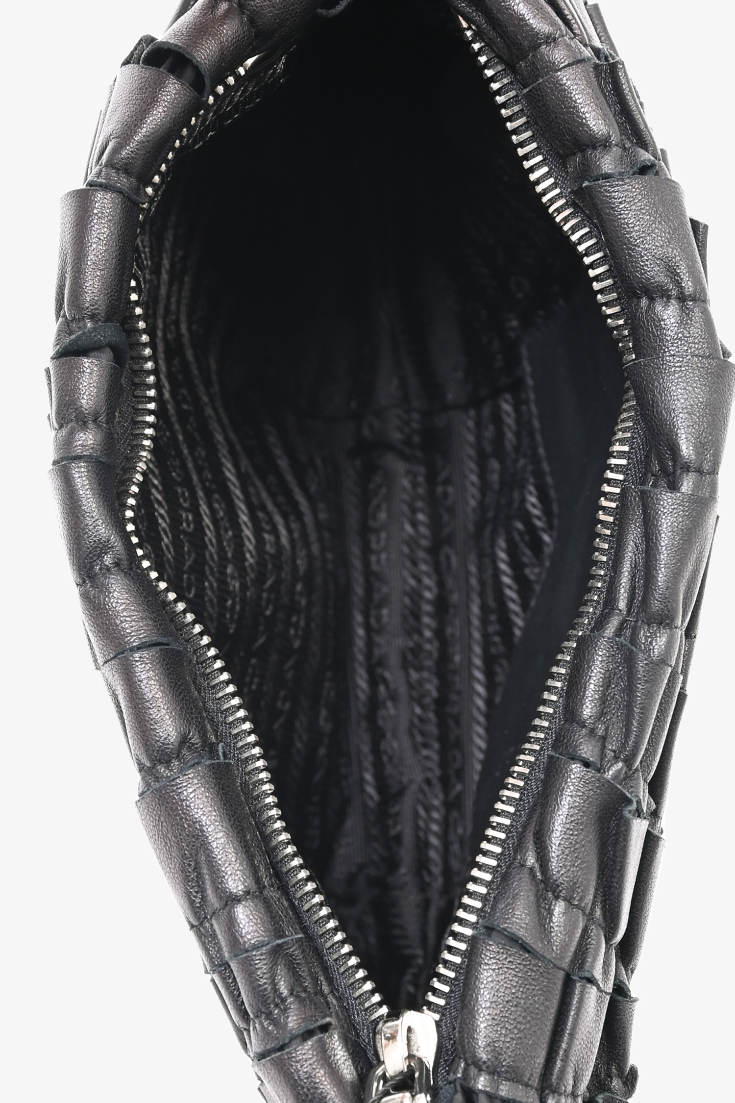 Refresh availabilityPrada Black Leather Tessuto Gaufre Clutch. Top zip closure. Silver-tone hardware. 1 interior slip pocket. Tonal stitching.