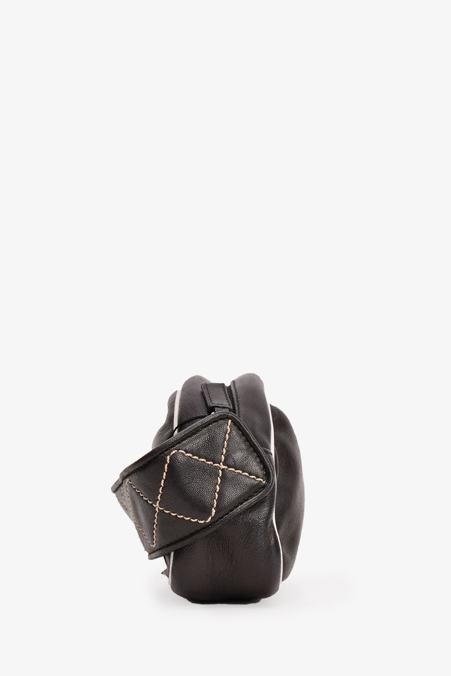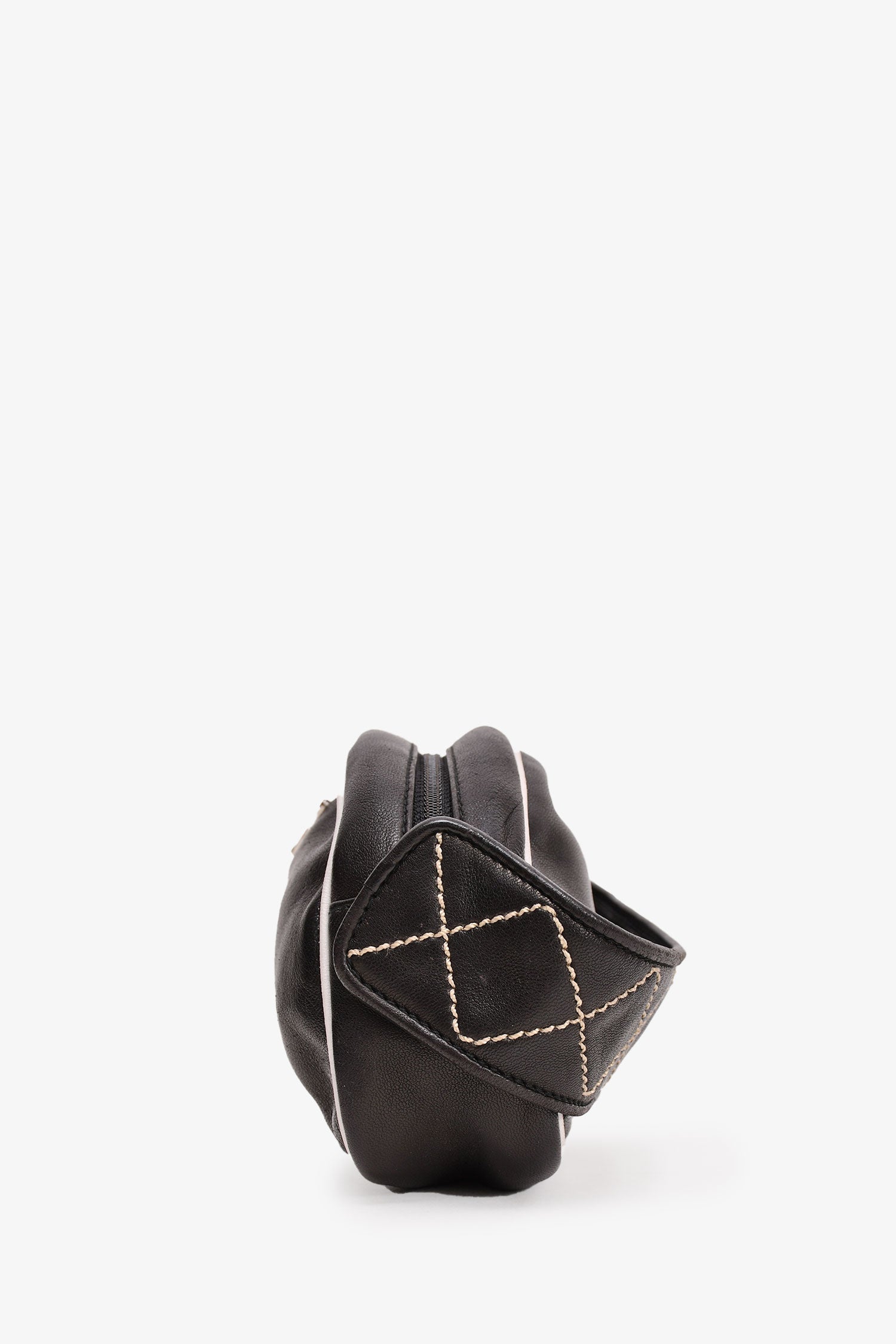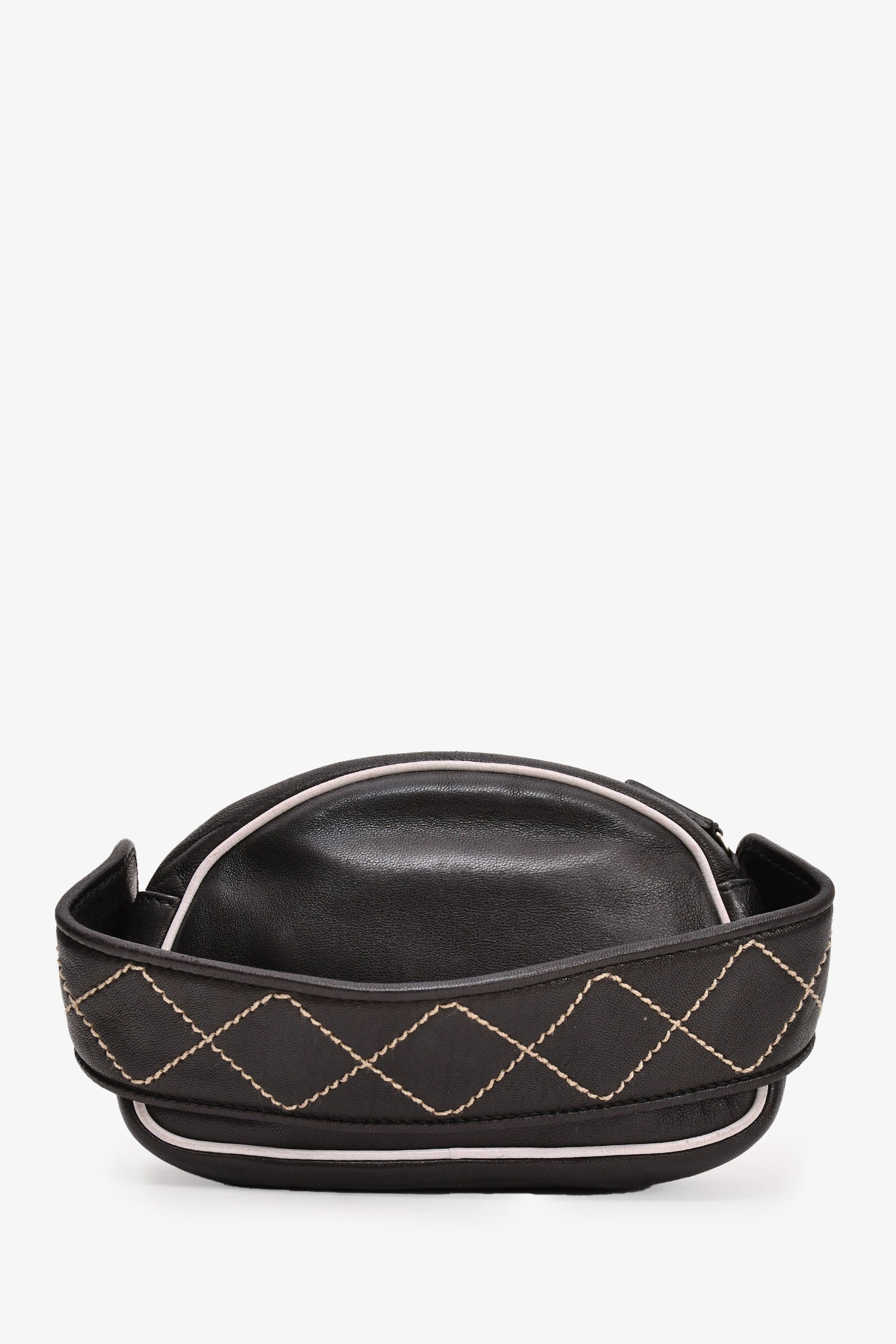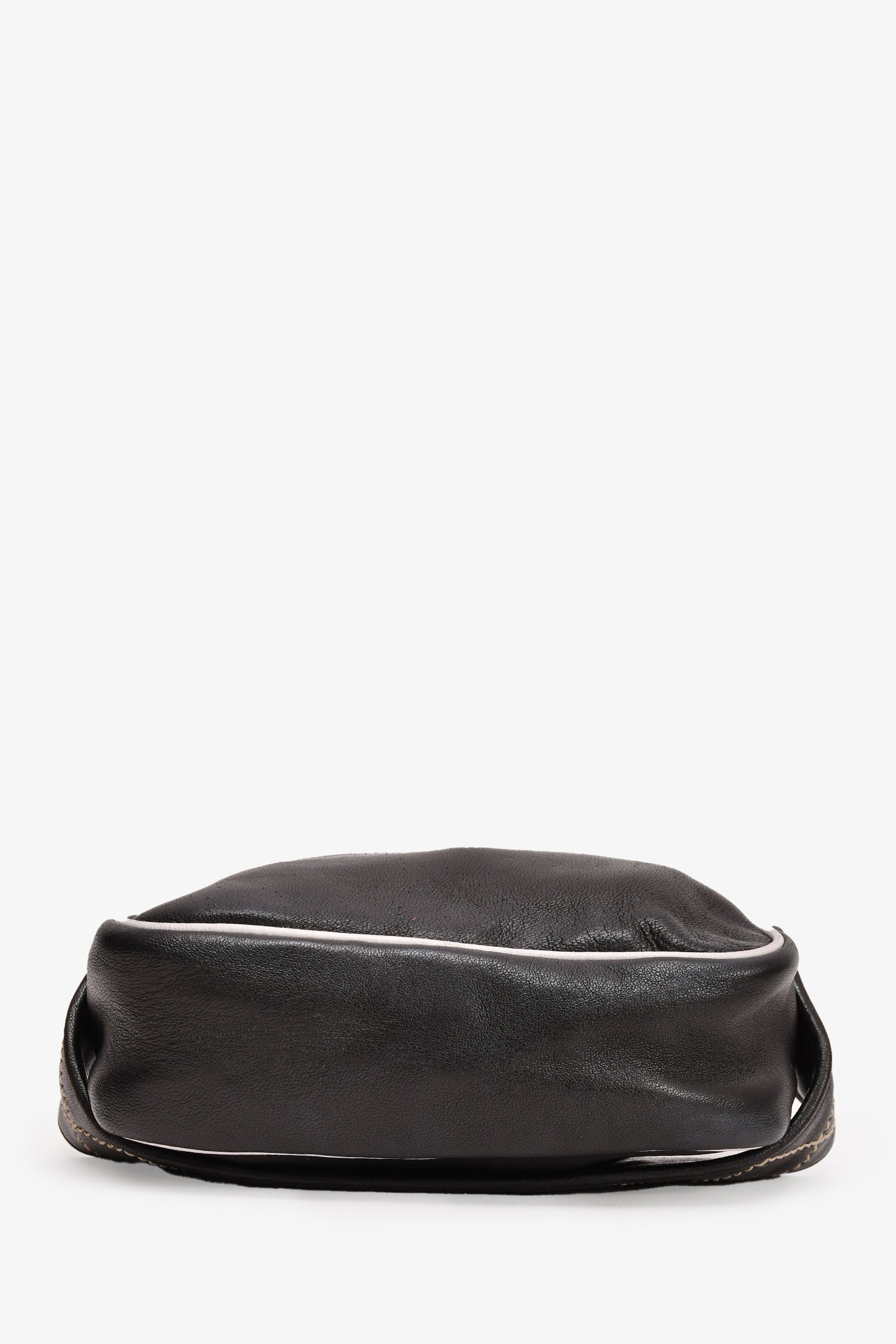 Refresh availabilityPrada Black Leather Trim Detail Pouch. Top zip closure. Tonal logo'd textile interior lining. Open interior. Removable top handle. Silver-tone hardware.