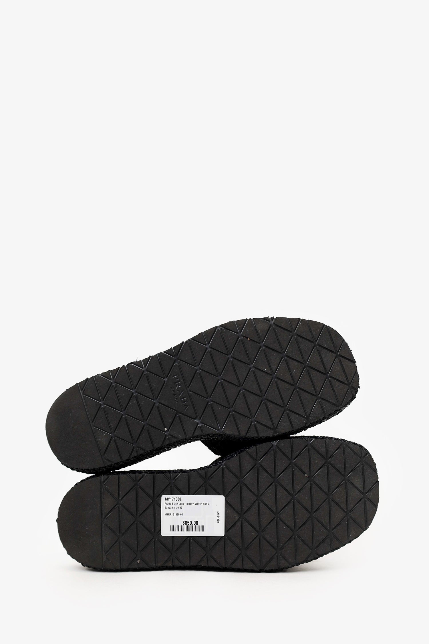 Prada Black Logo-plaque Woven Raffia Sandals Size 39