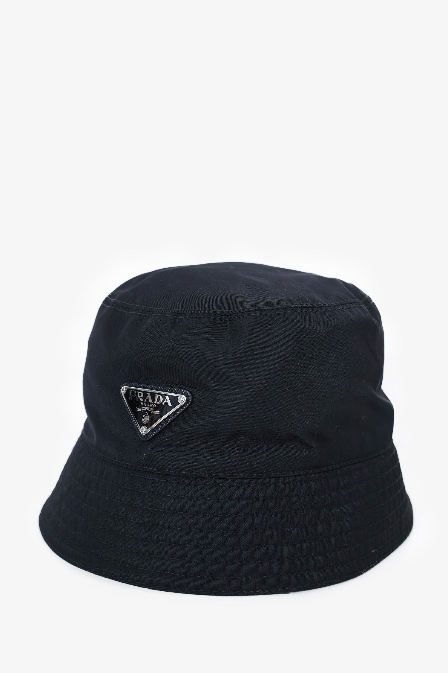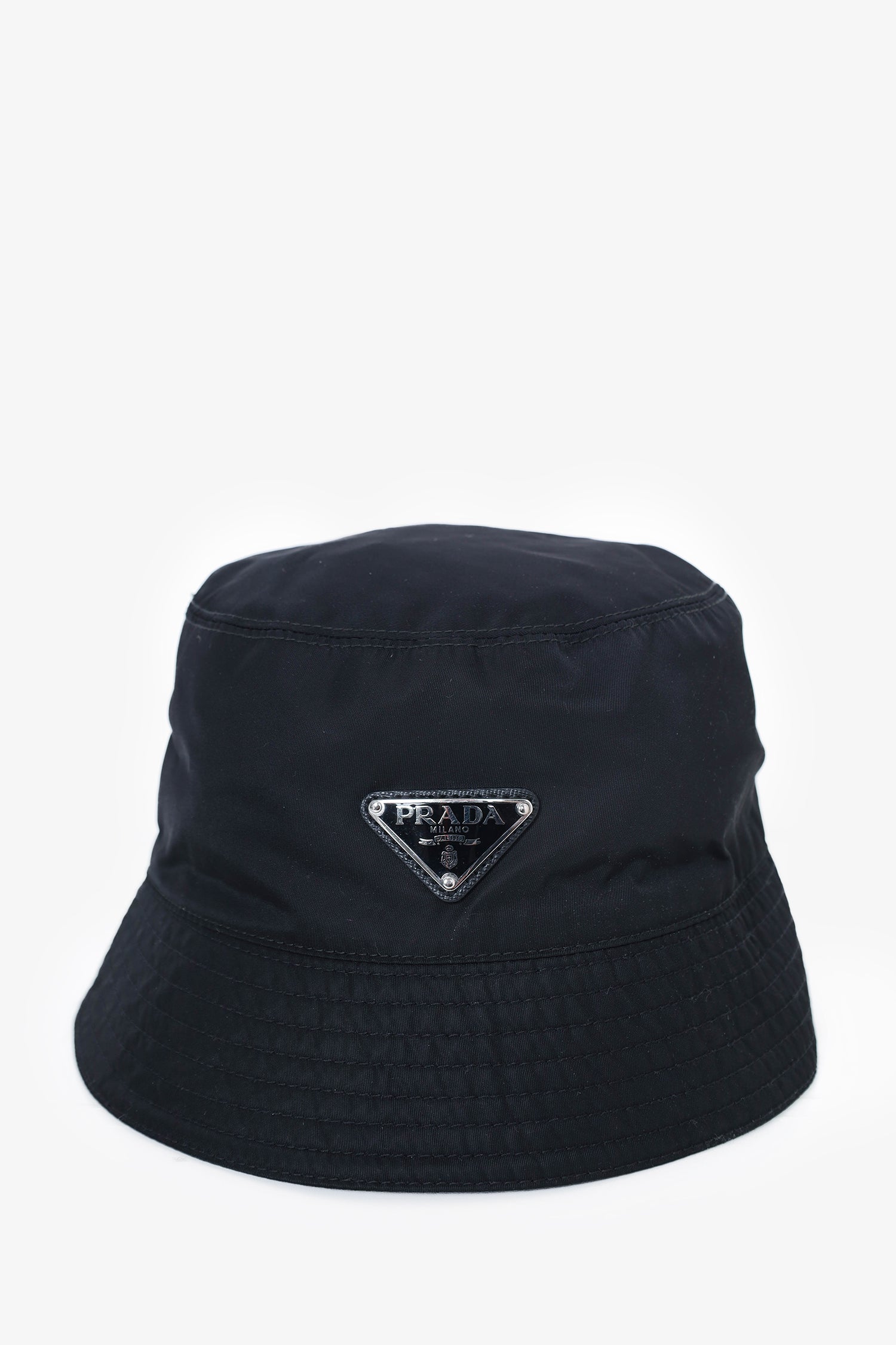 Refresh availabilityPrada Black Nylon Bucket Hat. Lined. Silver-toned hardware. Tonal stitching.
