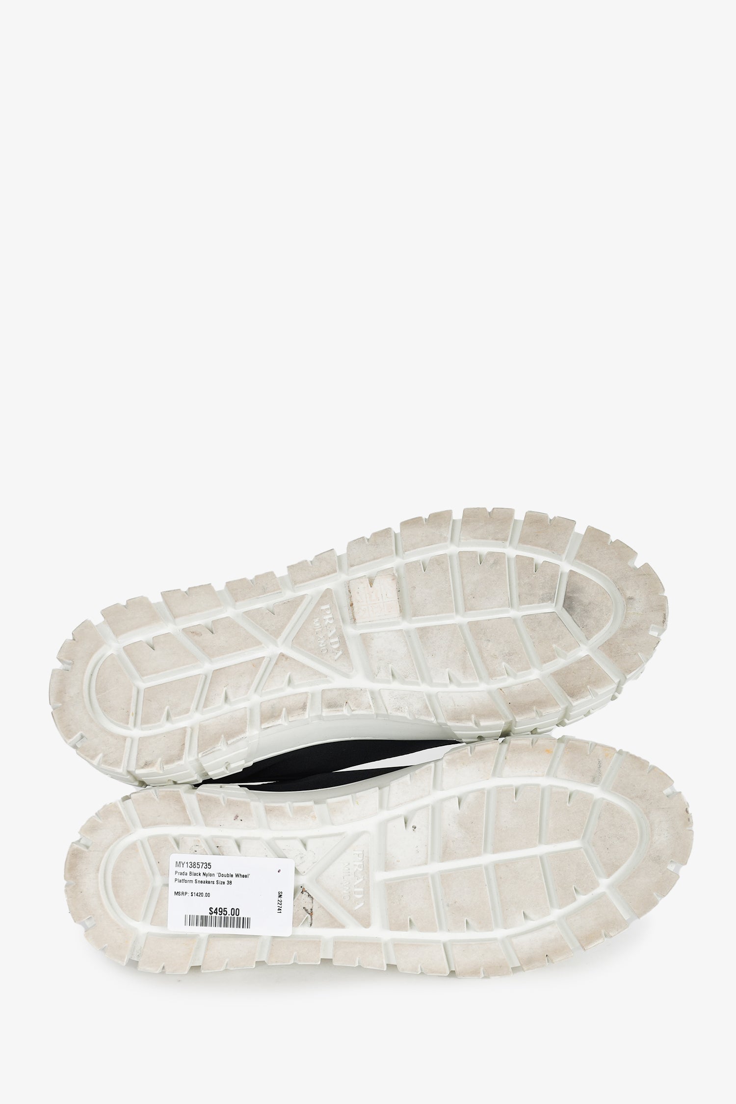 Prada Black Nylon 'Double Wheel' Platform Sneakers Size 38