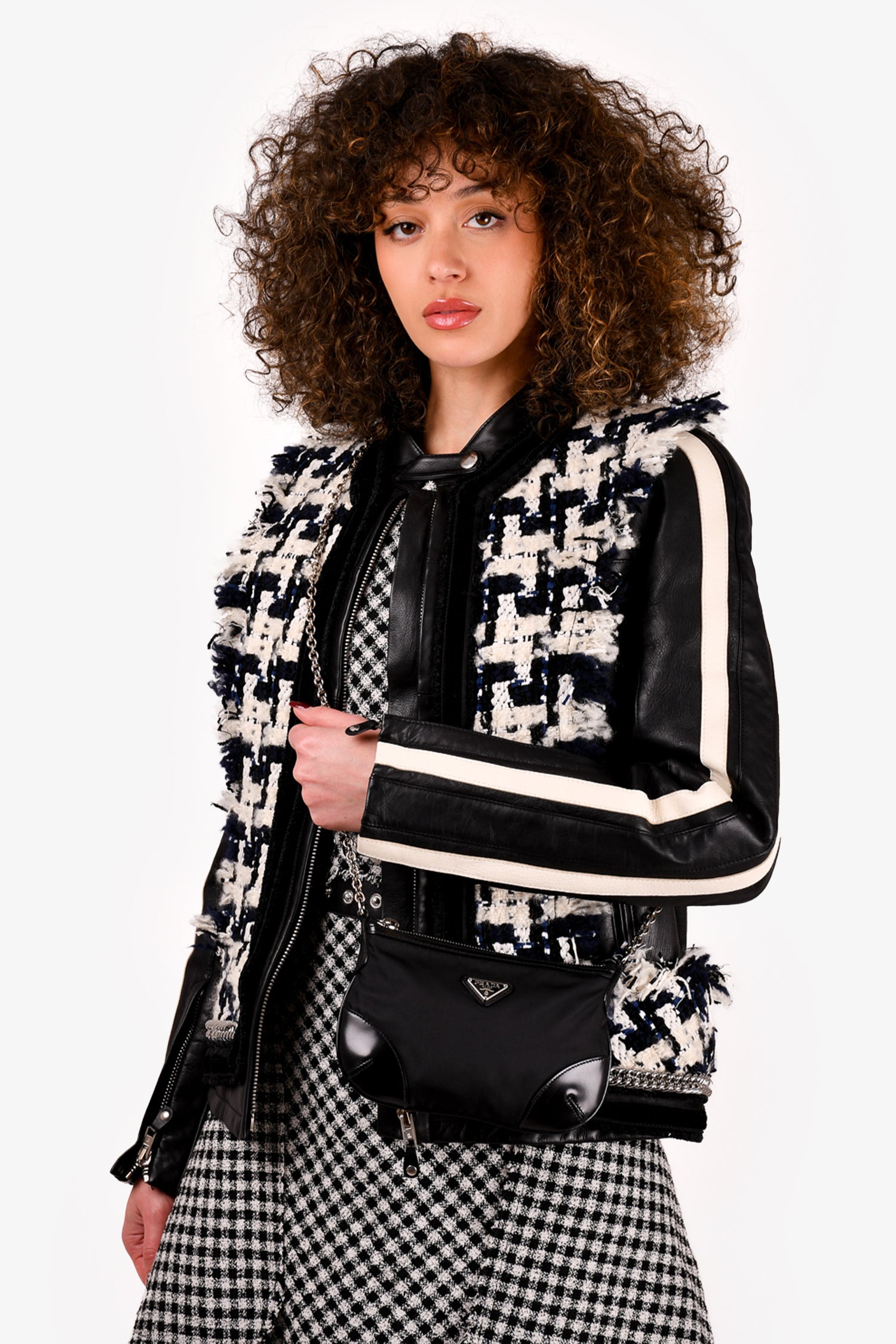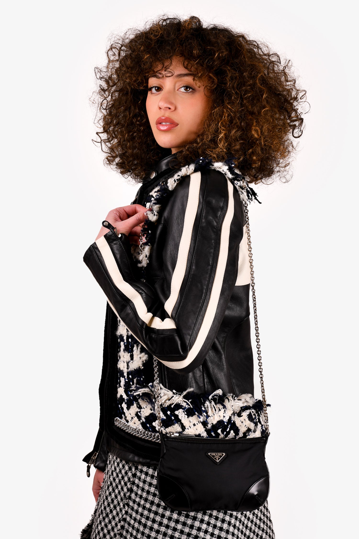 Prada Black Nylon/Leather Trim Silver Chain Crossbody Bag