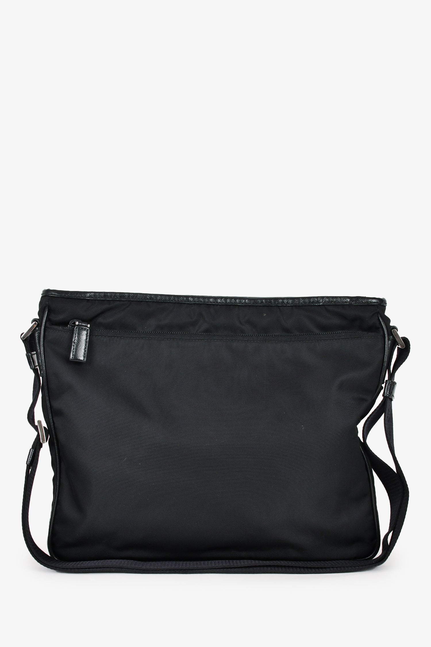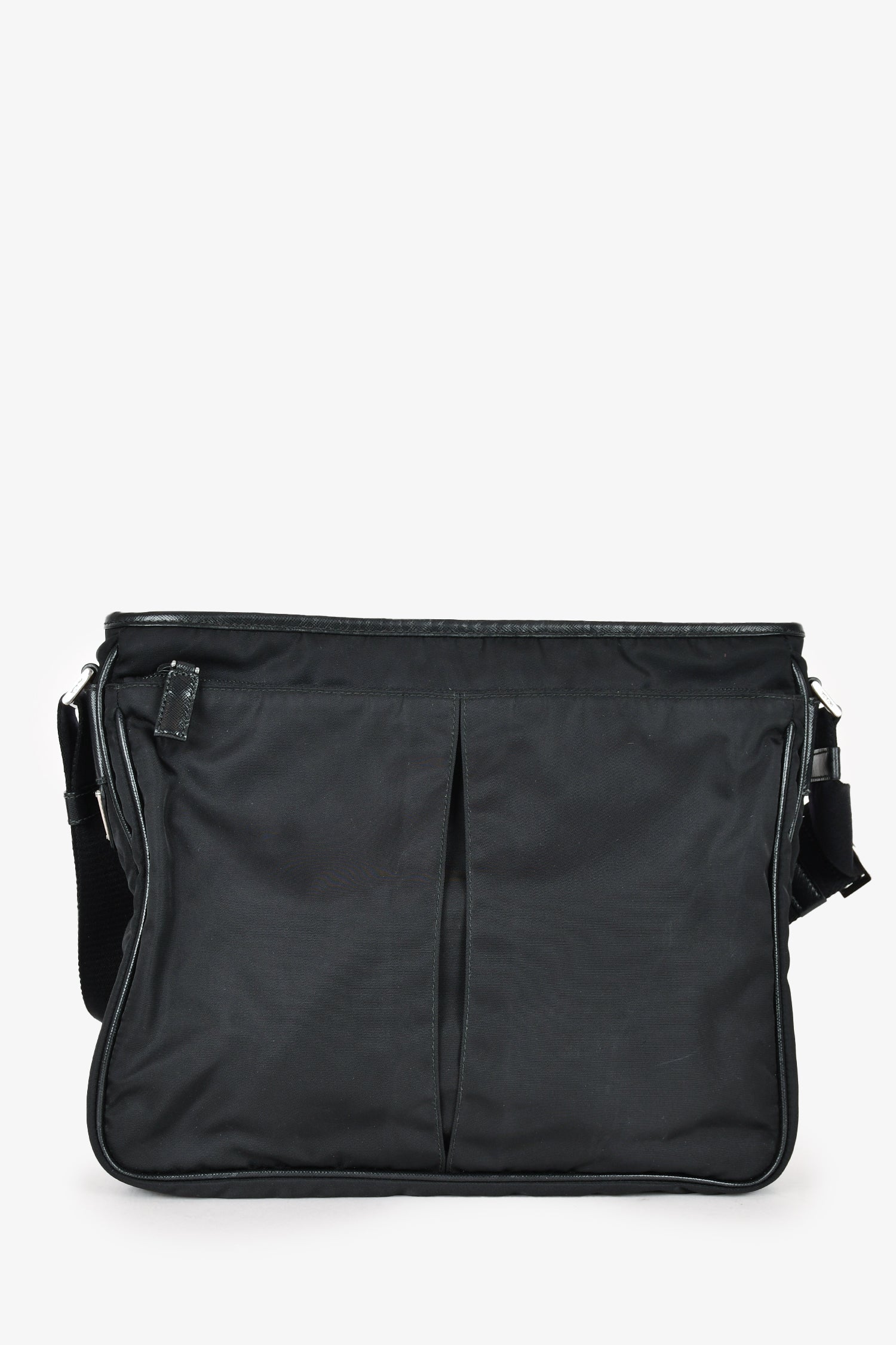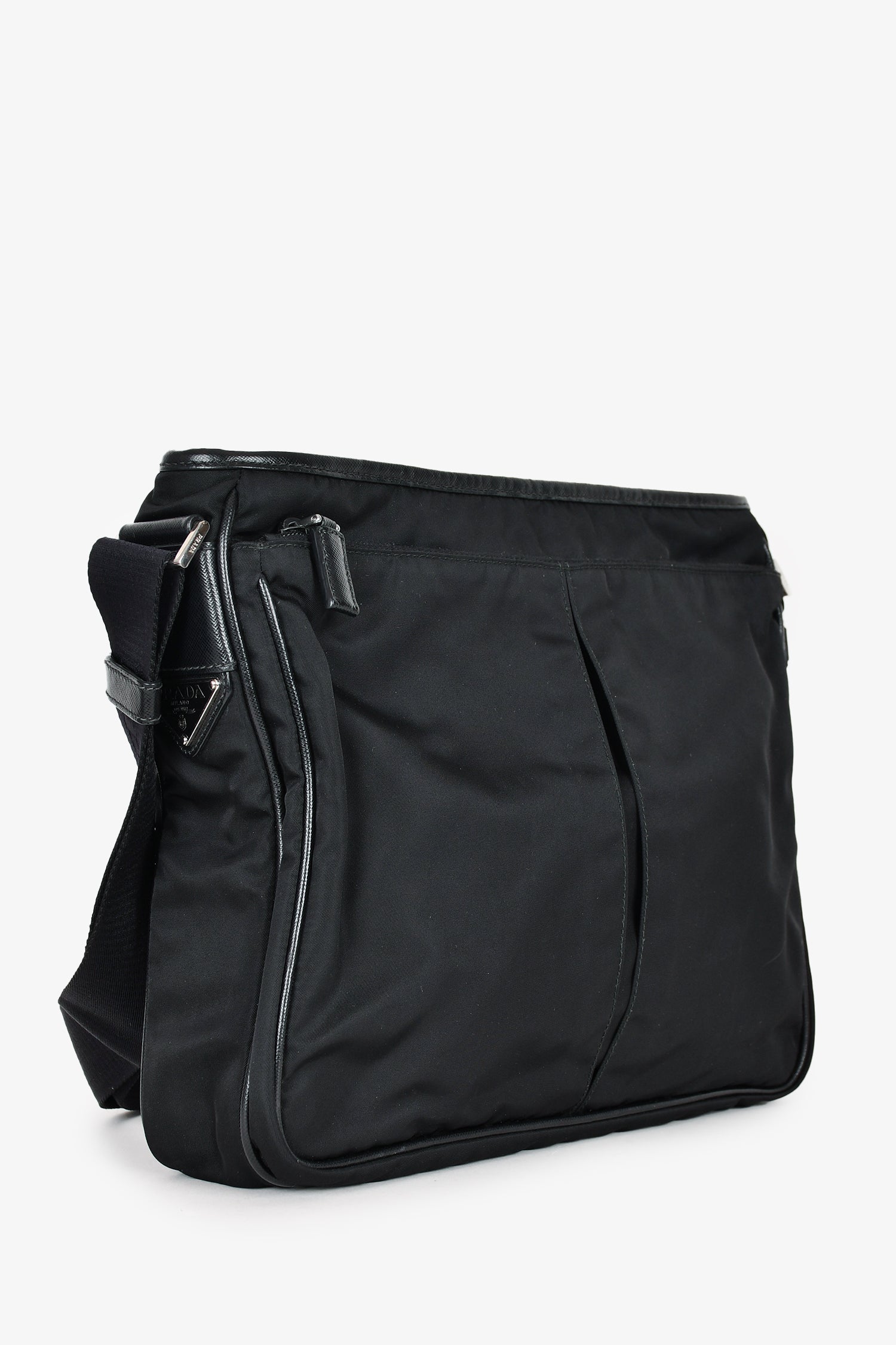 Refresh availabilityPrada Black Nylon Messenger Crossbody Bag. Top zip closure. 1 interior zip pocket. 2 interior slip pocket. 2 exterior zip pockets. Adjustable cross-body strap. Tonal stitching.