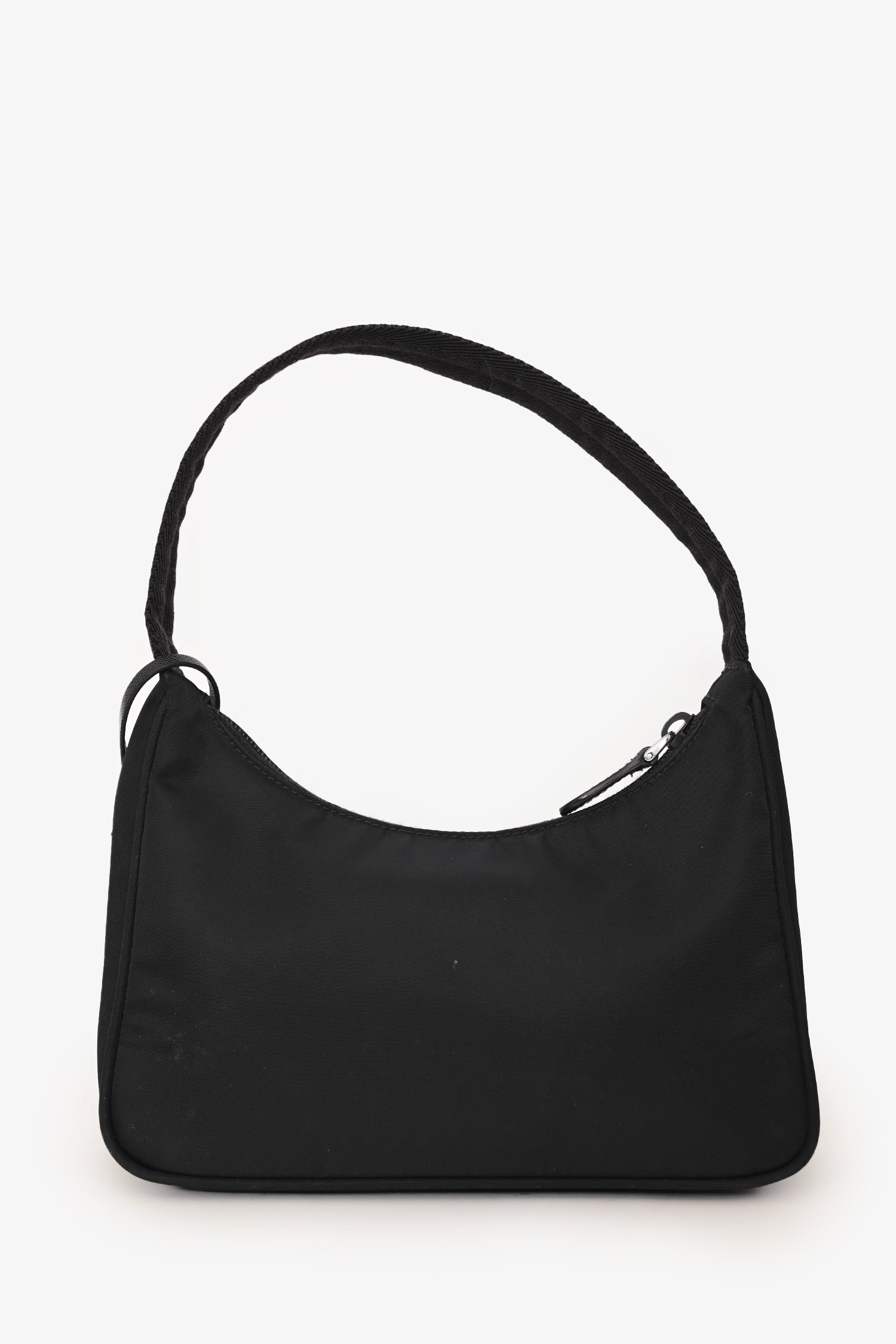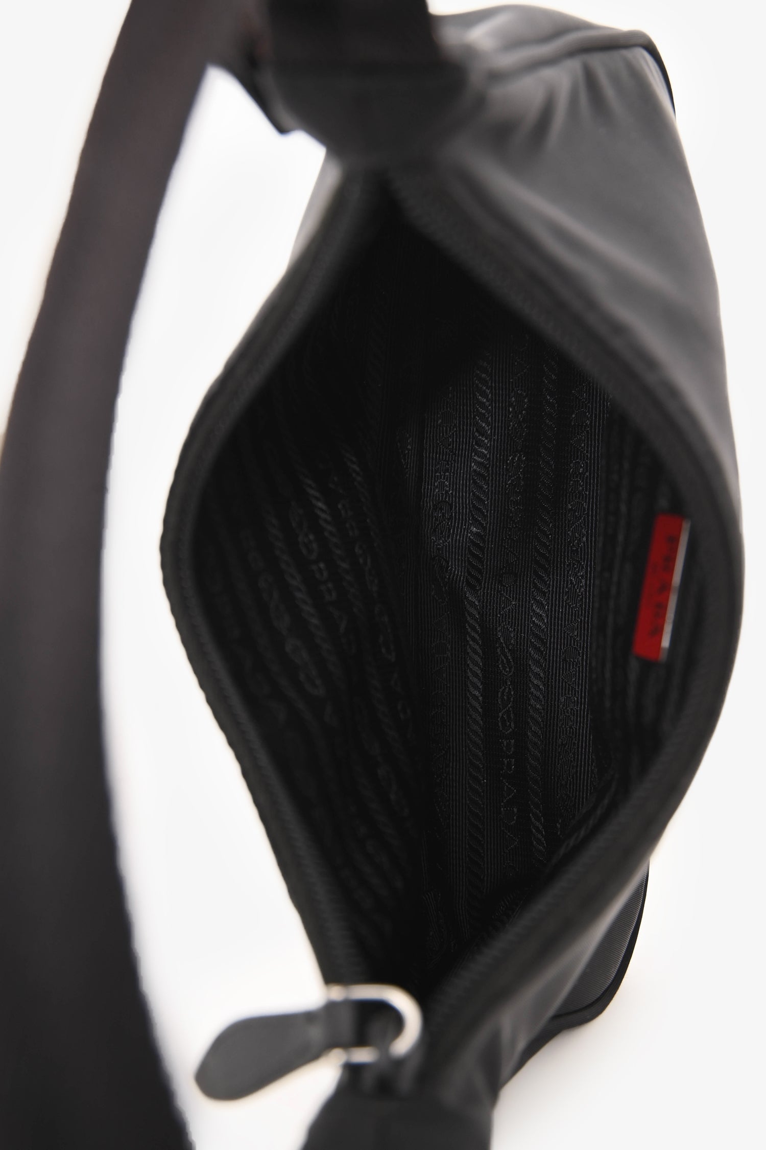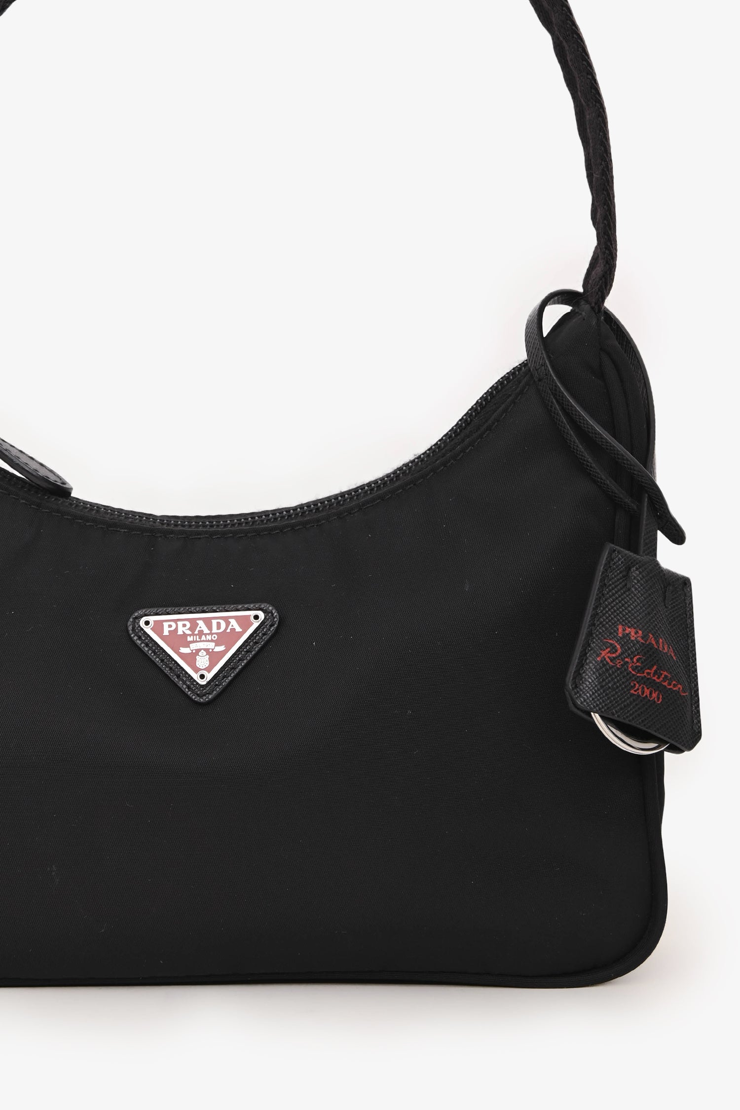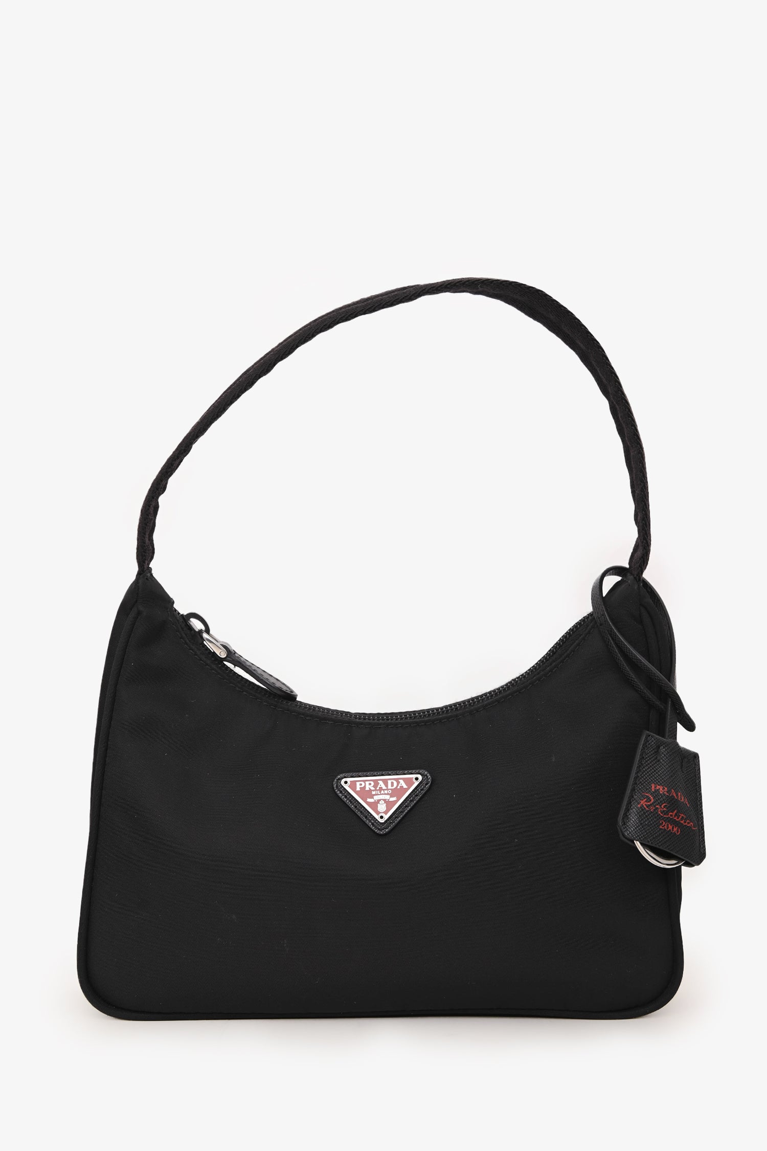 Refresh availabilityPrada Black Nylon Red Logo Re-Edition 2000 Shoulder Bag. Zipped closure. Webbed shoulder strap. Lined nylon interior. Comes with a clochette and keyring. Silver-tone hardware. Tonal stitching.