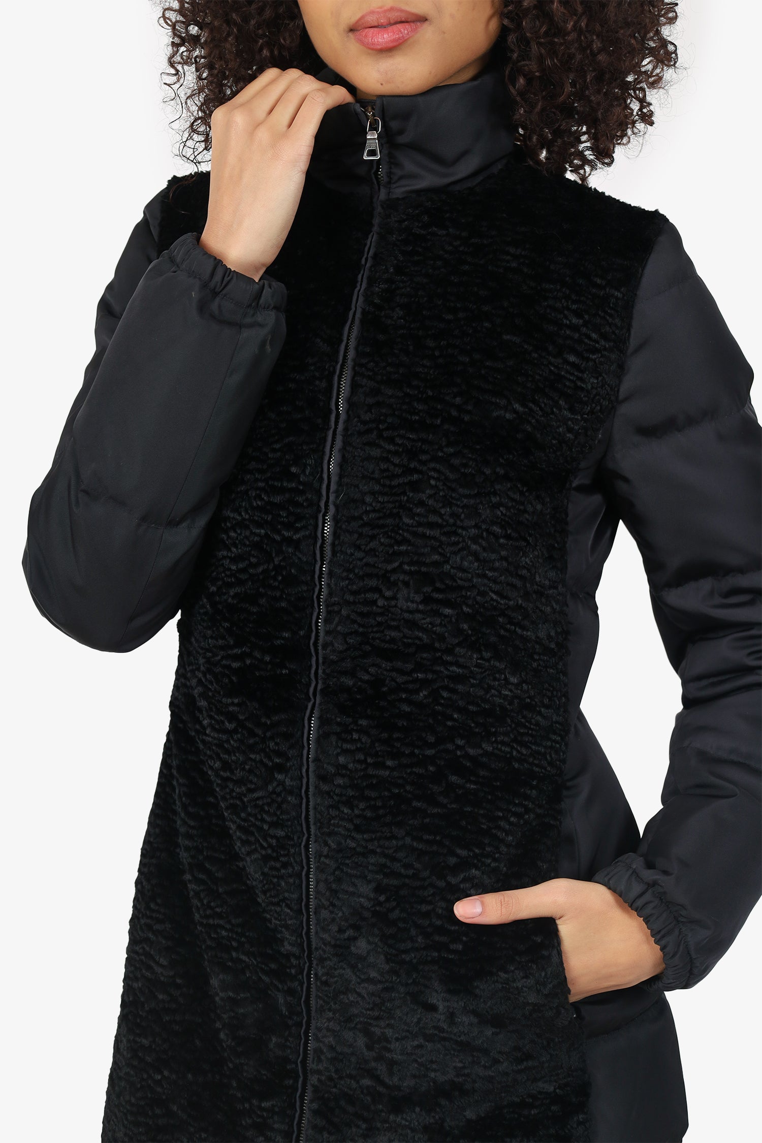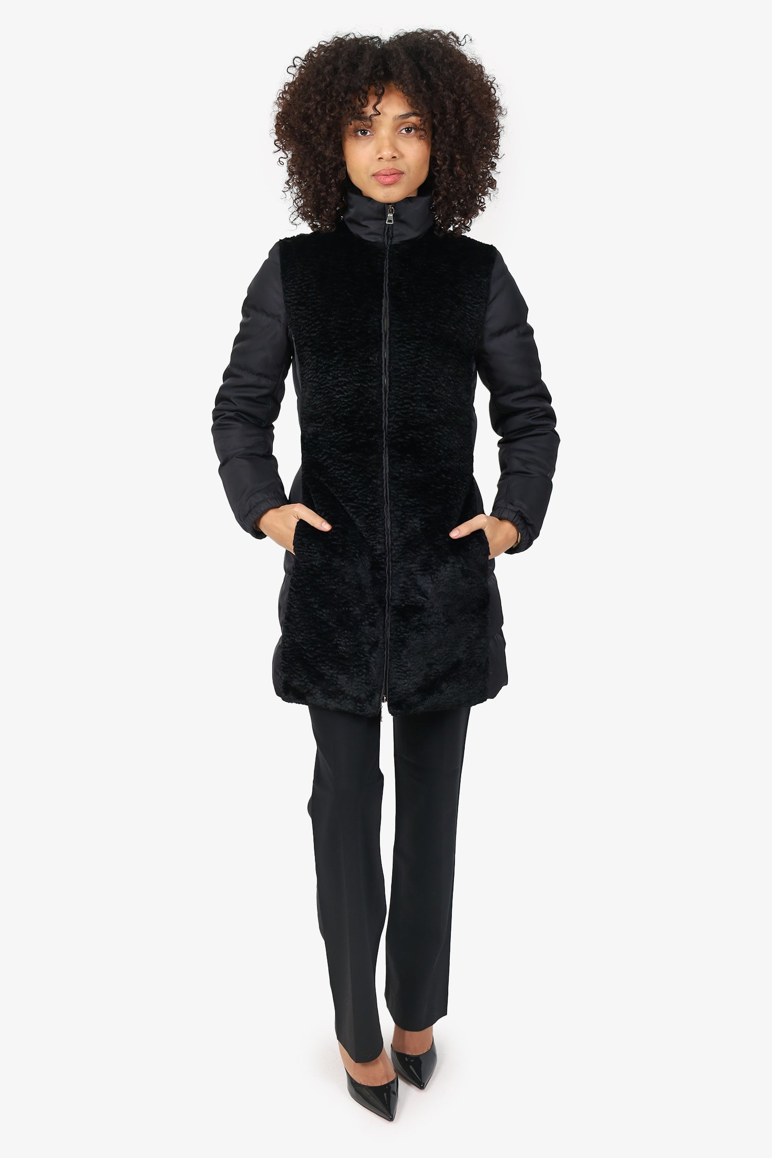 Prada Black Nylon/Shearling Quilted Zip-up Puffer Jacket Size 38