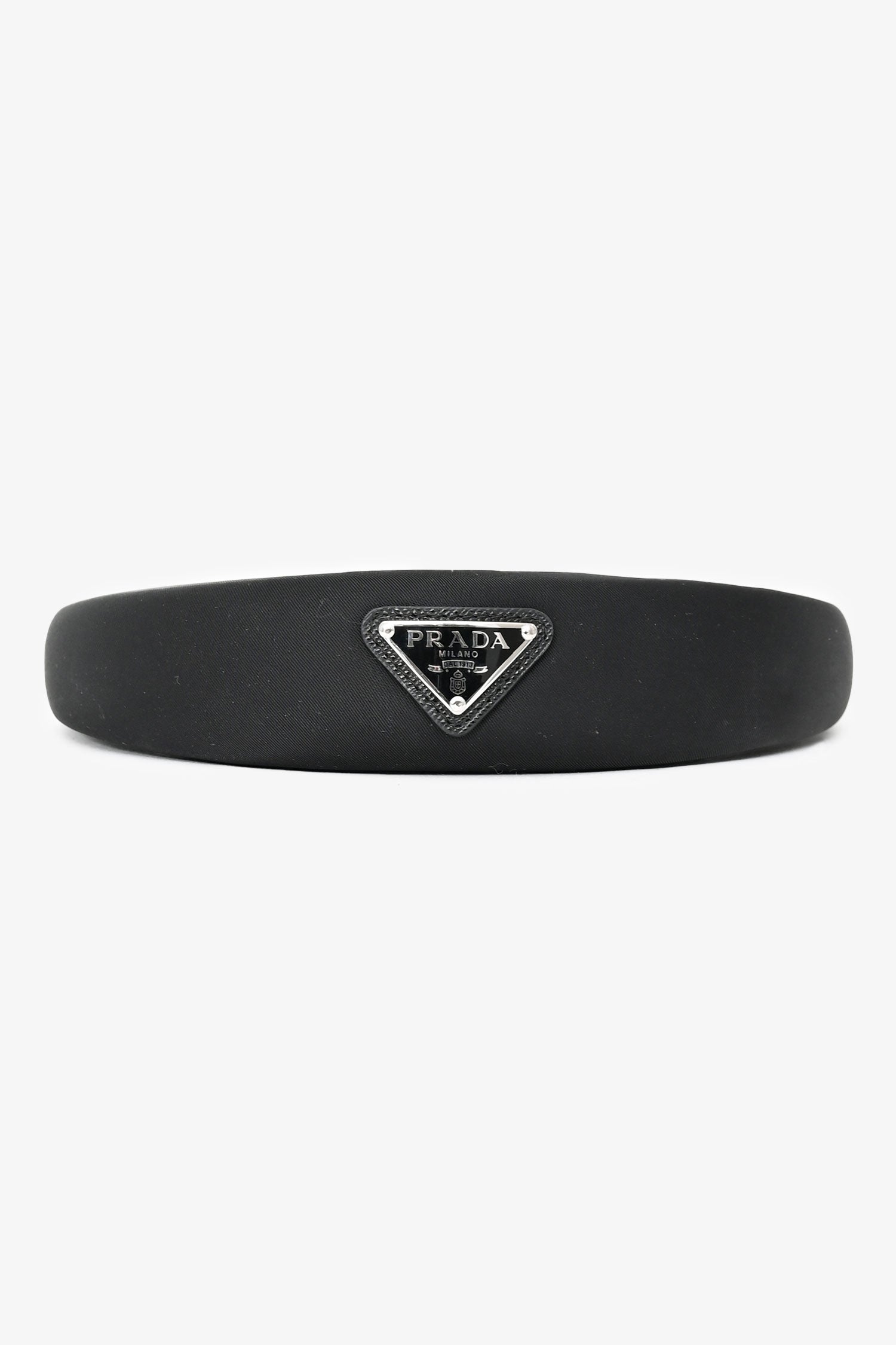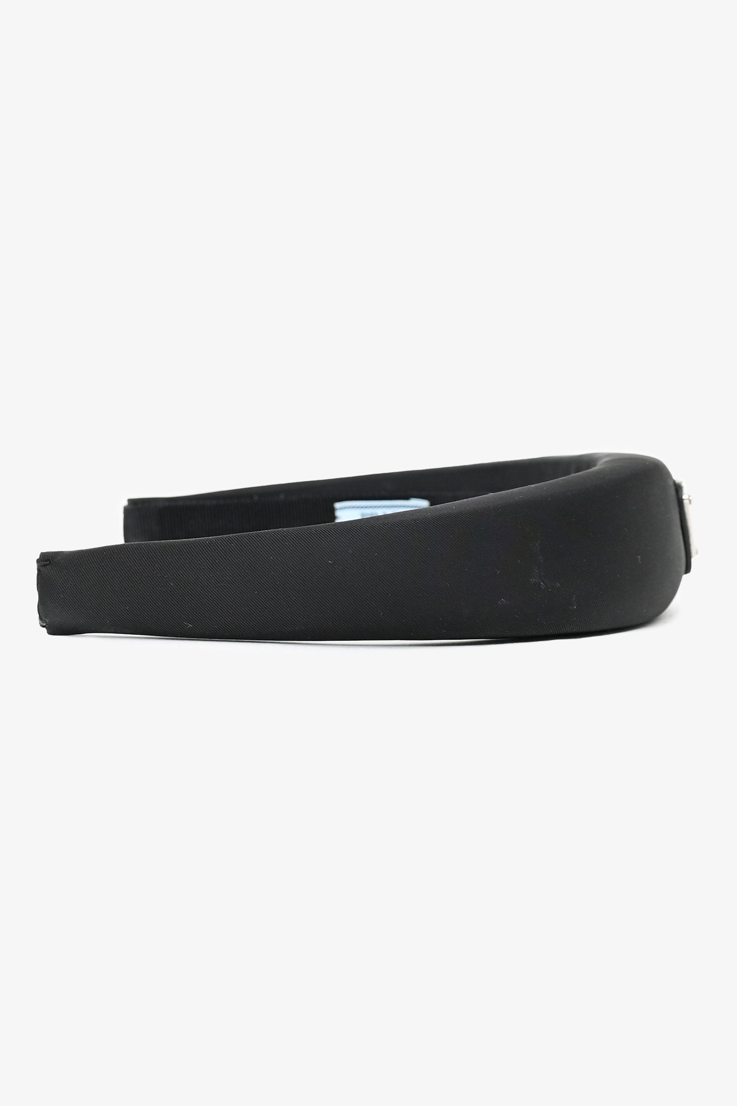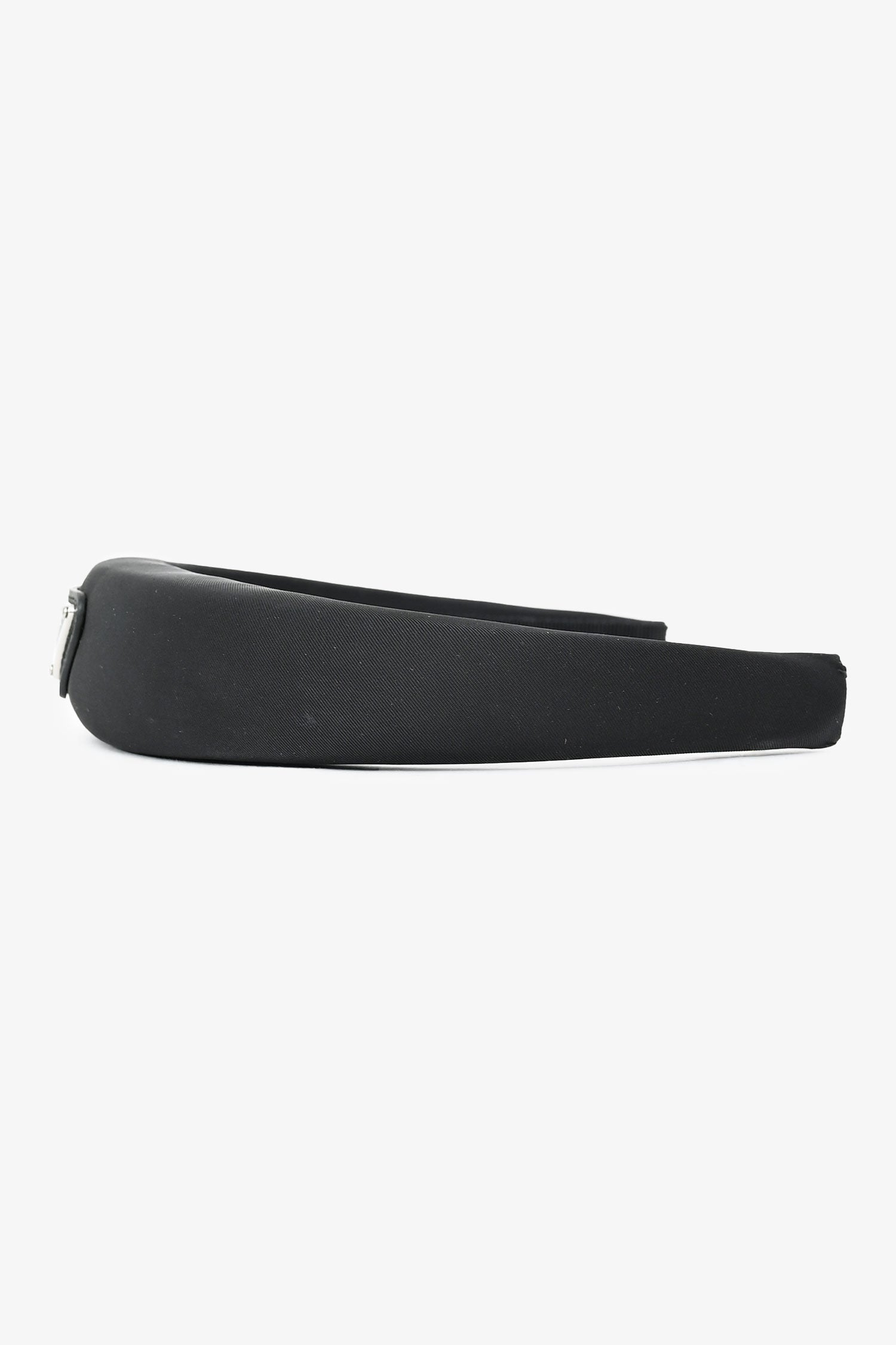 Refresh availabilityPrada Black Satin Headband. Silver-tone hardware. Tonal stitching.