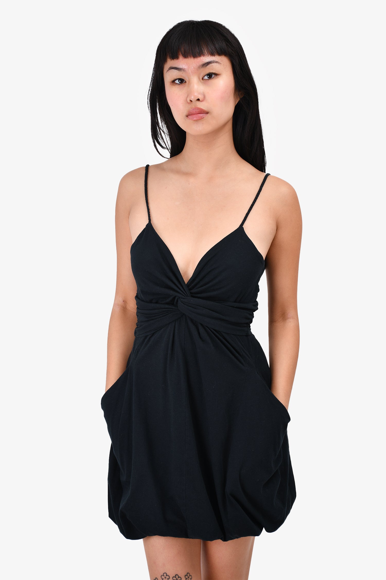 Refresh availabilityPrada Black Strappy V-Neck Bubble Hem Mini Dress. Rear zip closure. Front pockets.