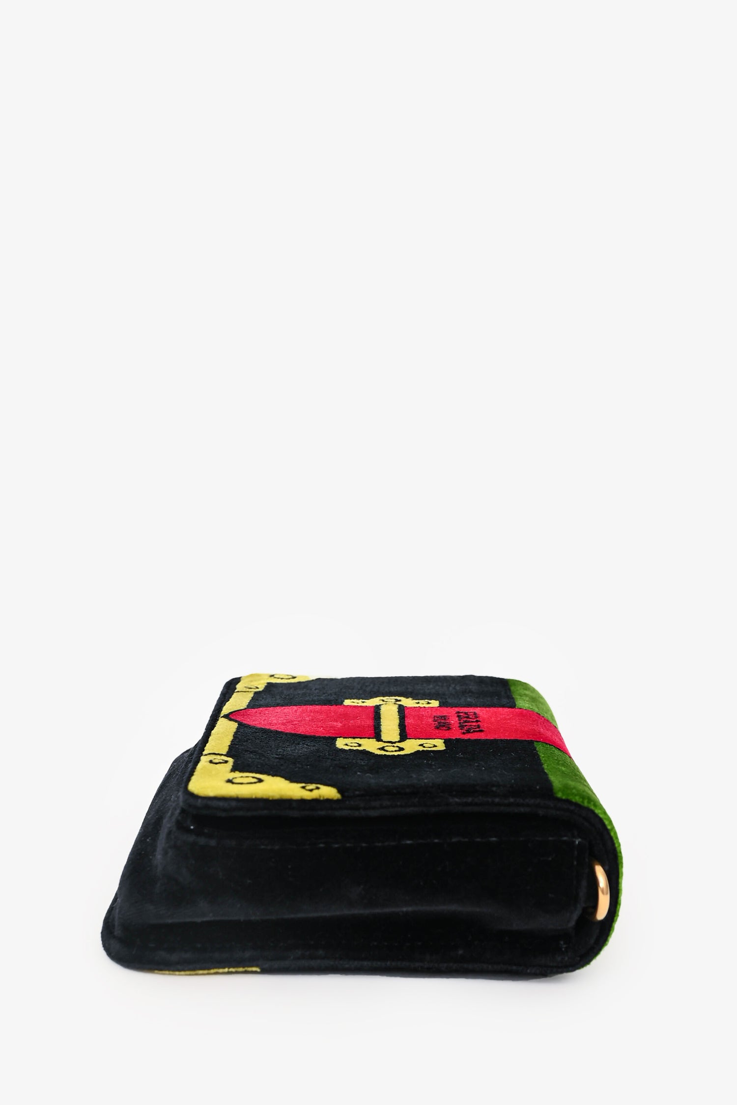 Prada Black Velvet Cahier Shoulder/Belt Bag with Chain