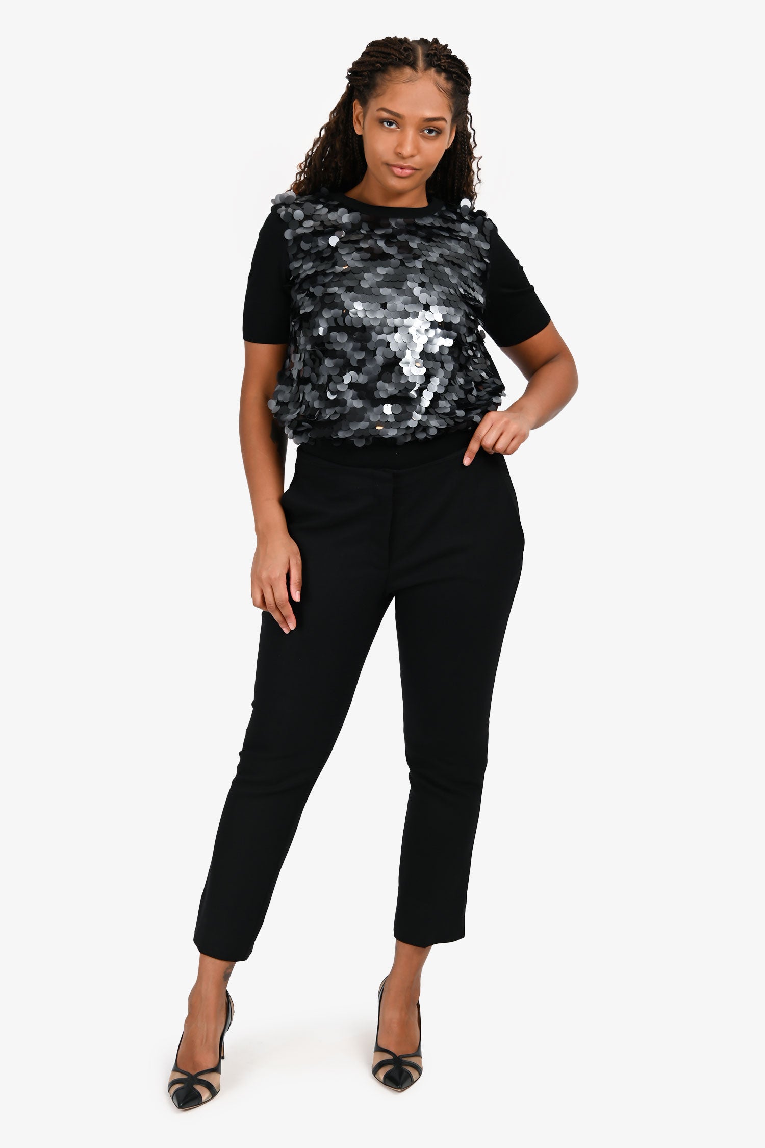 Refresh availabilityPrada Black Wool Straight Leg Trousers. Pull-on. Front zip fly and hook clasp closure. 2 side slip pockets. Slits at the hem. Silver-tone hardware. Tonal stitching.