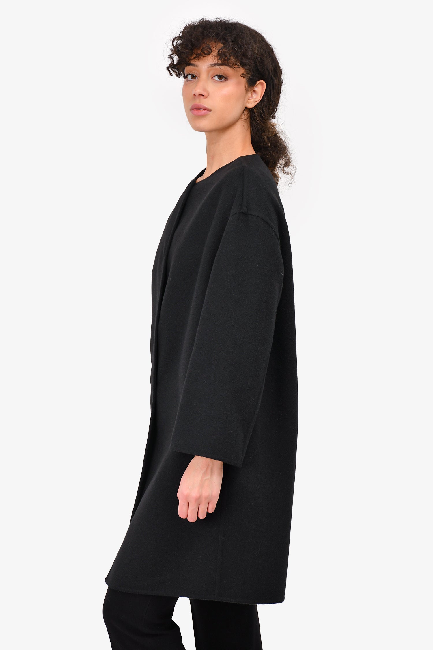 Refresh availabilityPrada Black Wool/Rabbit/Cashmere Blend Coat. Front snap closures. Unlined interior. Pockets on the seams. Tonal stitching.