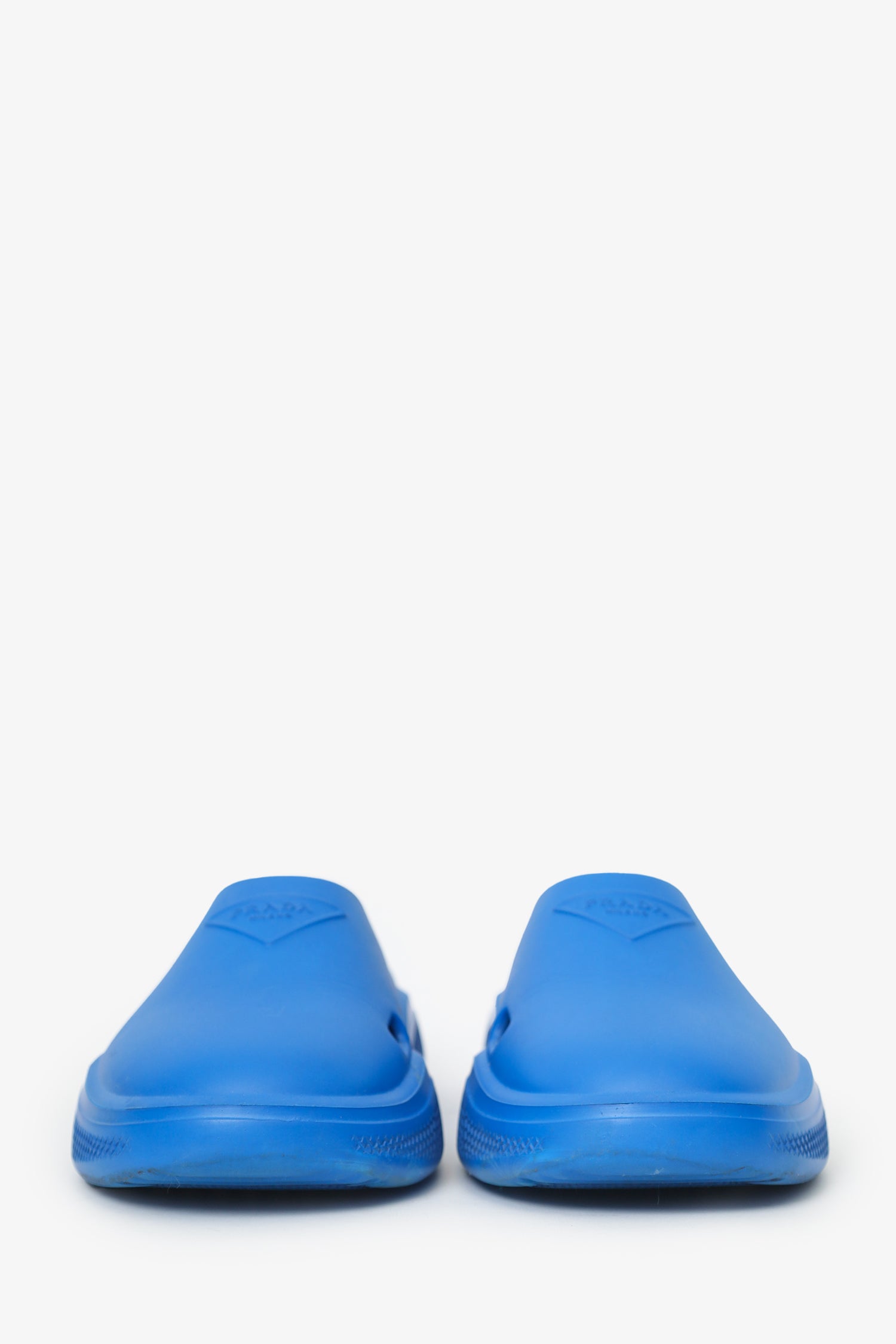Prada Blue Rubber Mellow Logo-embellished Slides Size 41 Mens