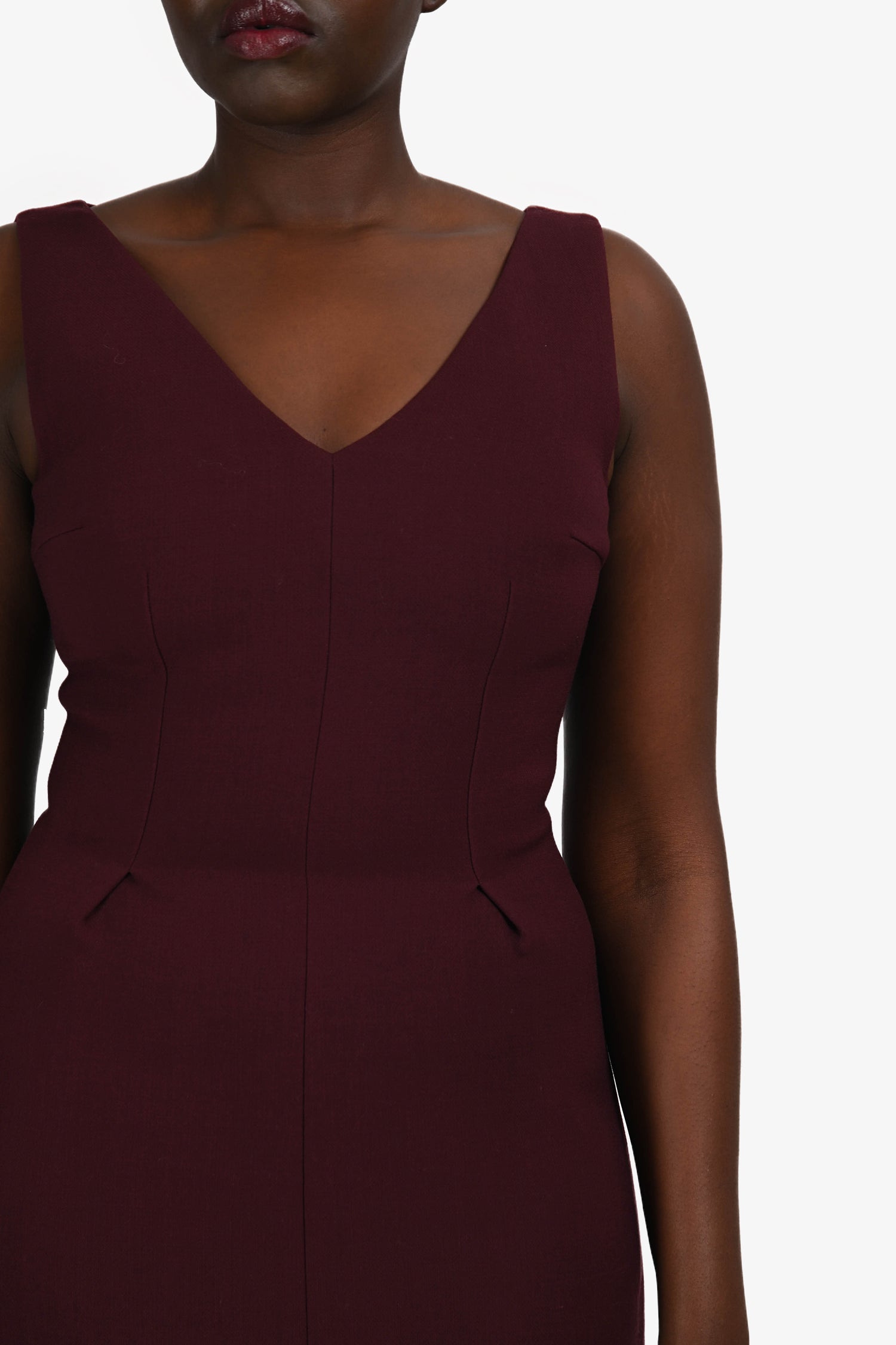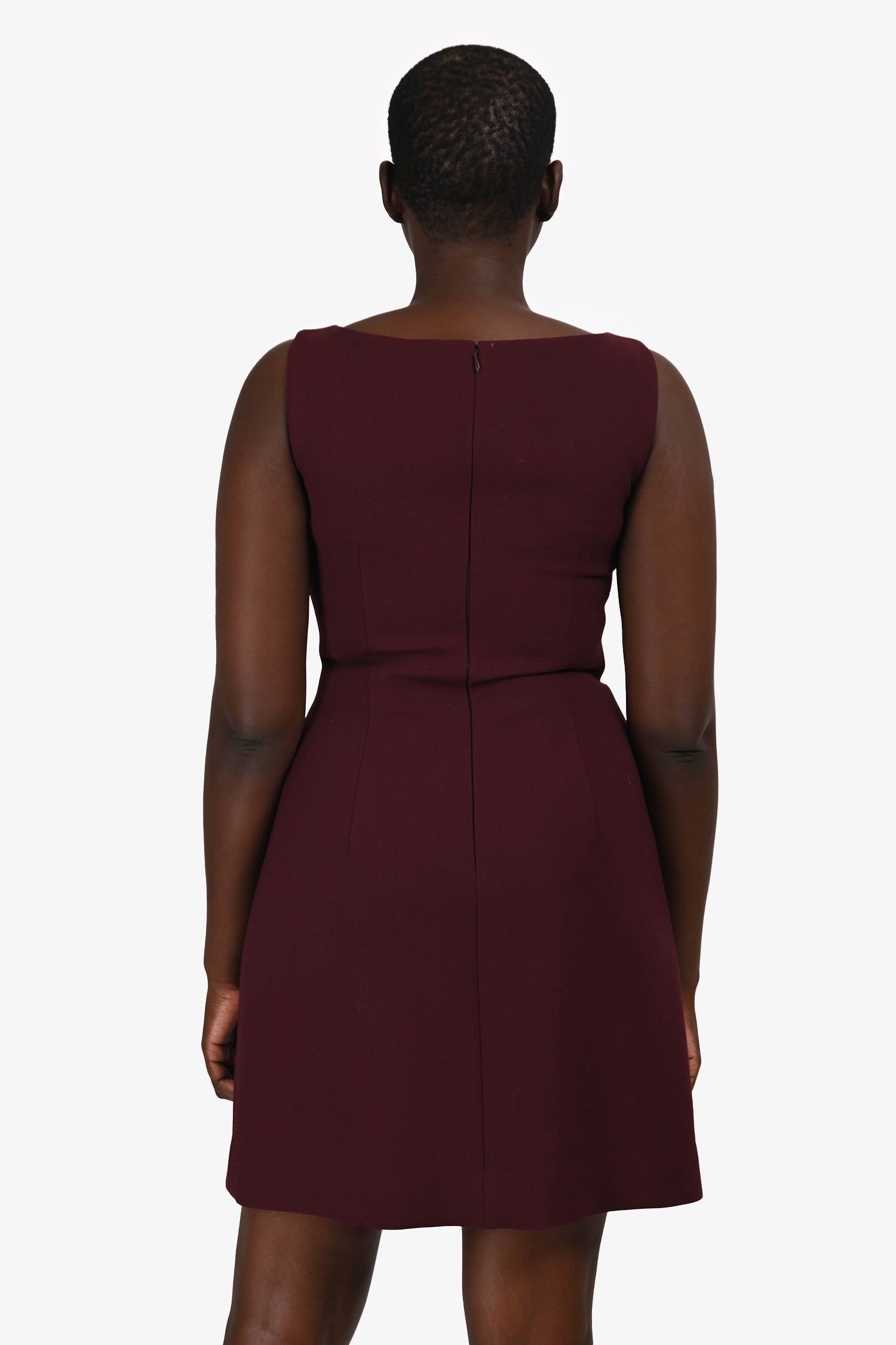 Prada Burgundy Wool Pleated Sleeveless Mini Dress Size 42