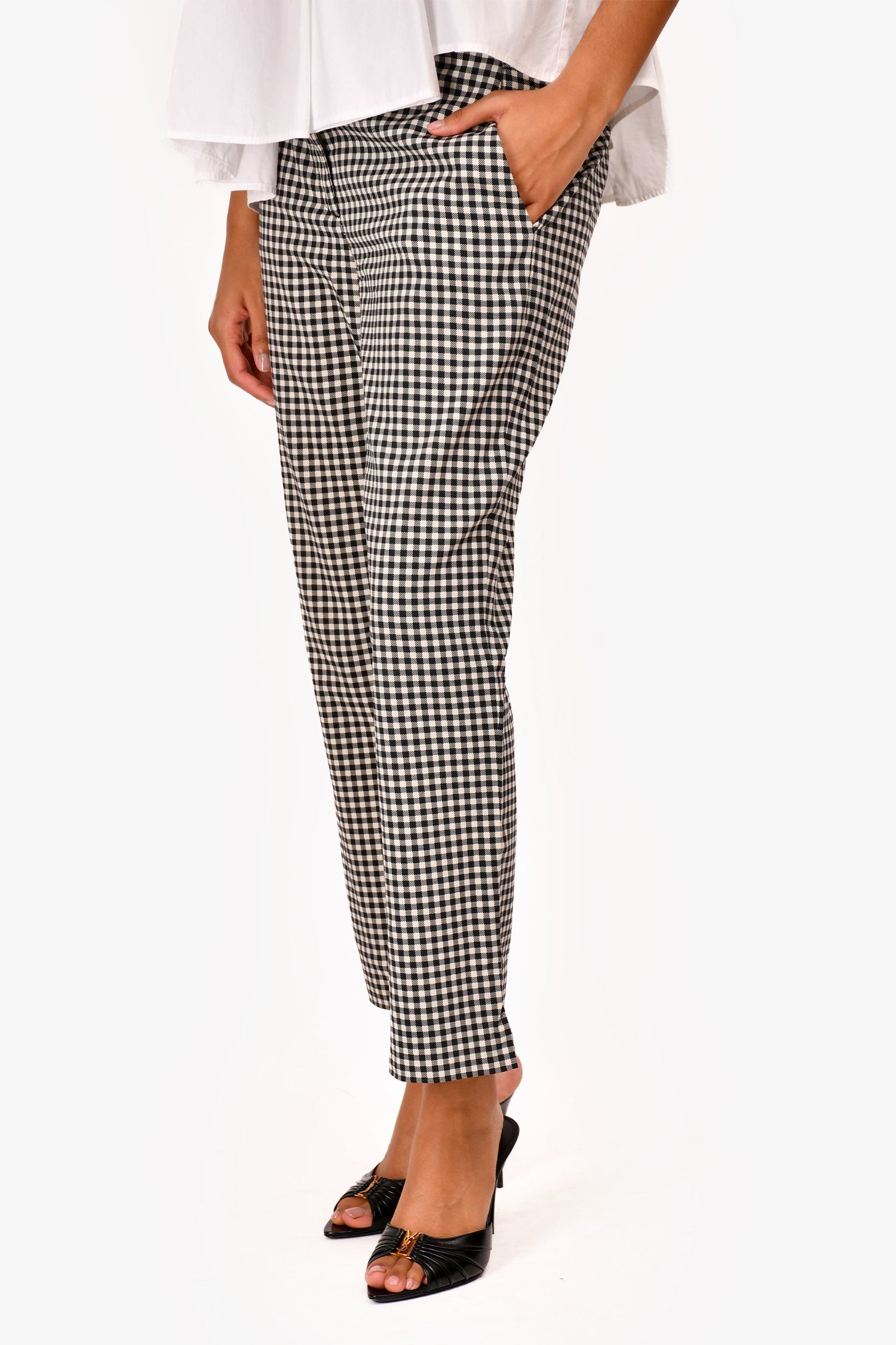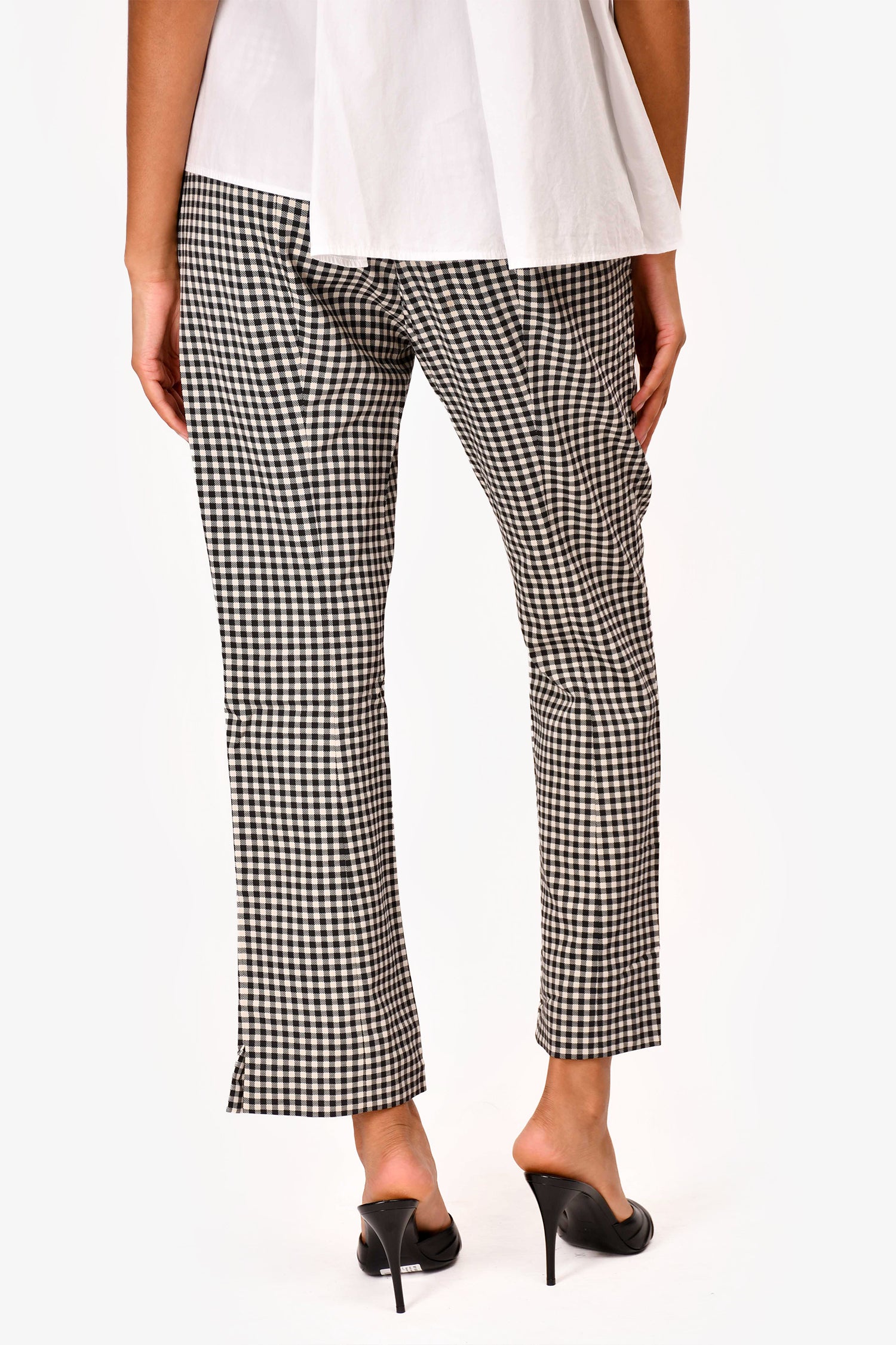 Refresh availabilityPrada Cream/Black Gingham Virgin Wool Cropped Pants. Front zip closure. Side slip pockets. Tonal stitching.