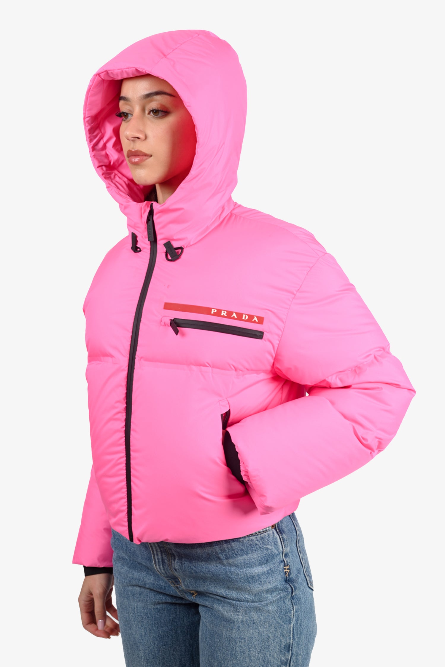 Prada Hot Pink Nylon Down Cropped Technical Jacket Size XS
