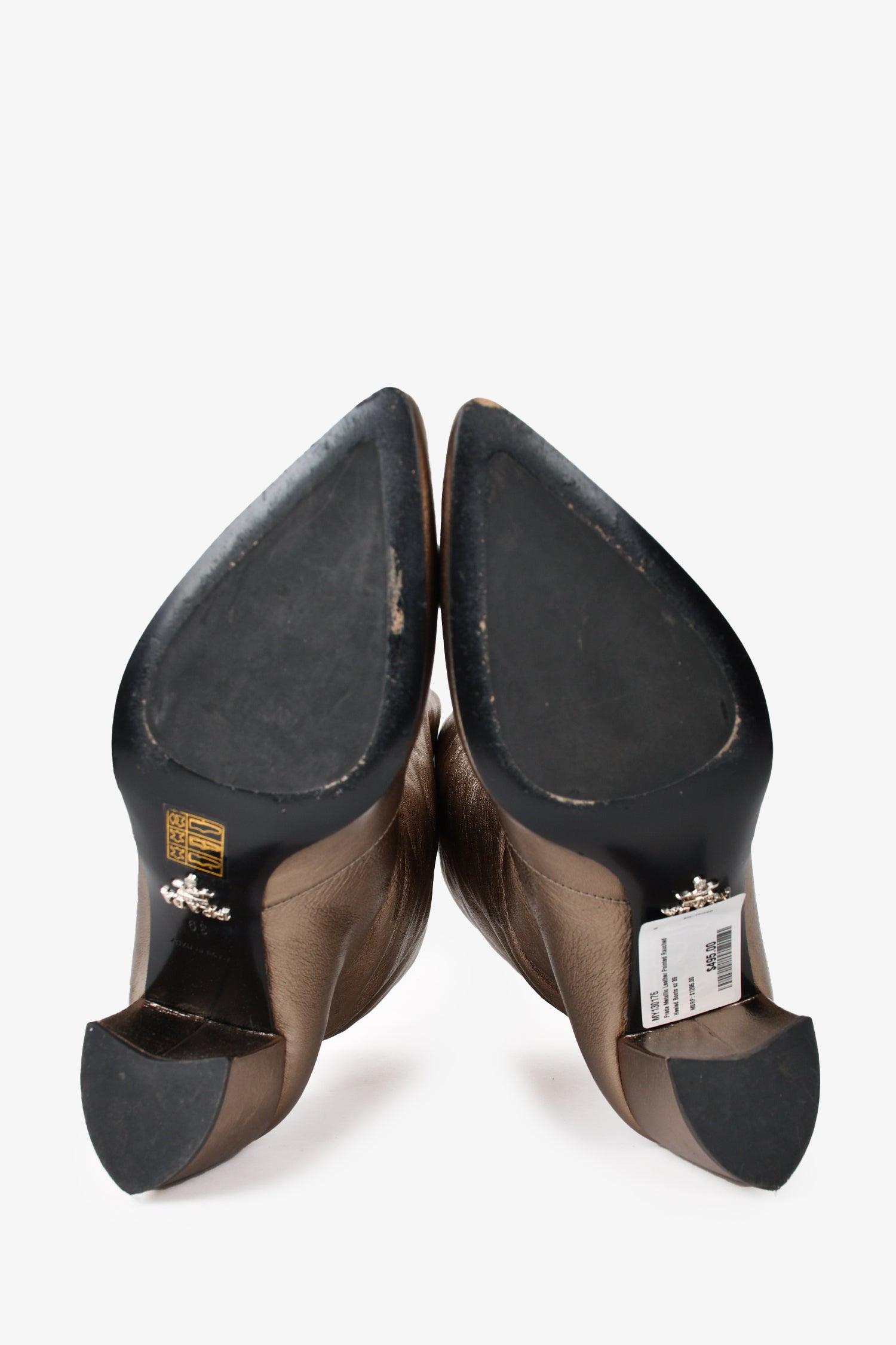 Prada Metallic Leather Pointed Ruched Heeled Boots Size 39