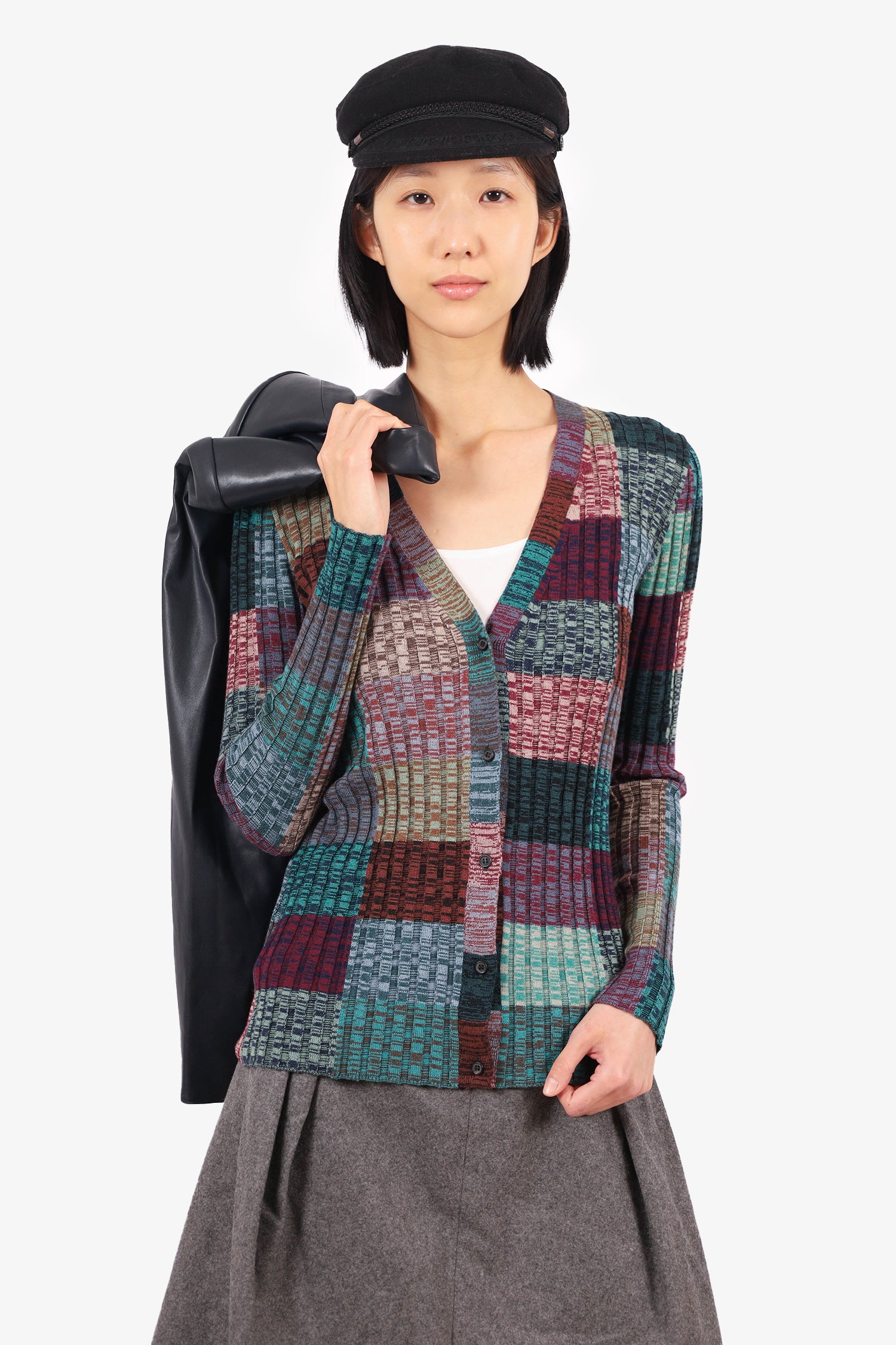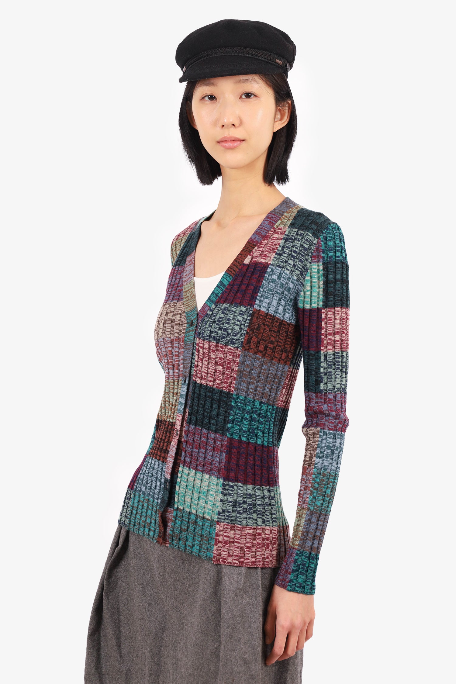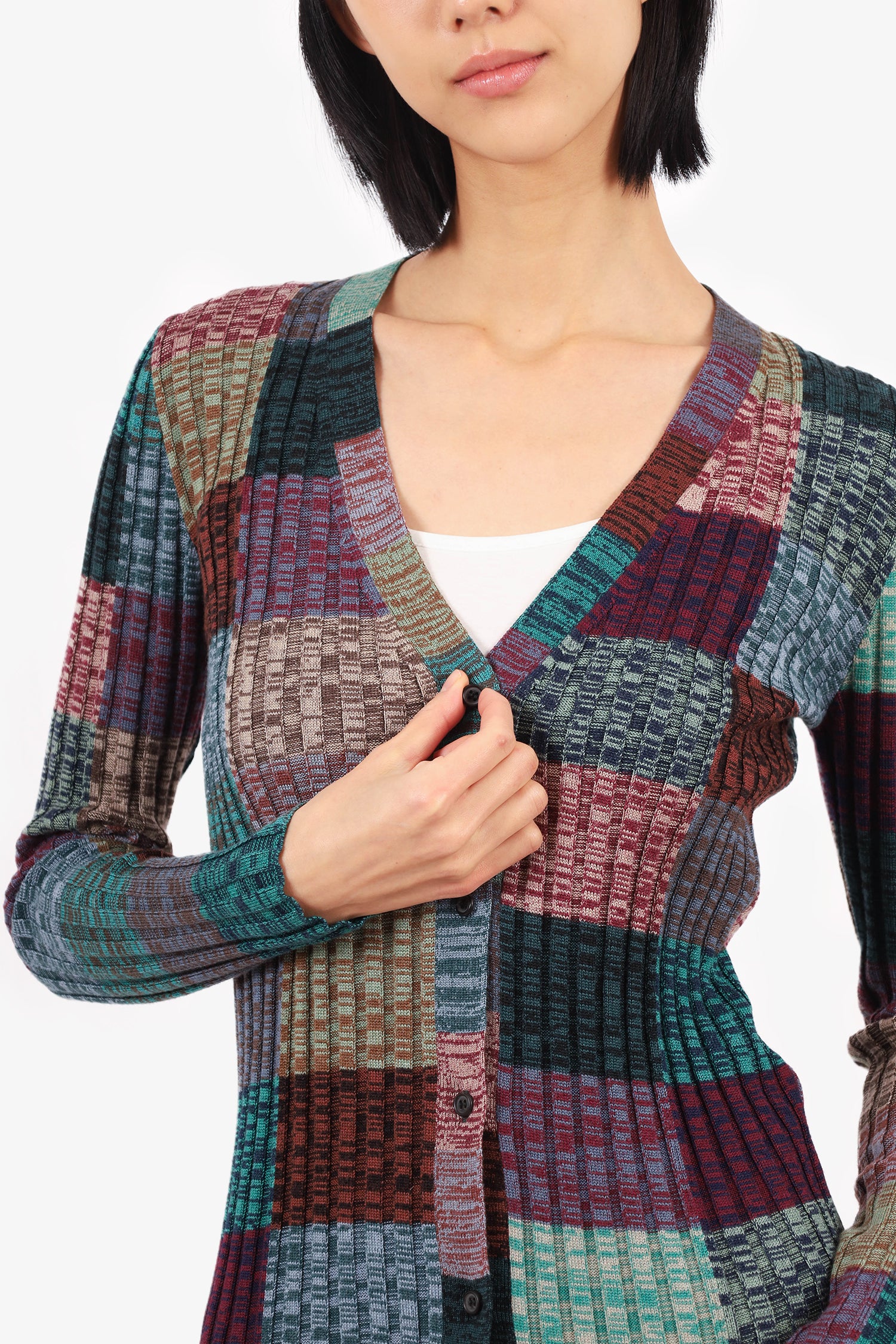 Refresh availabilityPrada Multicolour Wool Ribbed Stripped Long-Sleeve Cardigan. Front button closure. V-neckline. Tonal stitching.