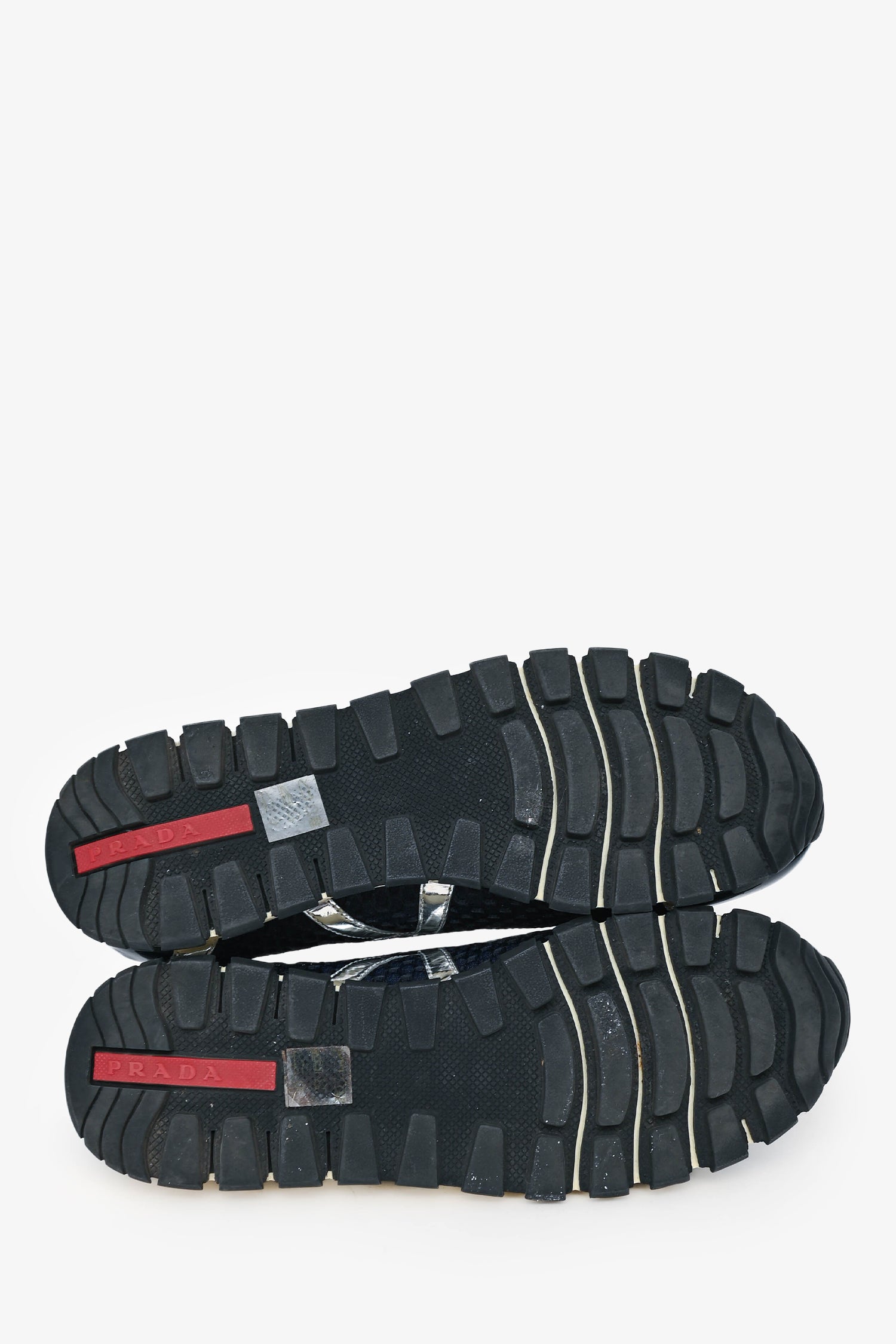 Prada Navy/Silver Metallic Leather Sneaker Pumps Size 41
