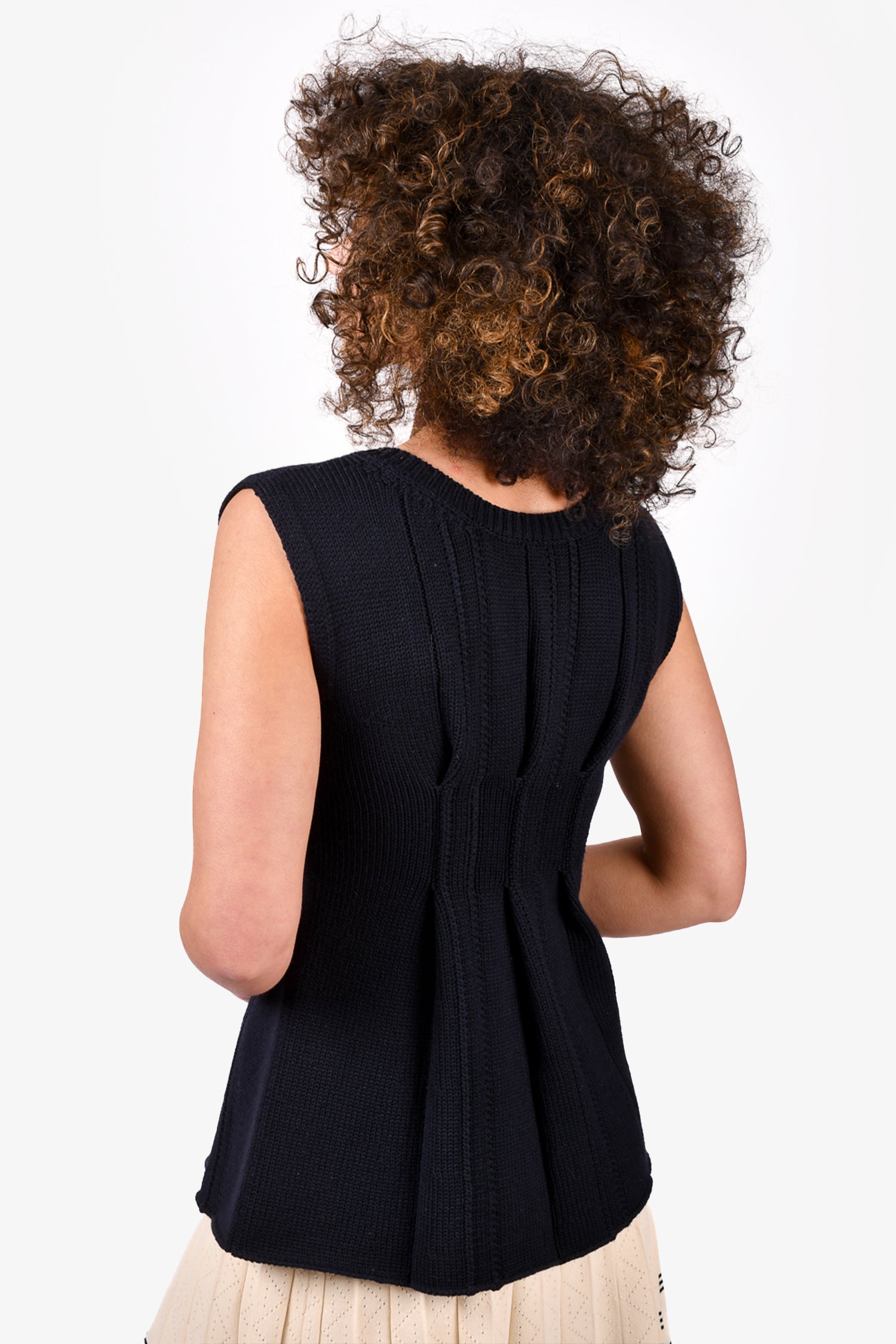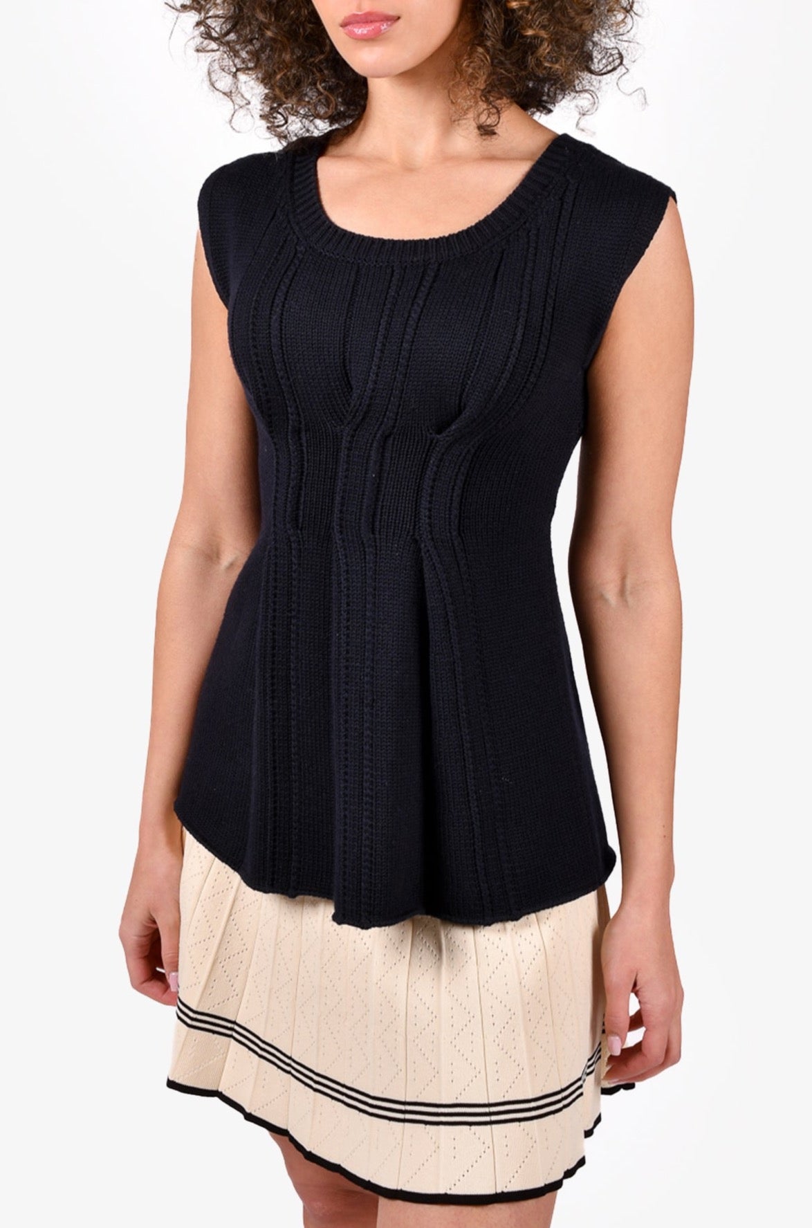 Prada Navy Wool Knit Sleeveless Top Size 38
