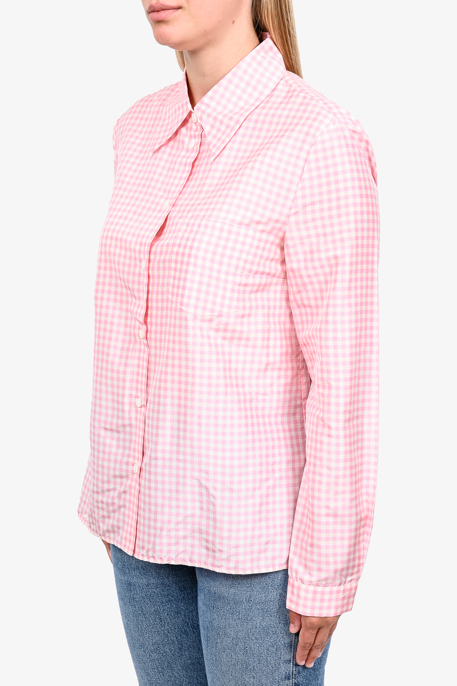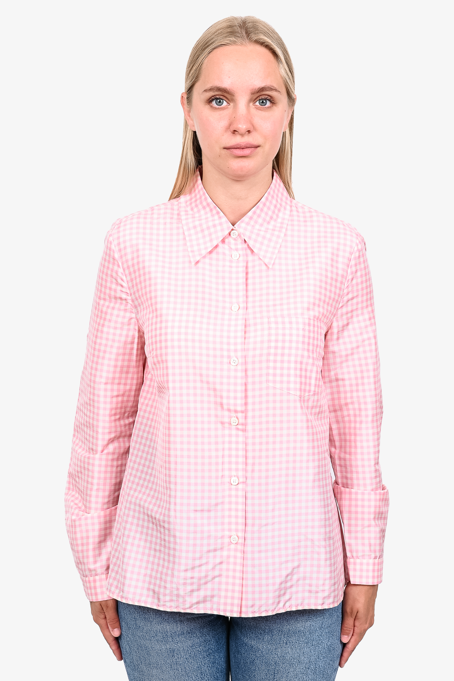 Refresh availabilityPrada Pink Checkered Button Down Shirt. Button closure on the cuffs. Tonal stitching.