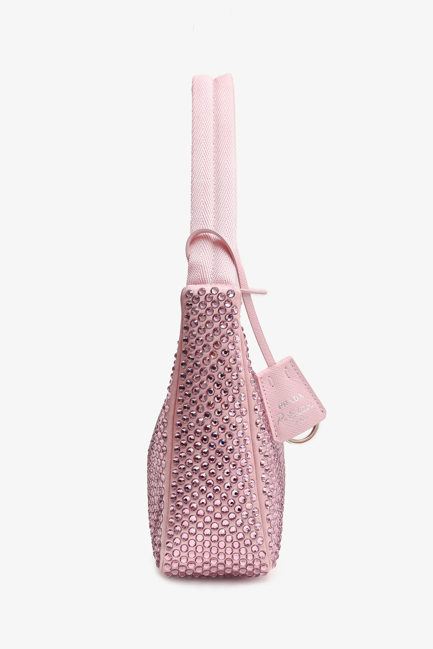 Prada Pink Satin Crystal Embellished Re-Edition 2000 Shoulder Bag