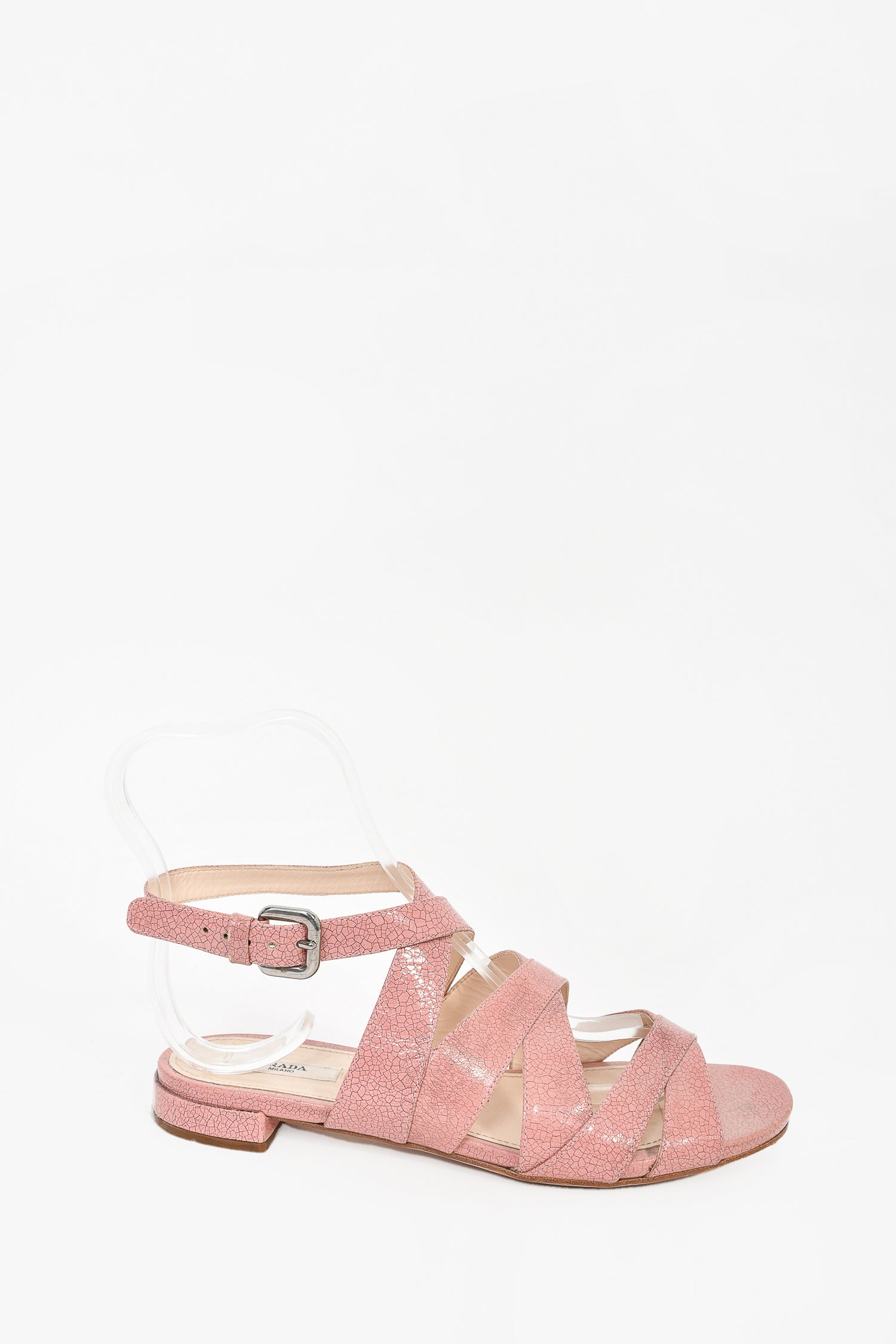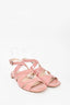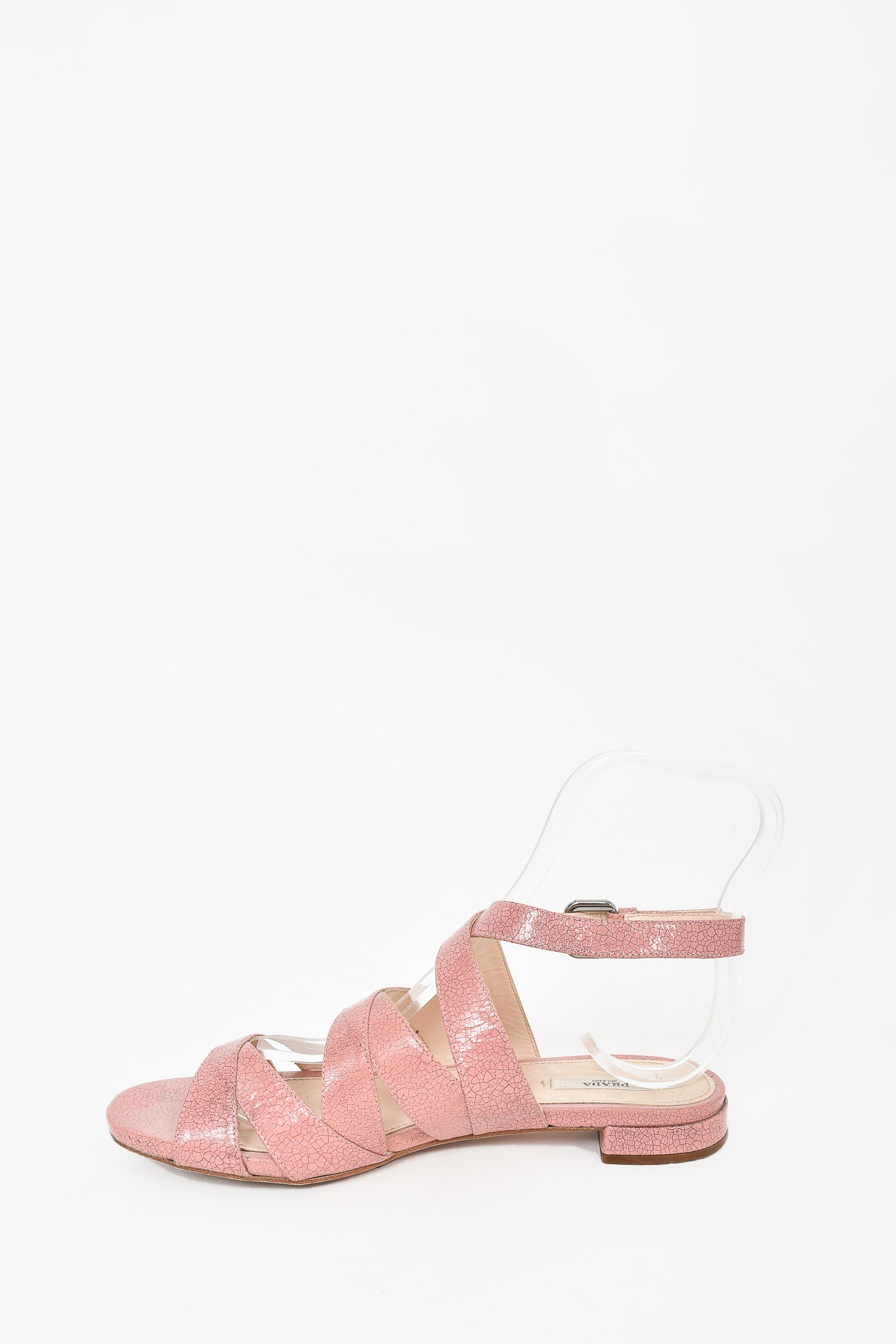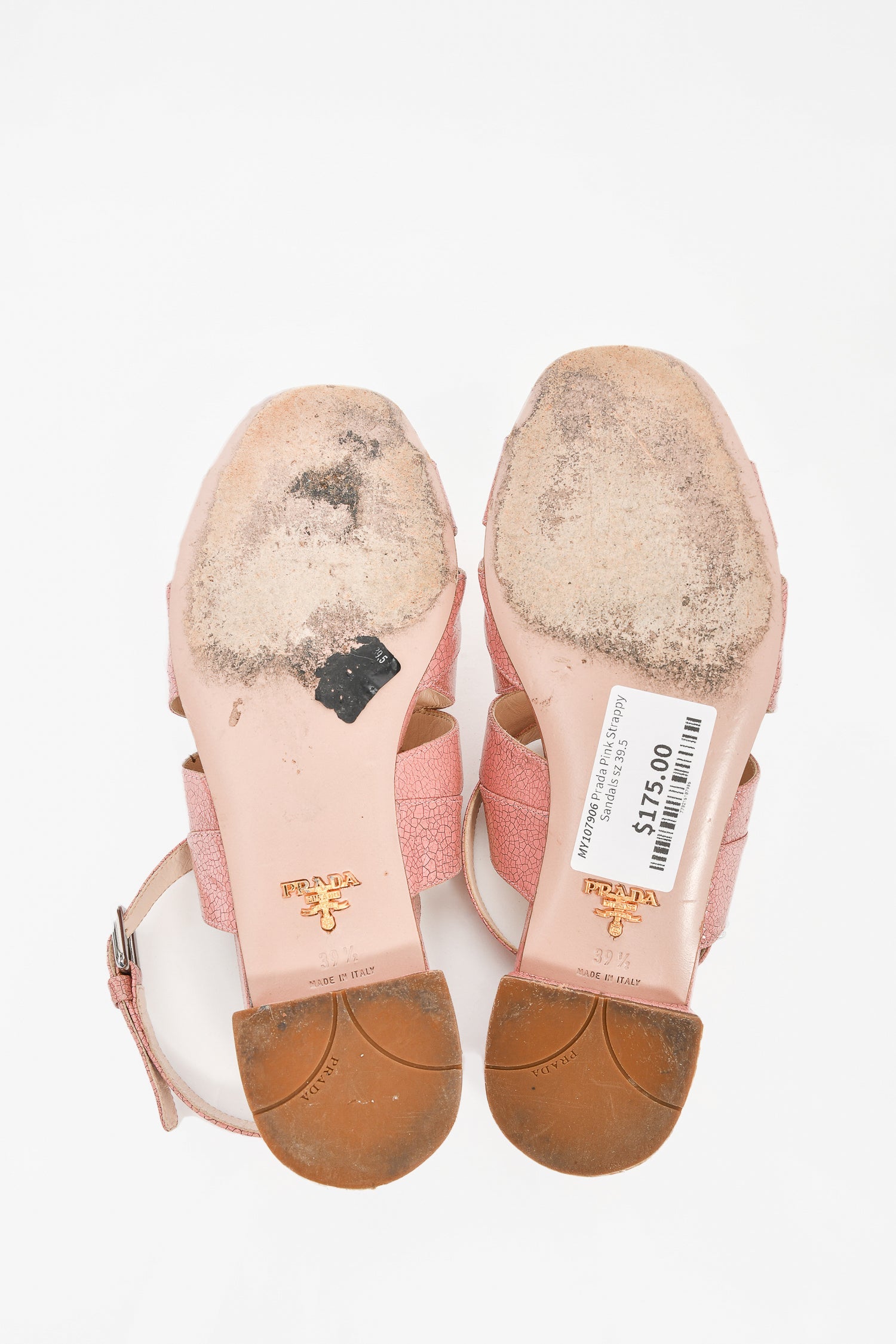 Refresh availabilityPrada Pink Strappy Sandals. Ankle strap with buckle closure. Silver tone hardware. Tonal stitching.