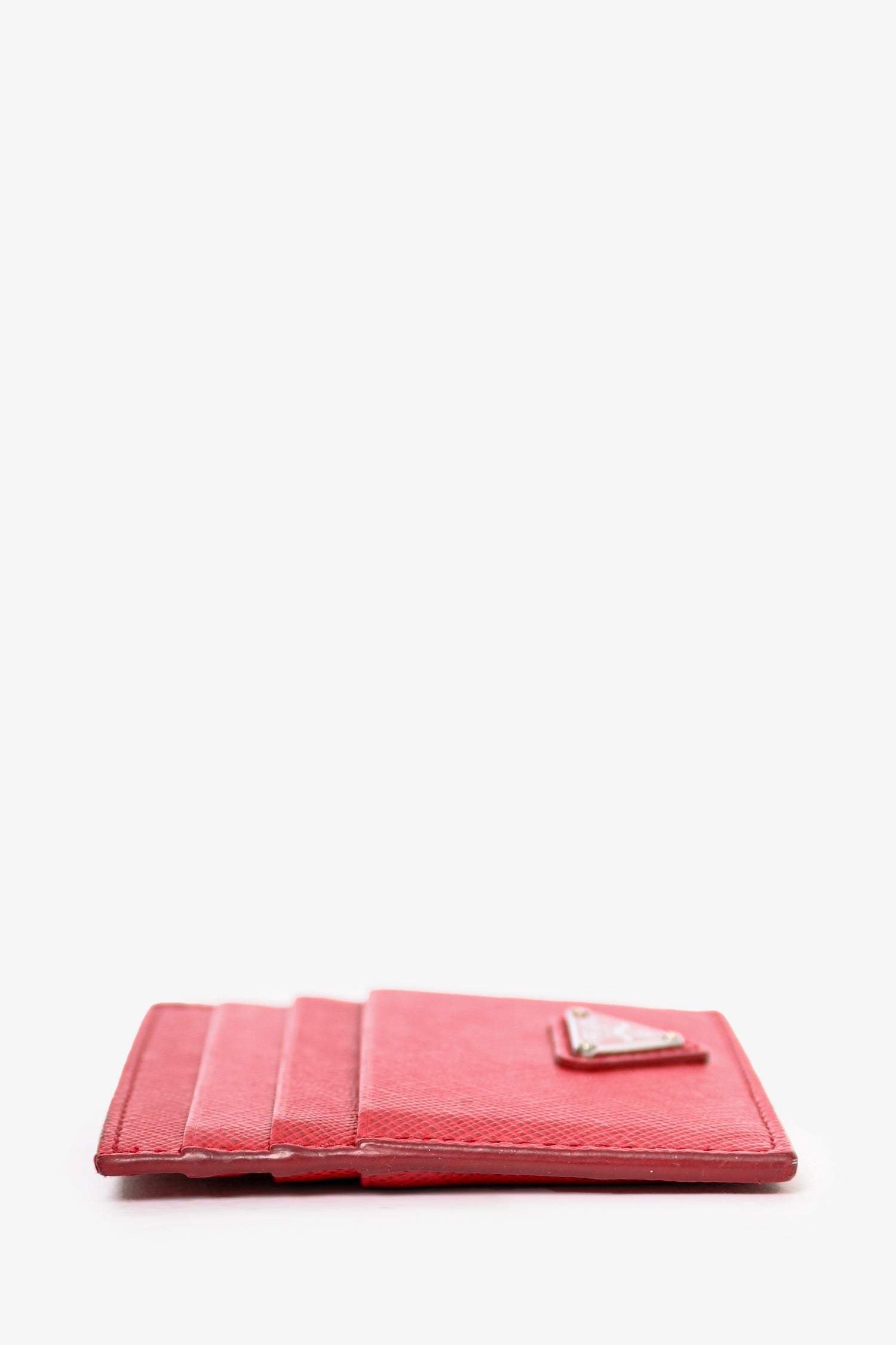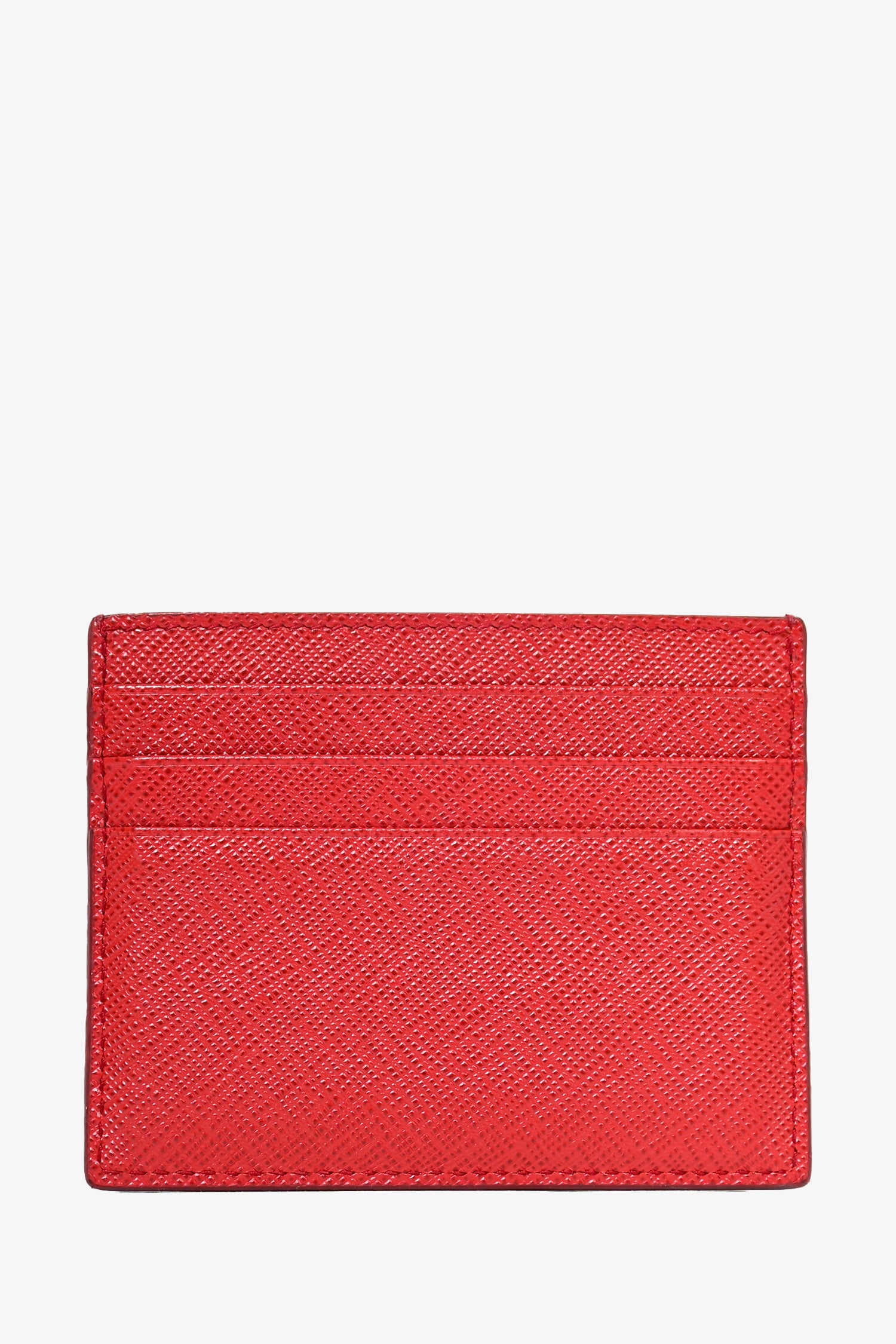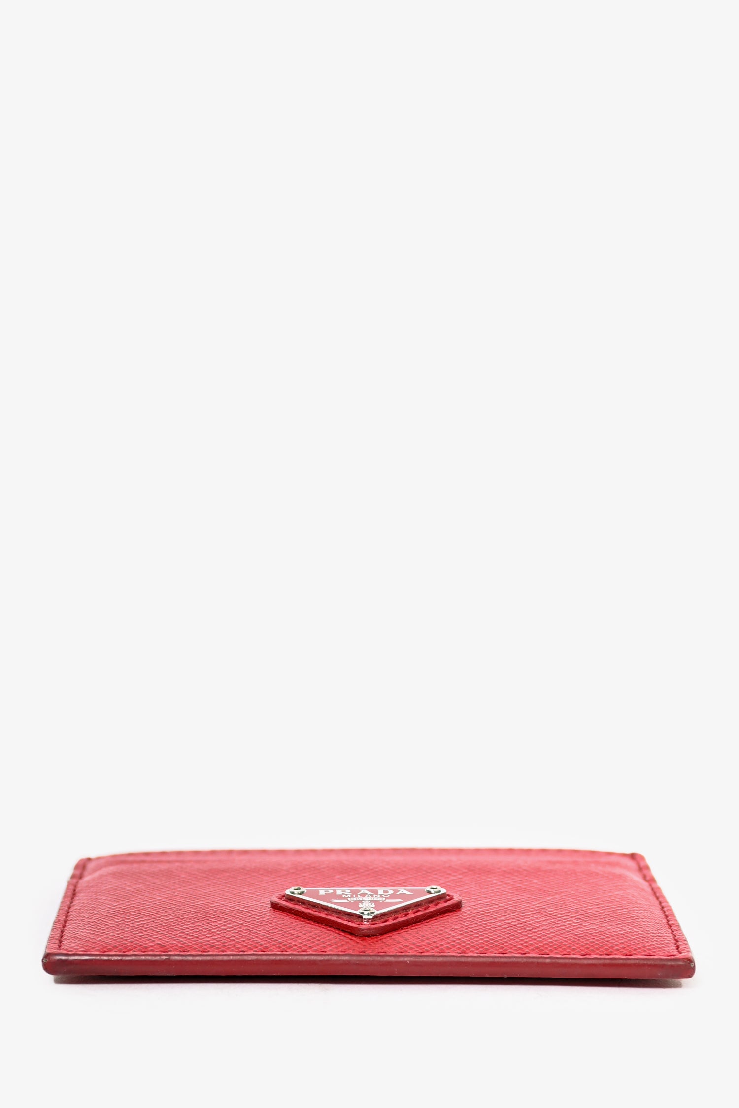 Prada Red Saffiano Leather Card Holder with Logo Plaque