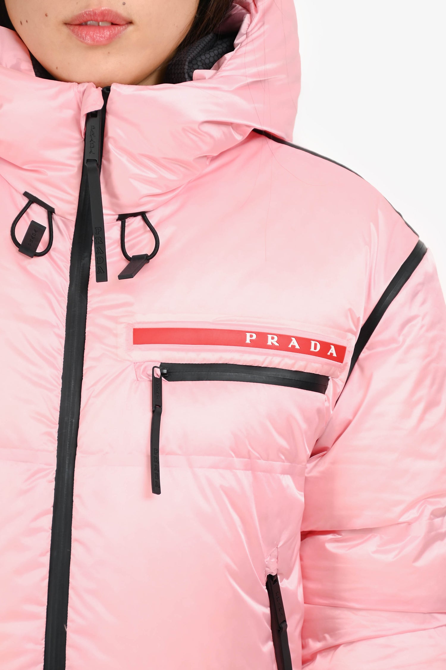 Prada Sport 2021 Pink Re-Nylon Cropped Puffer Jacket Size XS