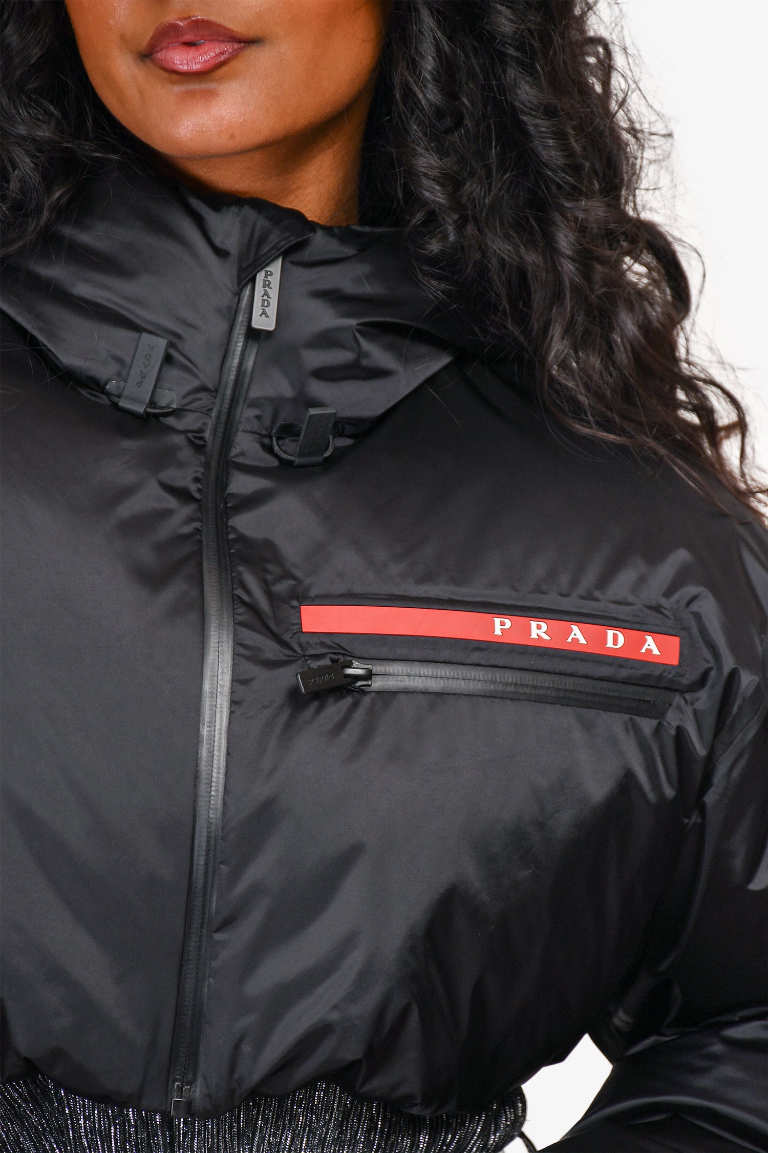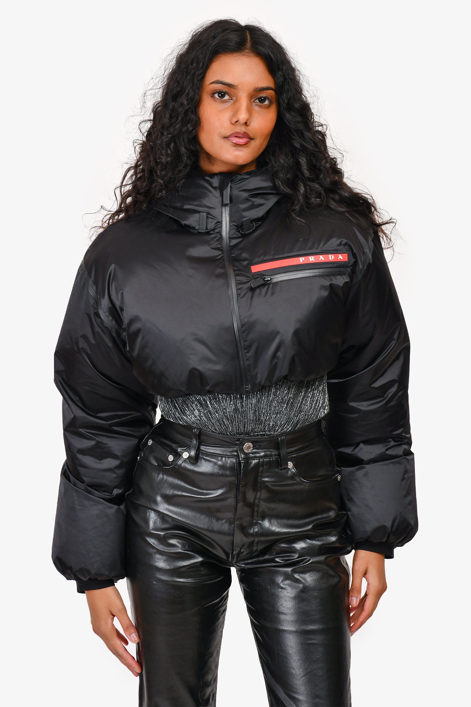 Refresh availabilityPrada Sport Black Down Cropped Jacket. Front zip-up closure. 1 front zip pocket. Lined.