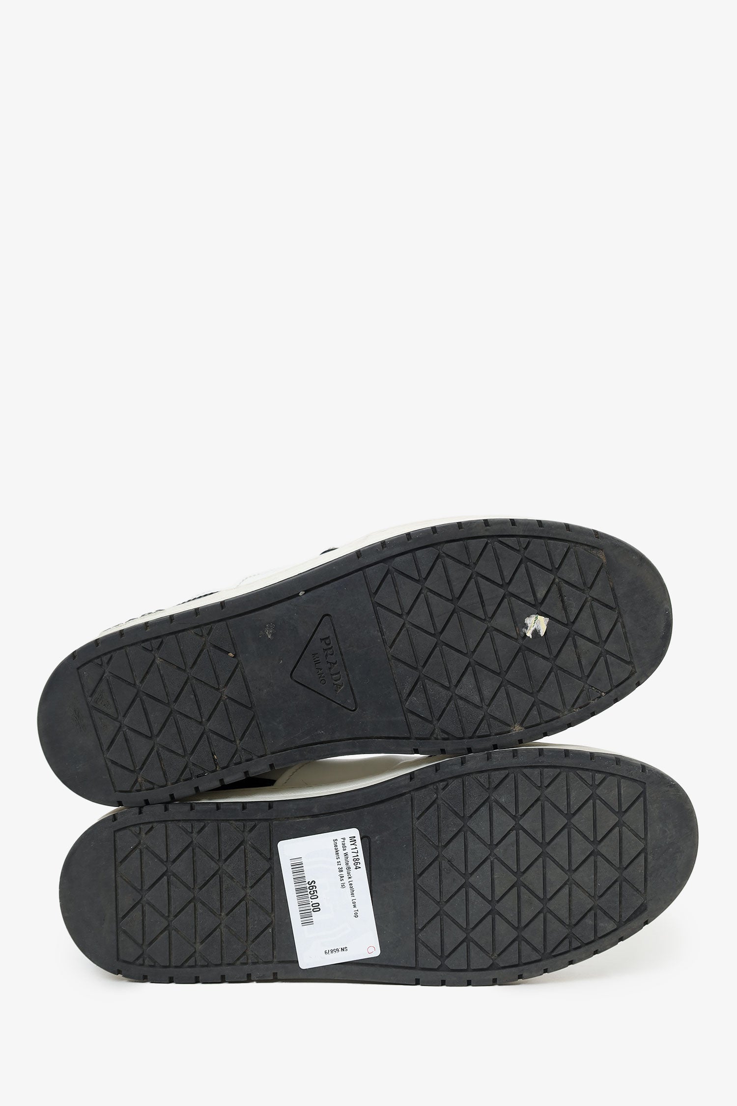 Prada White/Black Leather Low Top Sneakers Size 38