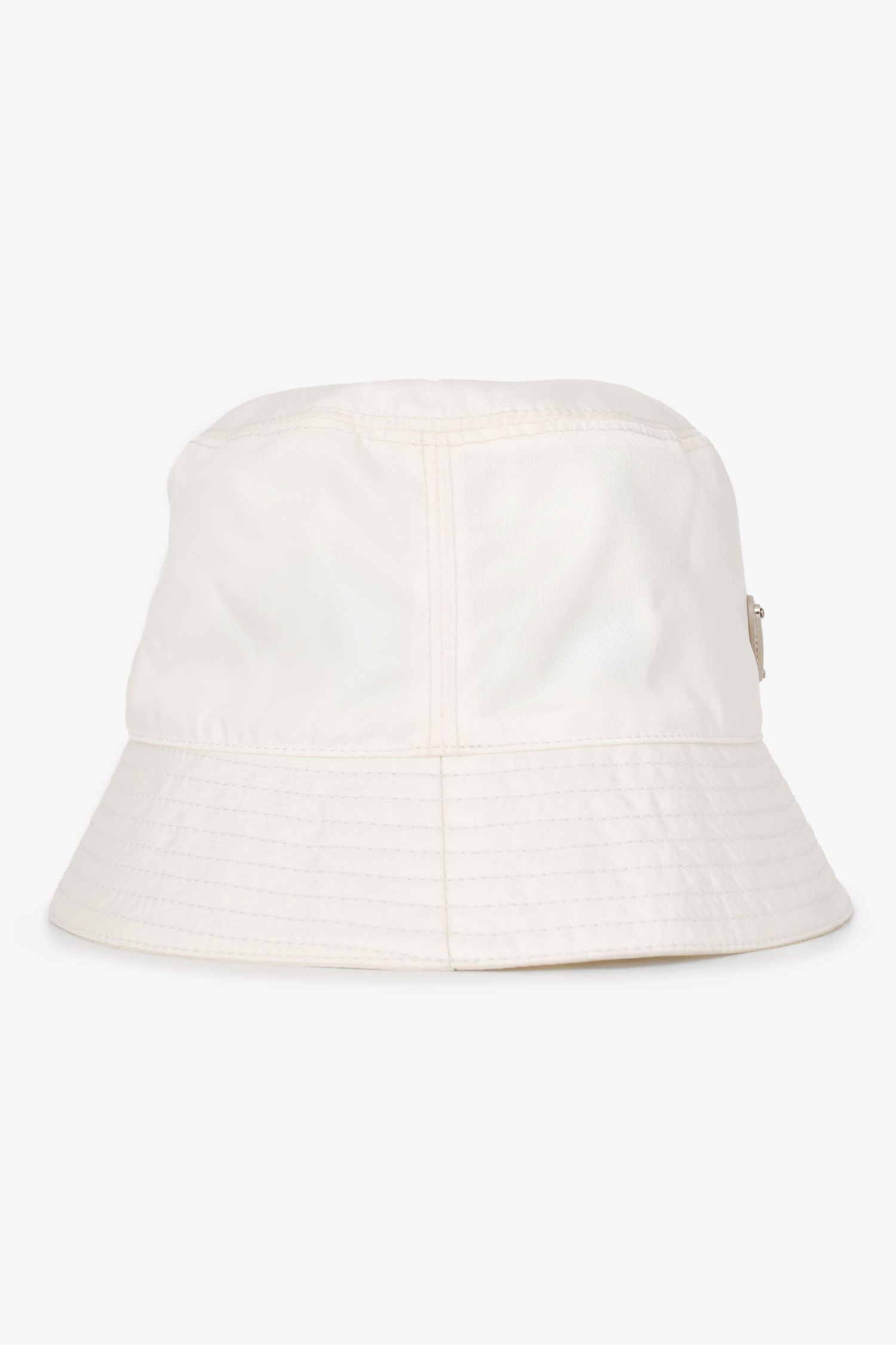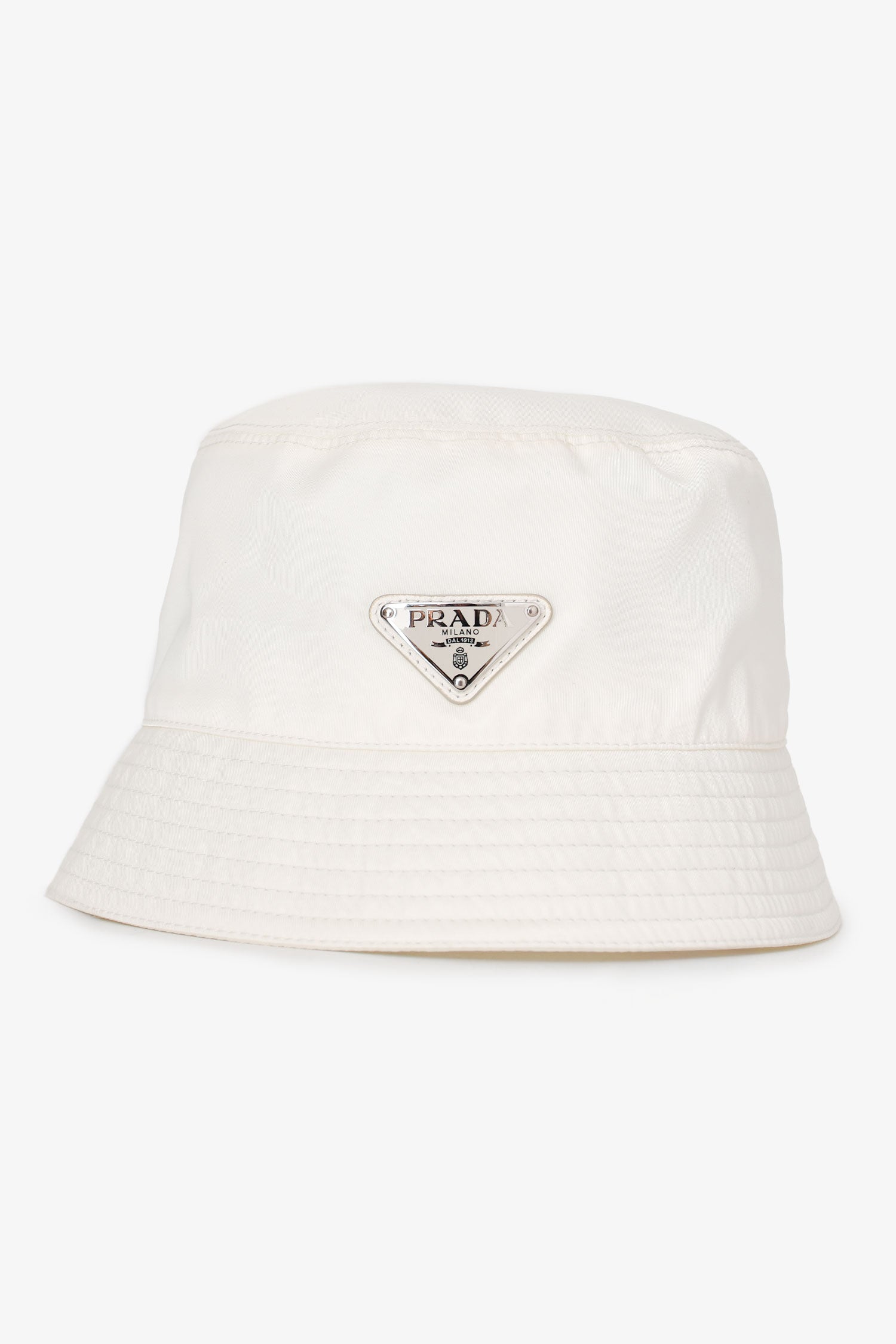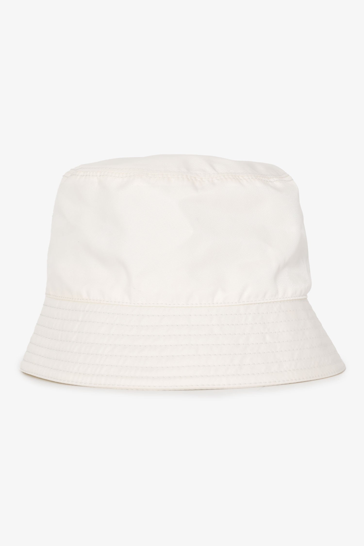 Refresh availabilityPrada White Nylon Bucket Hat. Prada triangle logo plaque at the front.